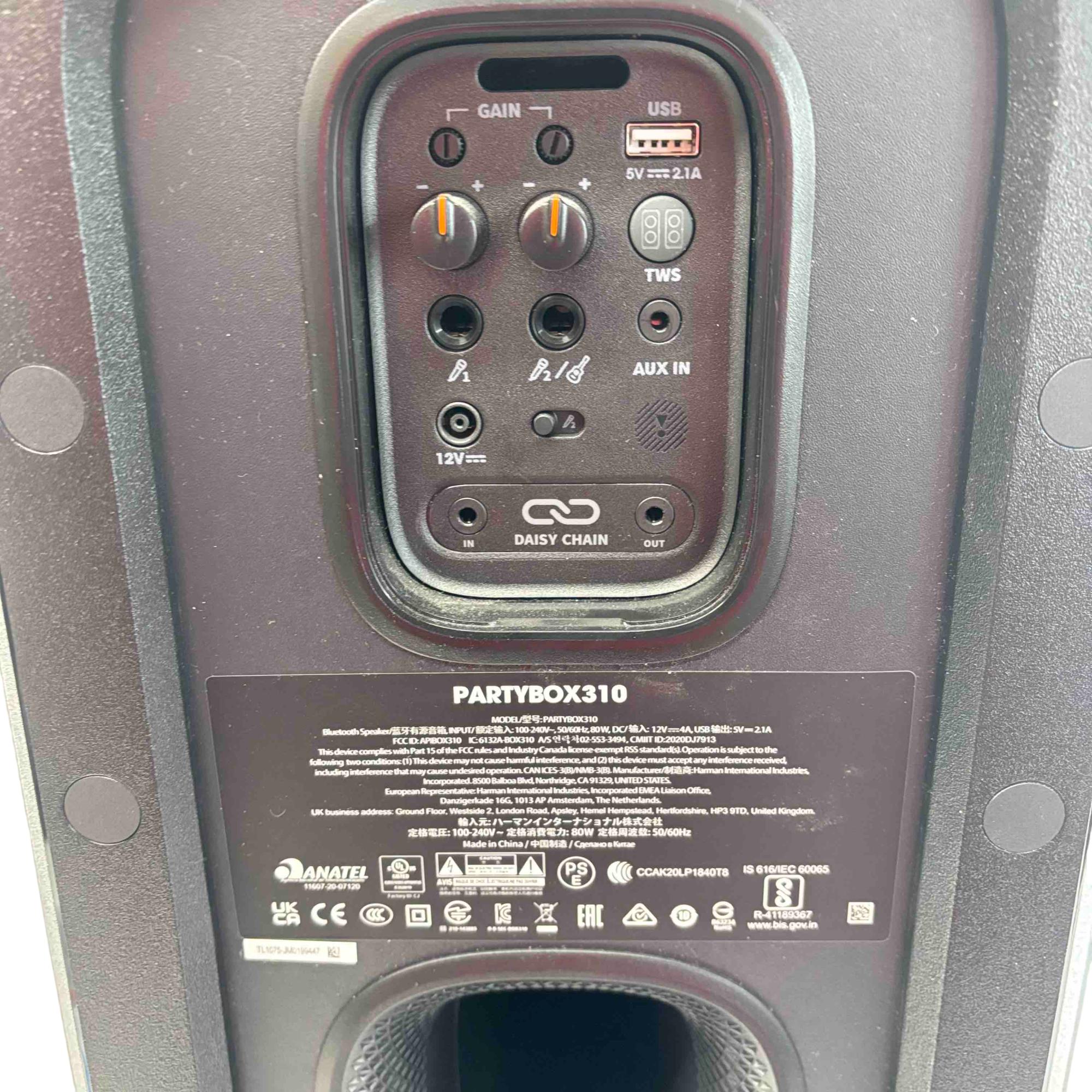 Elevate your party experience with the JBL PartyBox 310, a portable Bluetooth speaker that combines powerful sound with an integrated dynamic light show. Perfect for any occasion, its built-in wheels and handles make transporting your party vibe a breeze, while its robust design ensures the music never stops, indoors or out. Let the JBL PartyBox 310 be the life of your next gathering.