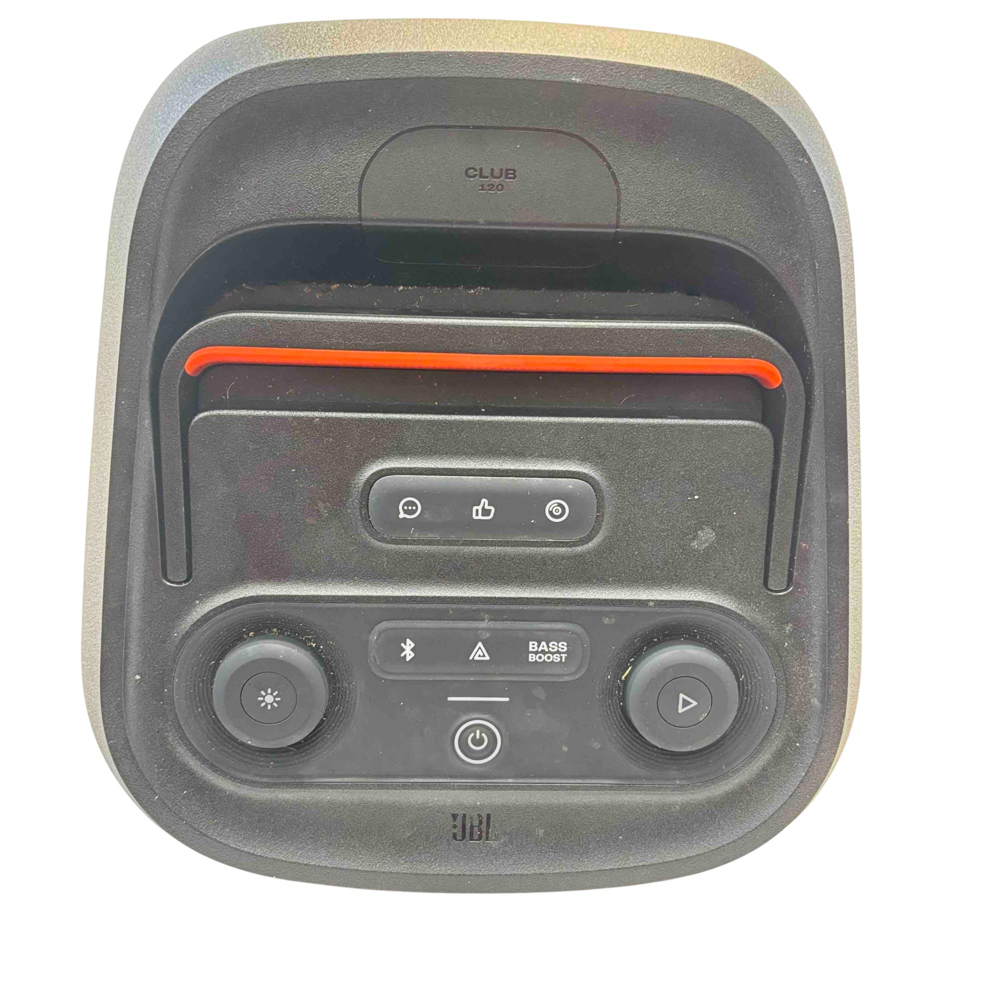 The JBL PartyBox Club 120 Bluetooth Wireless Speaker delivers powerful, high-quality sound with deep bass and clear highs, perfect for both indoor and outdoor use. Featuring a sleek black design with distinctive red logos and intuitive controls, this speaker supports seamless Bluetooth connectivity for wireless audio streaming. Its robust build and ergonomic handle ensure portability and durability for any party or event.