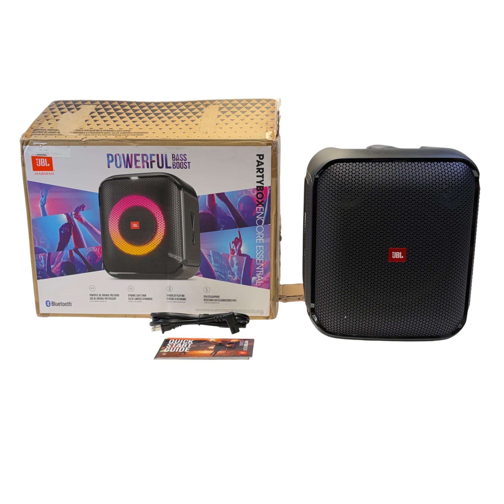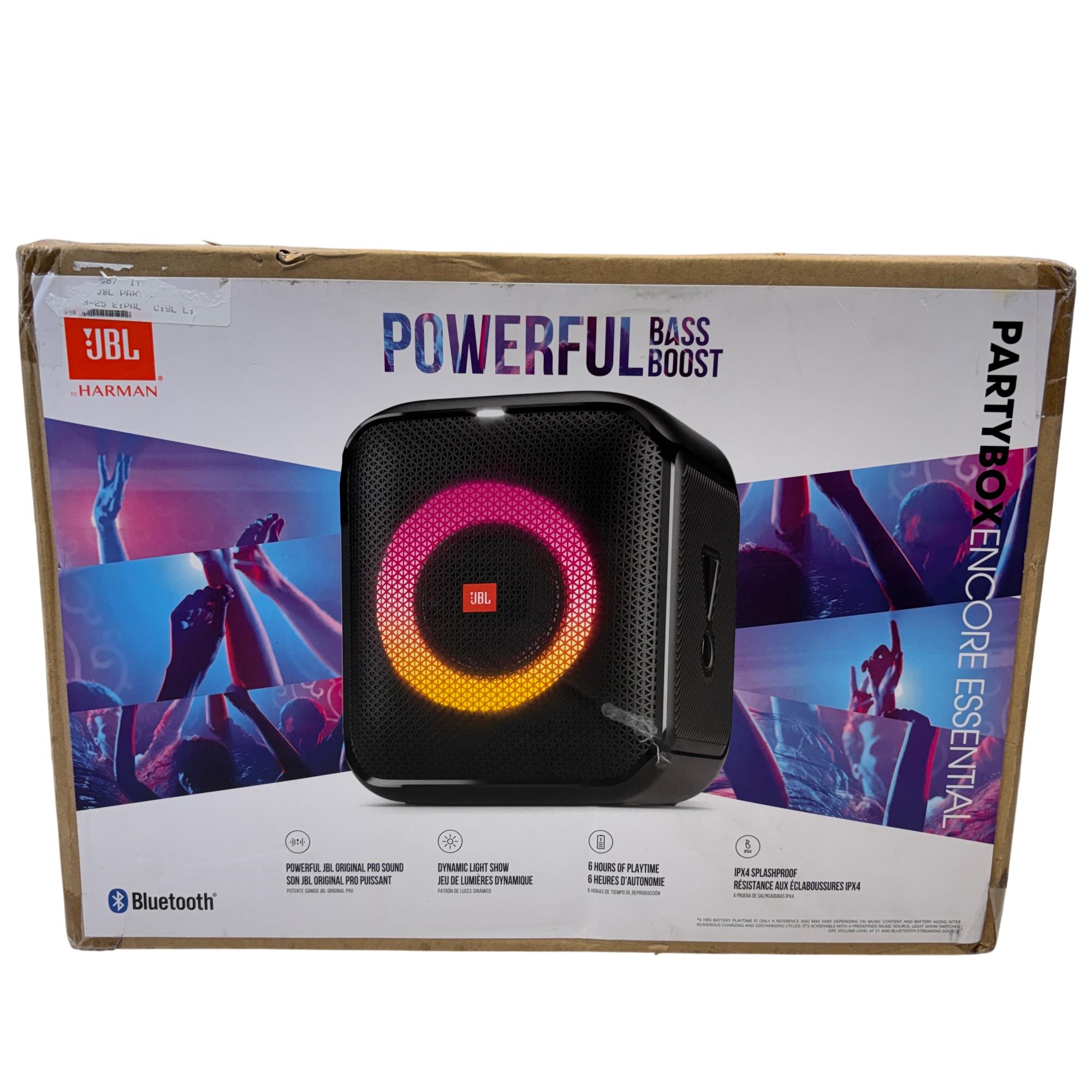 The JBL PartyBox Encore Essential Portable Bluetooth Party Speaker delivers powerful original JBL Pro Sound with deep bass and dynamic light effects to enhance any event. Designed for portability and splash resistance, this speaker offers a robust, immersive audio experience ideal for parties and outdoor gatherings.