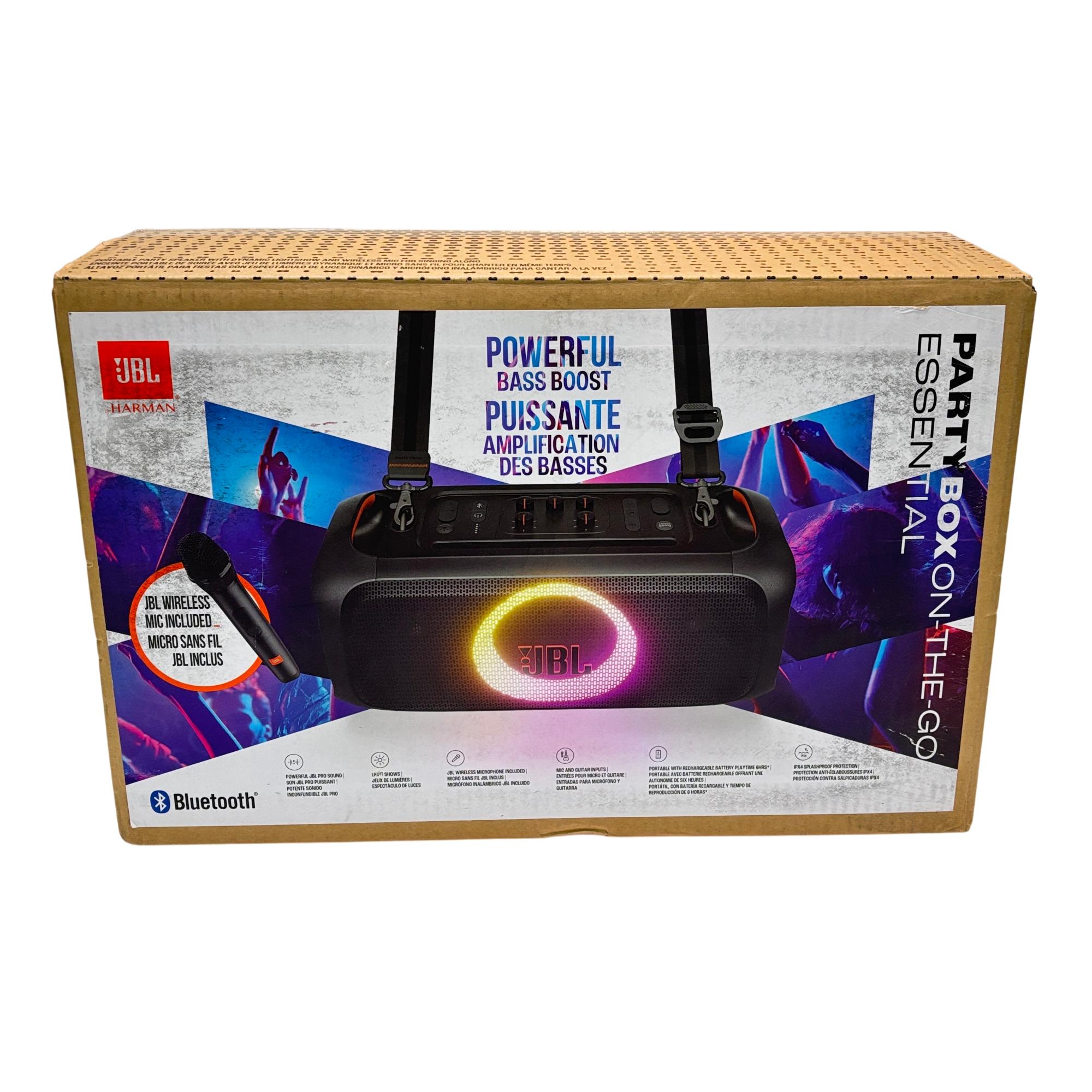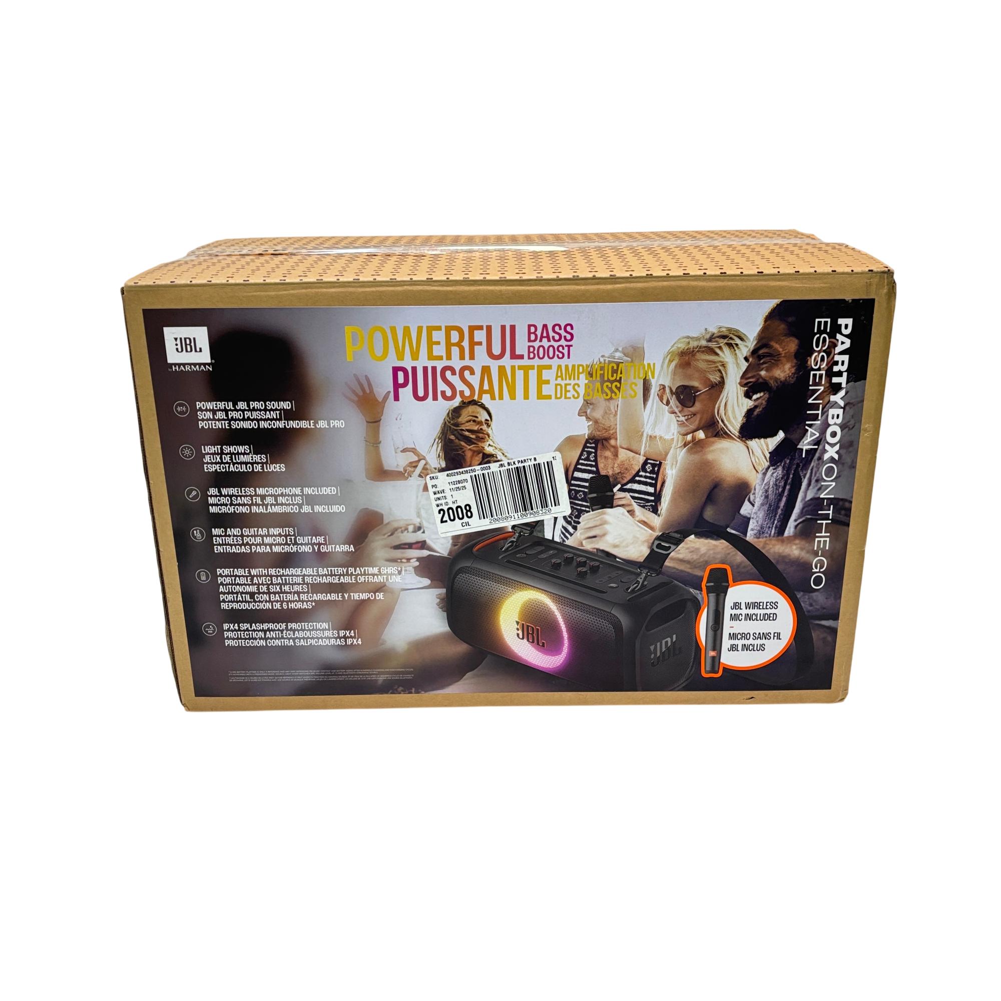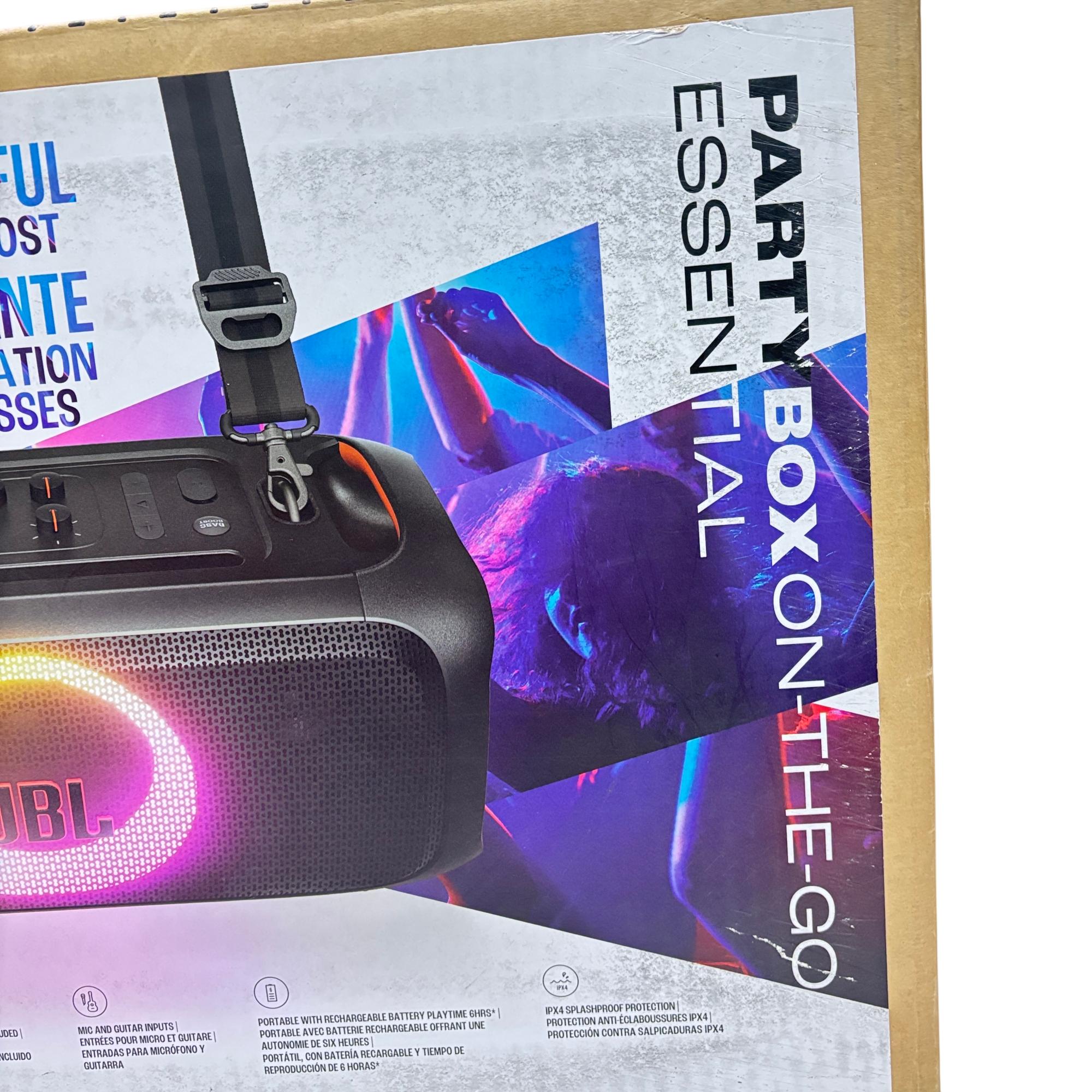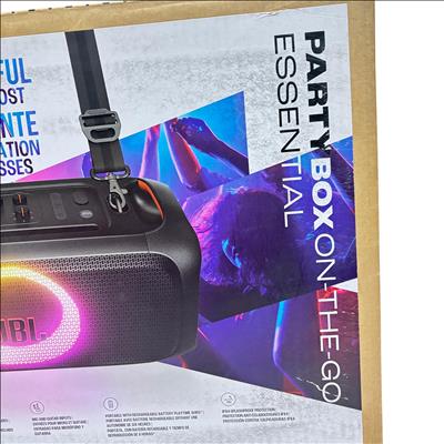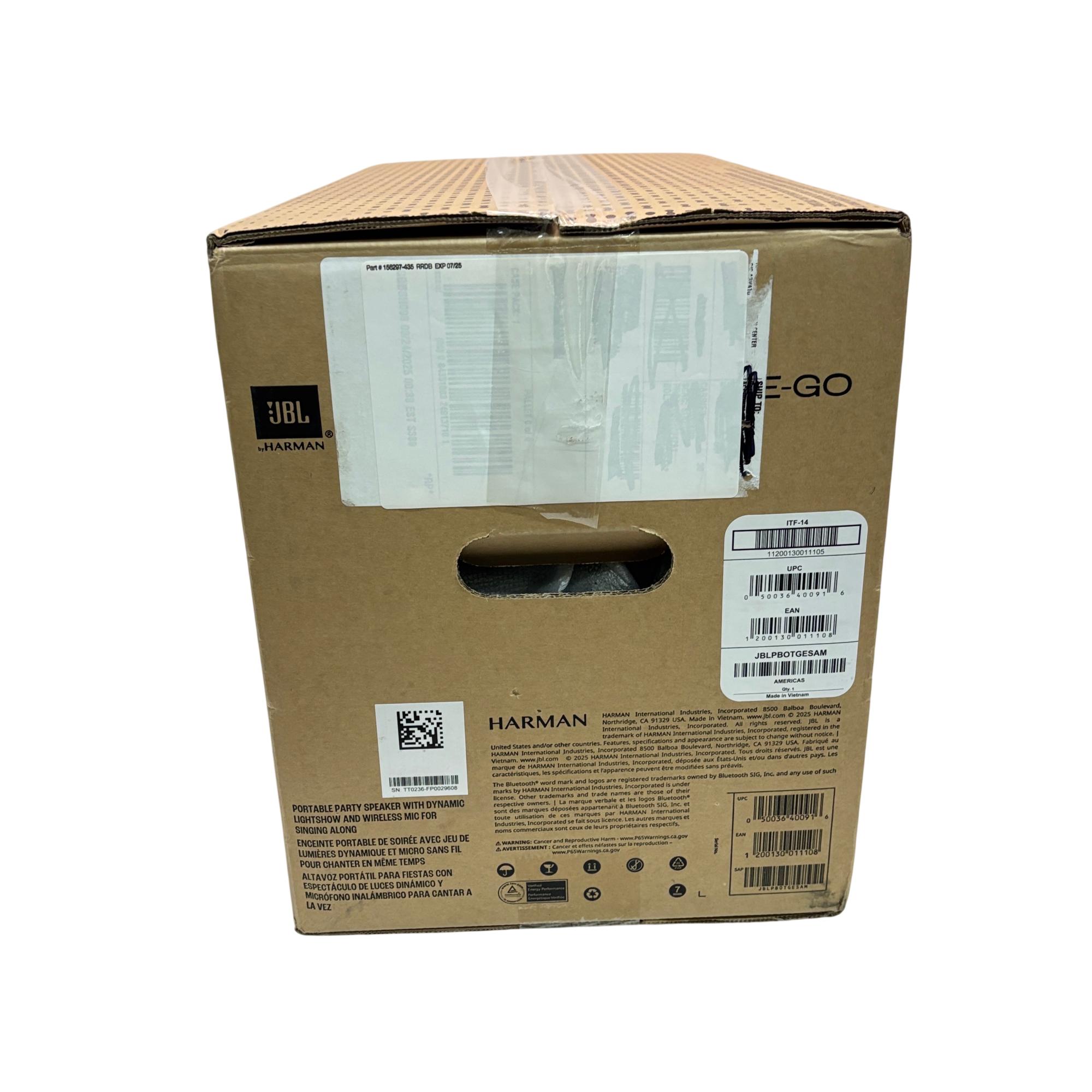 Bring big sound anywhere with the JBL PartyBox On-The-Go, delivering 100 watts of crisp highs, clear mids, and deep bass with Bass Boost for powerful performance indoors or outdoors. A built-in light show syncs to your music with vibrant, customizable patterns, while IPX4 splashproof protection keeps the party going rain or shine.