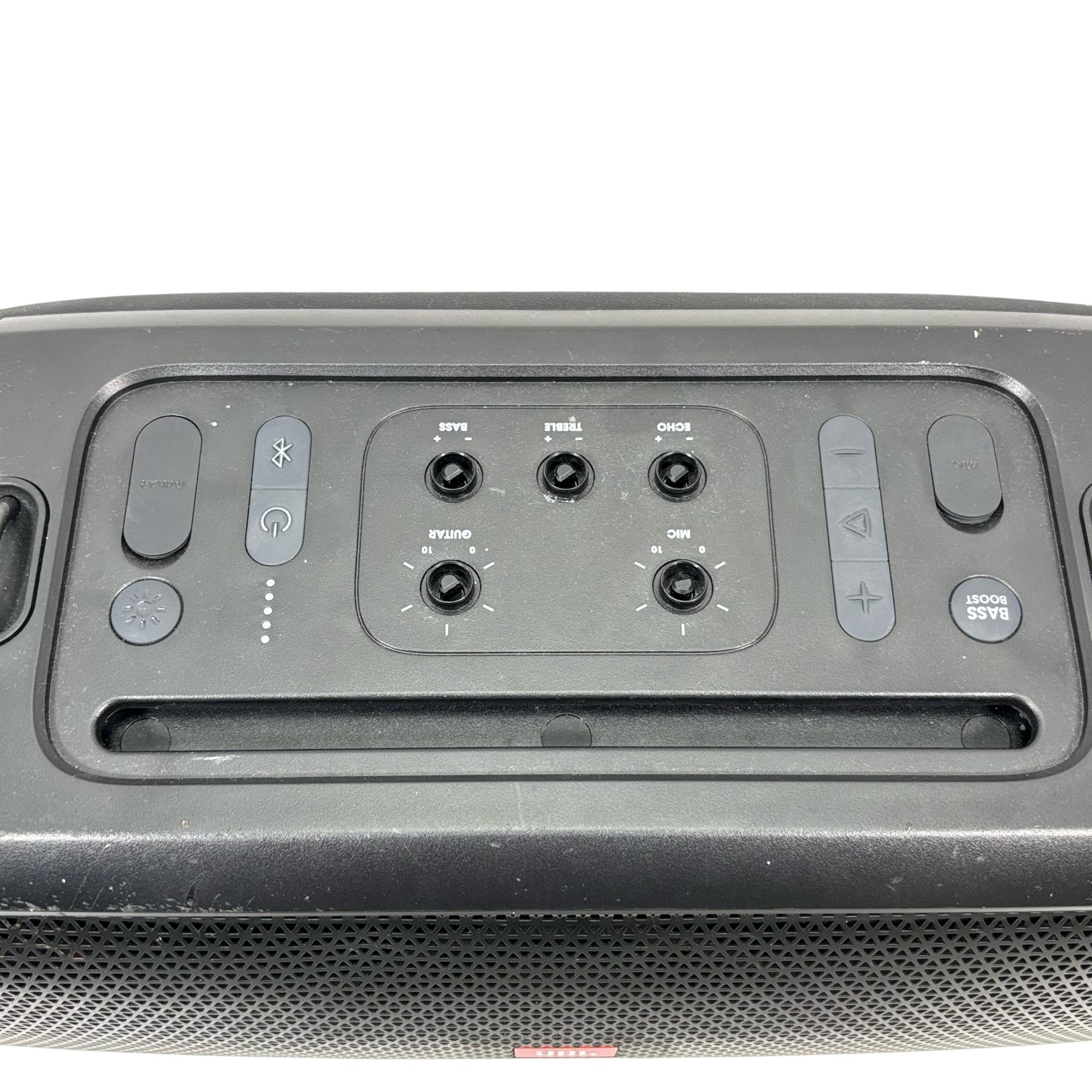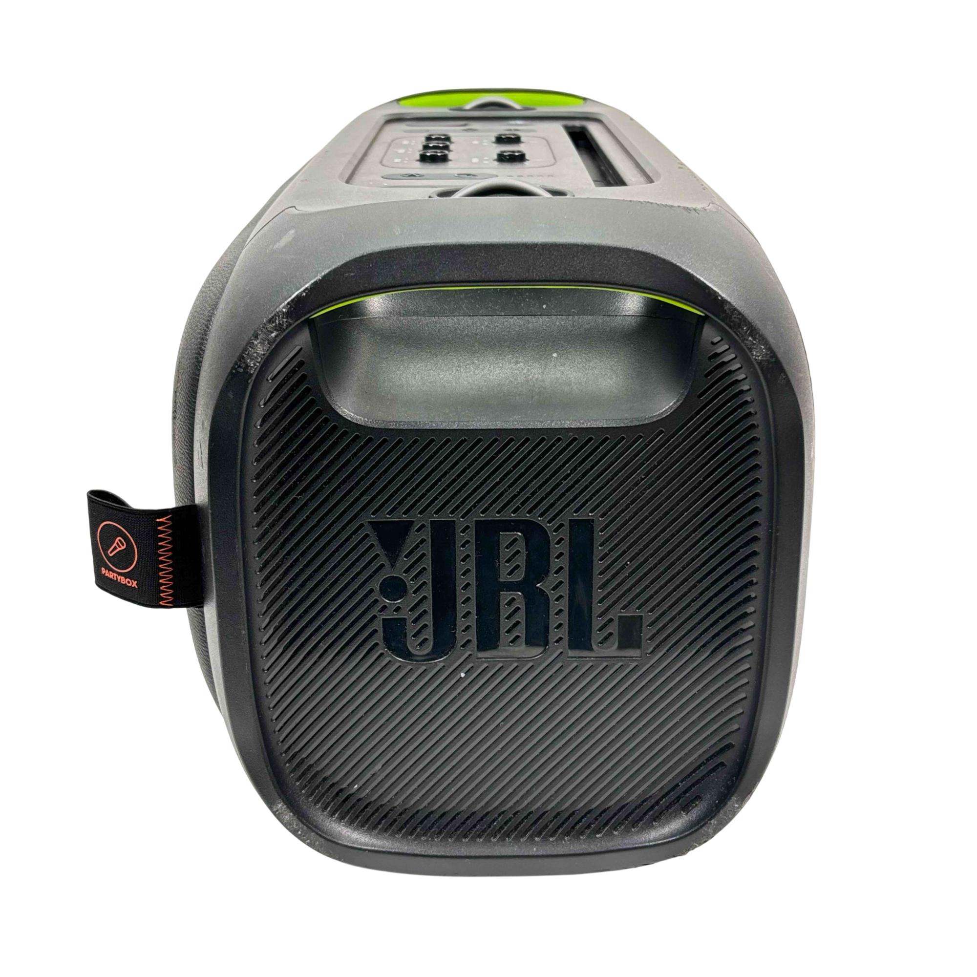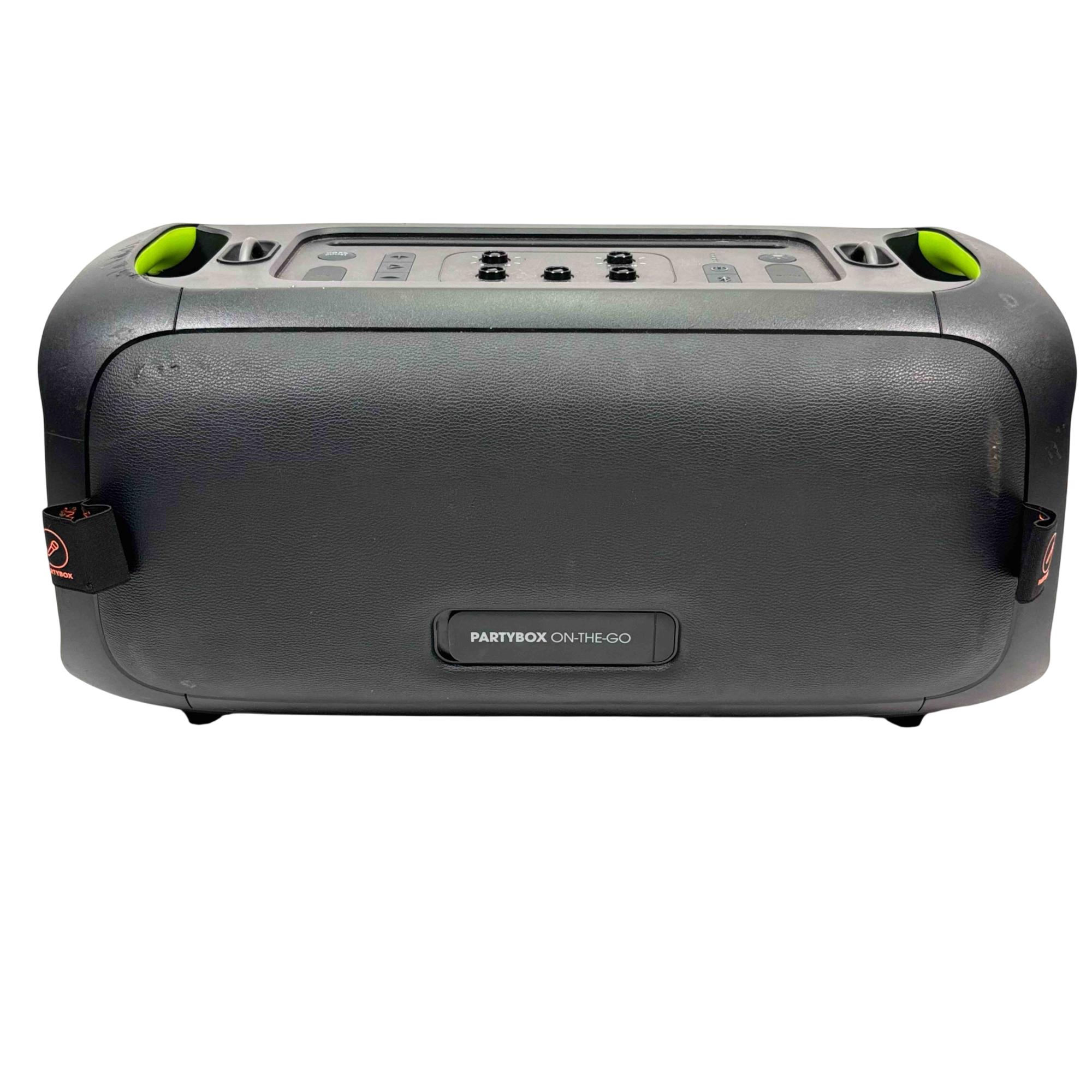 JBL PartyBox On-The-Go Portable Bluetooth Speaker delivers powerful, immersive sound with enhanced bass performance, designed to energize any gathering. This compact and lightweight speaker features versatile control buttons and a built-in microphone input, making it ideal for mobile parties and karaoke sessions. Its sleek black design accented with vibrant colors ensures a stylish and practical audio solution for on-the-move entertainment.