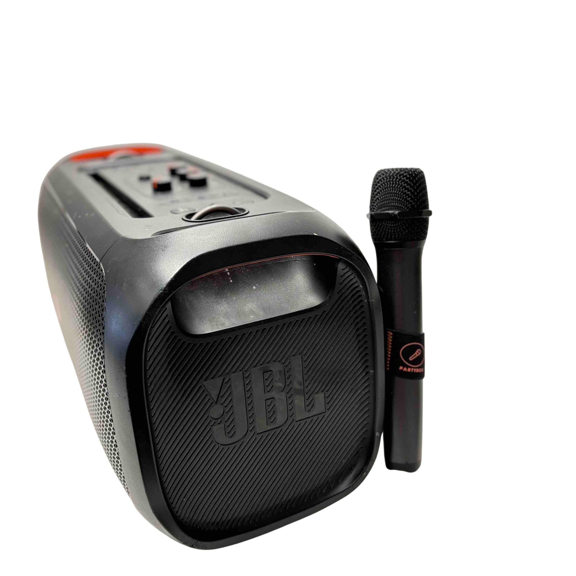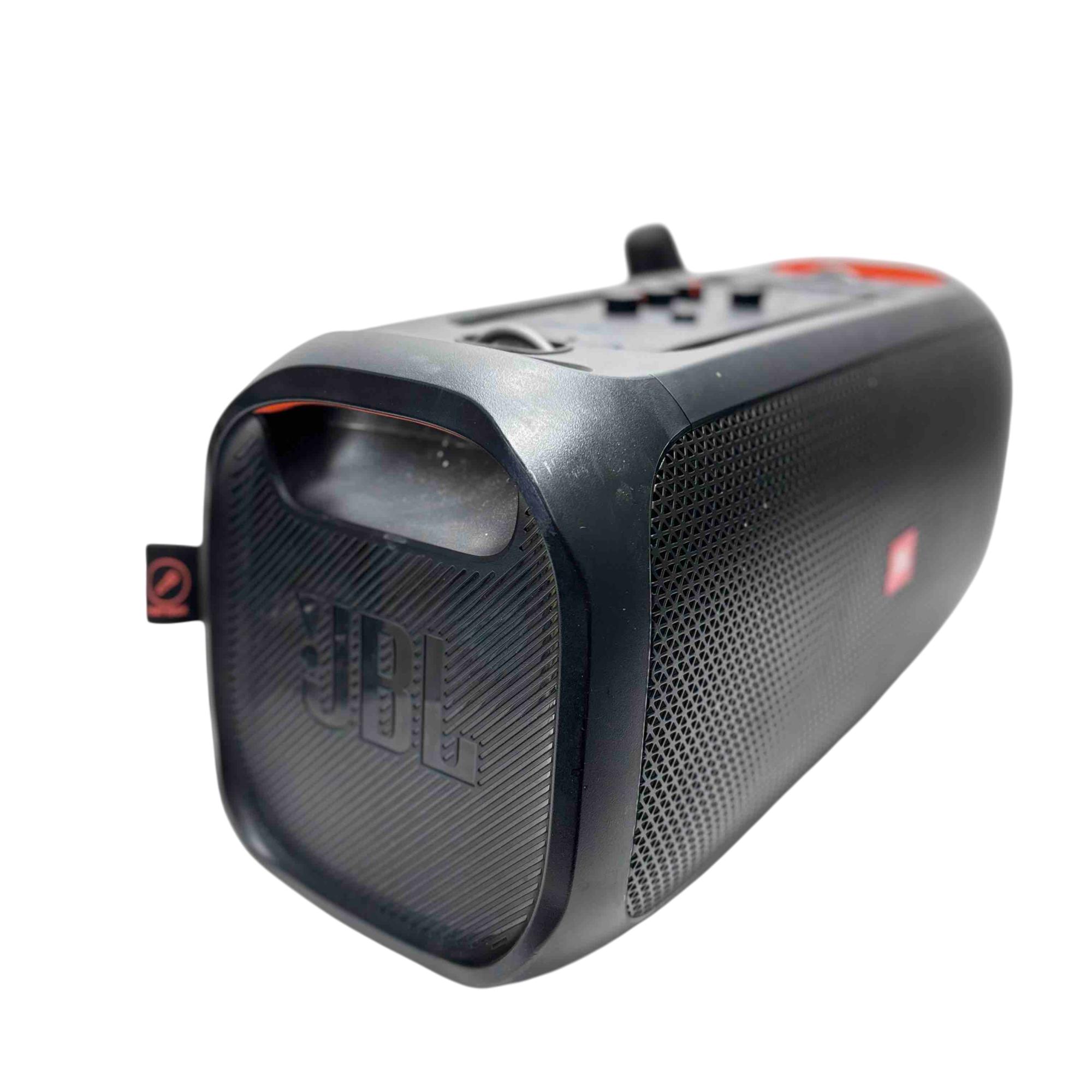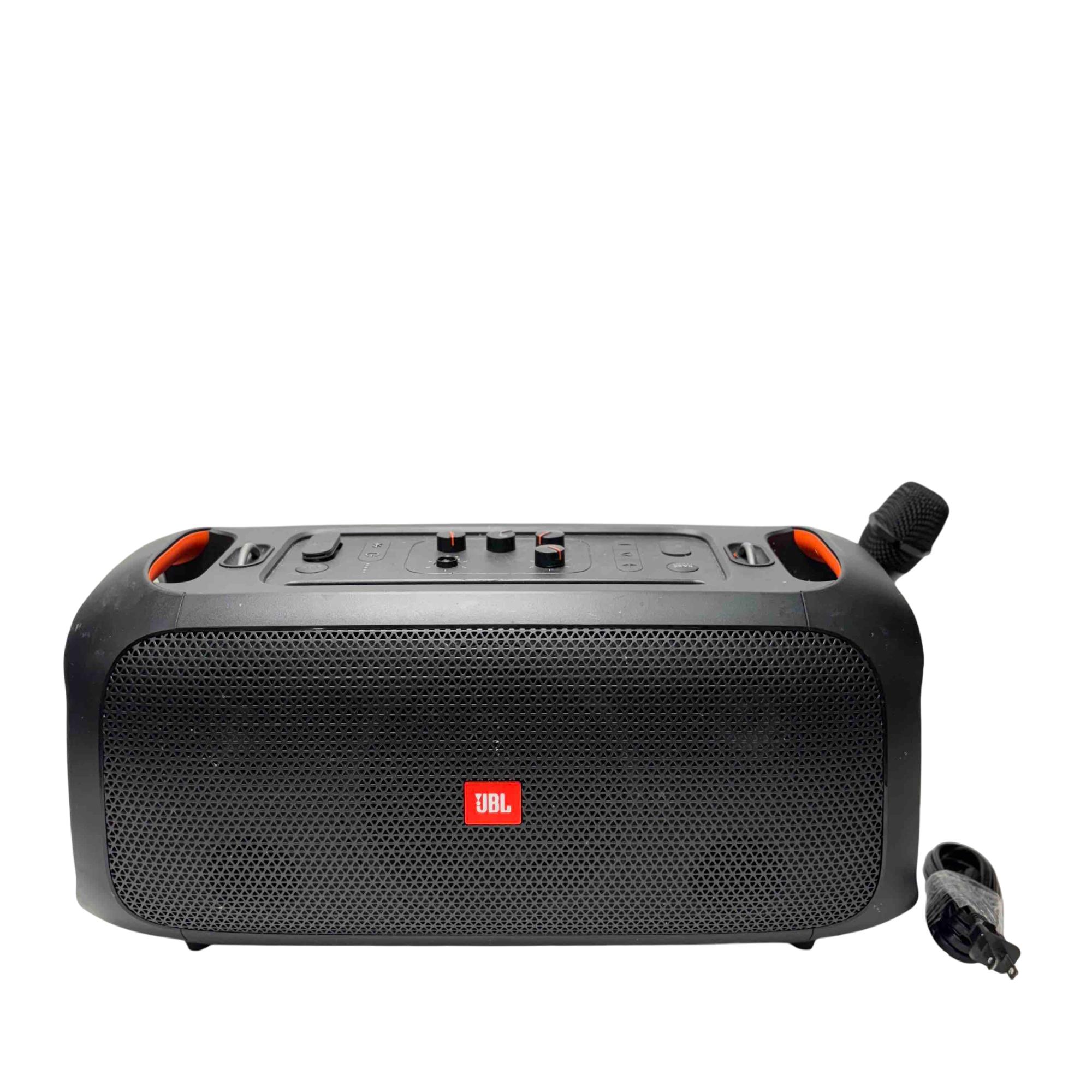 Experience the ultimate party atmosphere anywhere with the JBL PartyBox On-The-Go Portable Bluetooth Speaker. Featuring dynamic RGB lighting and a powerful sound system, this speaker ensures everyone feels the beat. Additionally, its integrated mic-input allows you to amplify your voice, making it the perfect companion for karaoke nights and outdoor gatherings.