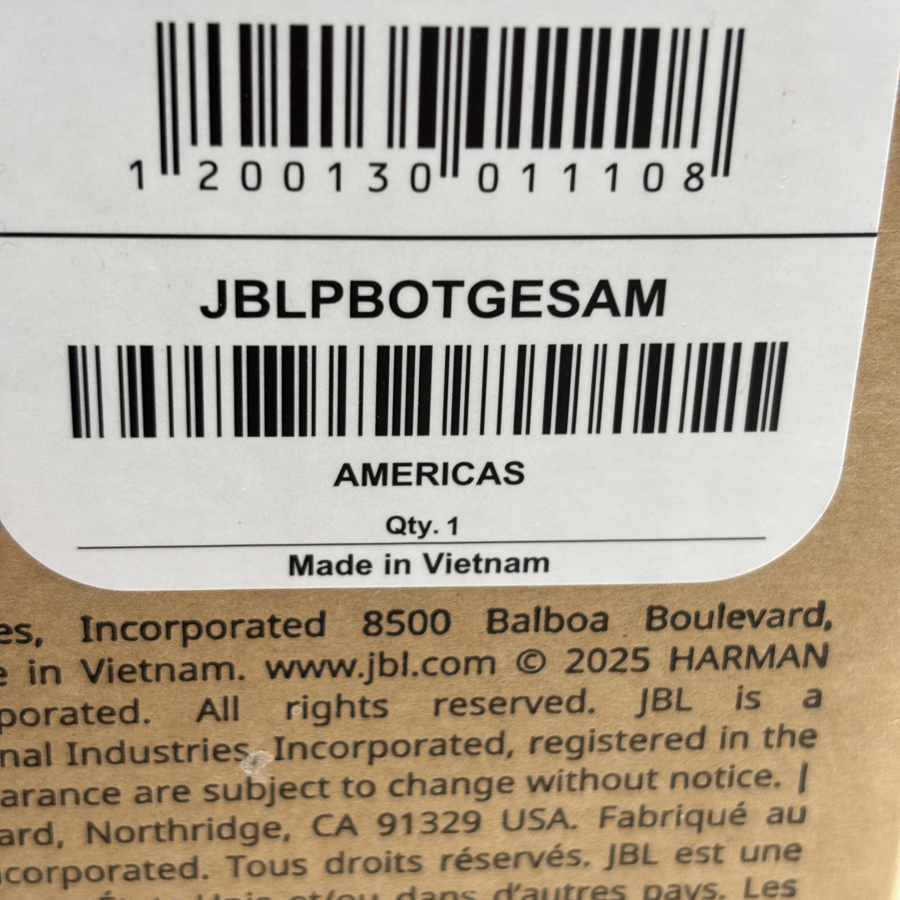 Model: JBLPARTYBOXGOBAM