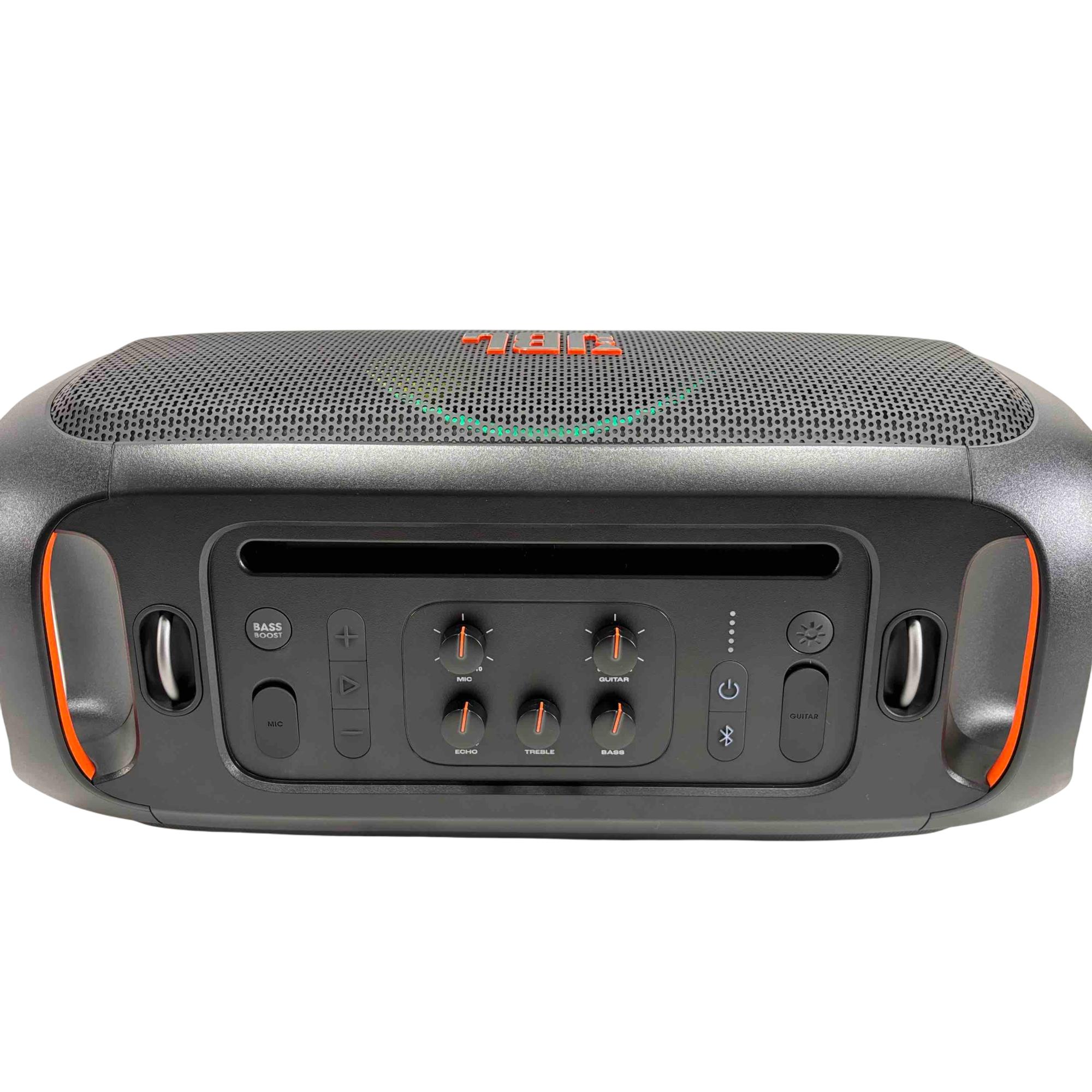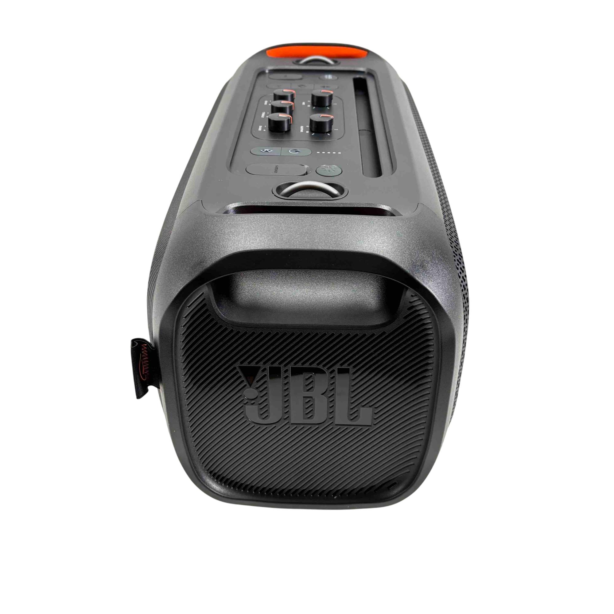 Get the party started with the JBL Partybox On-The-Go Essential! This powerful portable Bluetooth speaker delivers booming sound with its Bass Boost technology, vibrant light effects, and exceptional JBL audio quality. Perfect for any event, it also features microphone and guitar inputs for live performances, making it an all-in-one audio solution for your gatherings.
