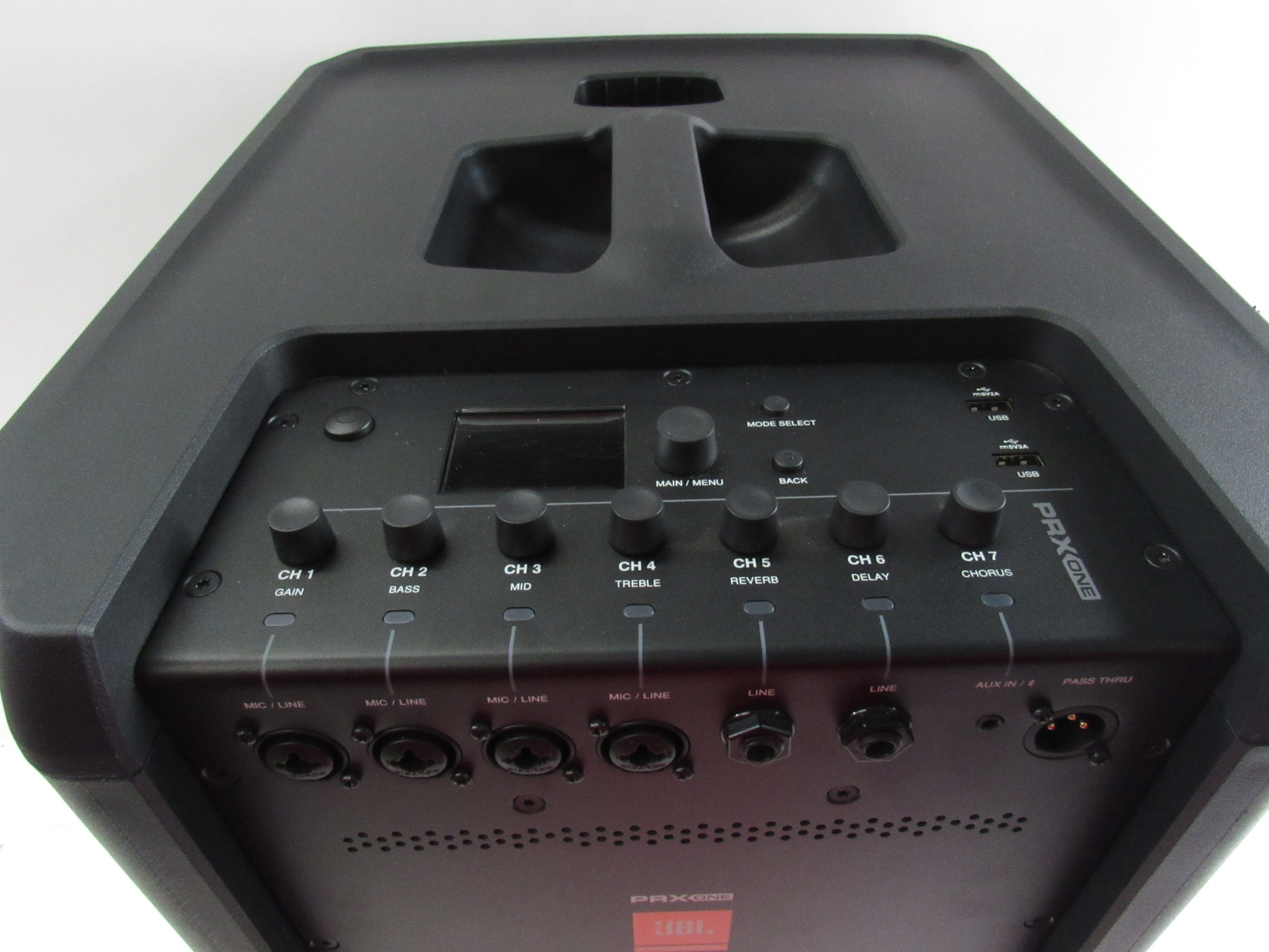 The PRX One offers primal power at any volume with the 2000W Class-D amplifier that powers the 12” subwoofer and twelve 2.5” high-frequency drivers that combine for a total frequency response from 20 to 35Hz and an SPL output of 130dB