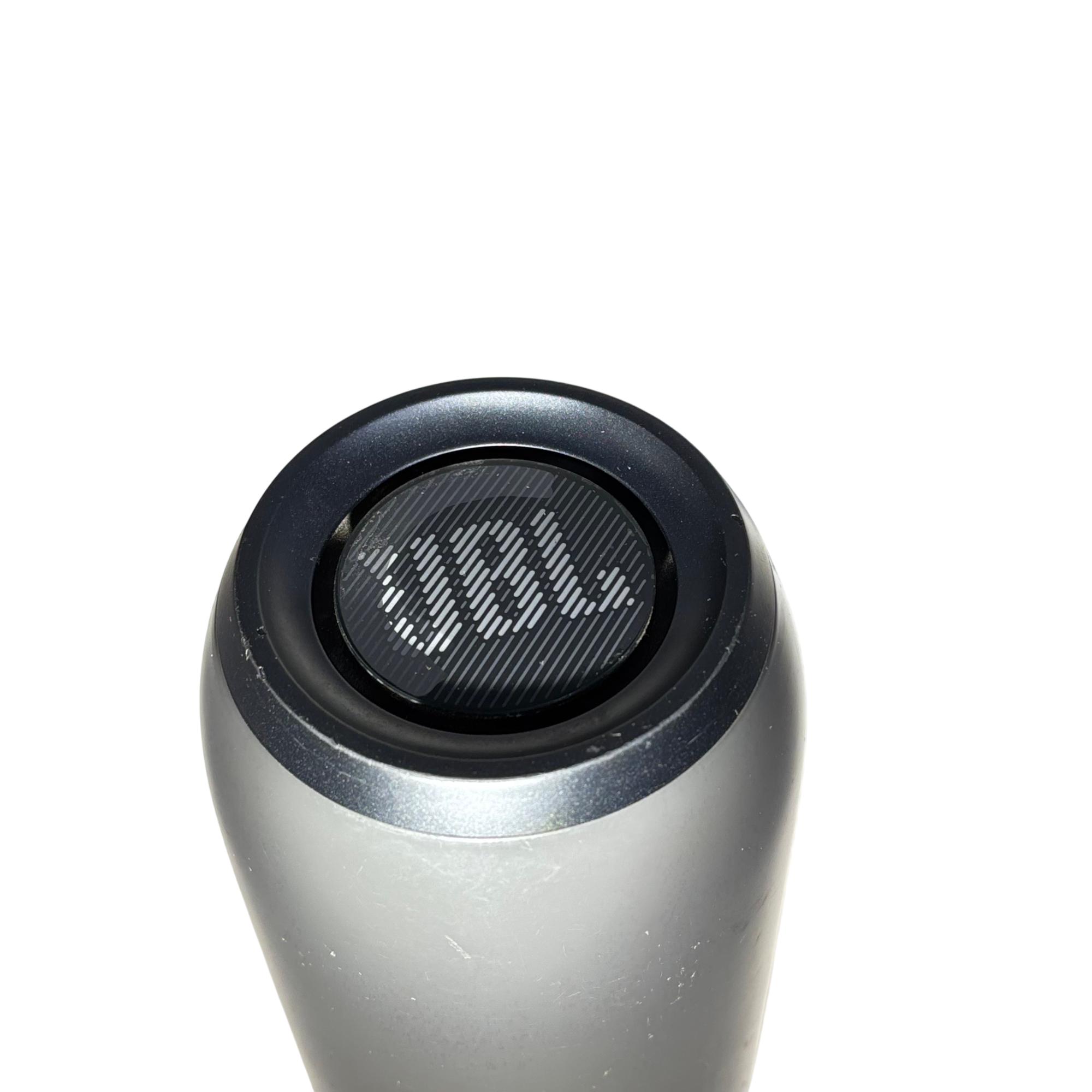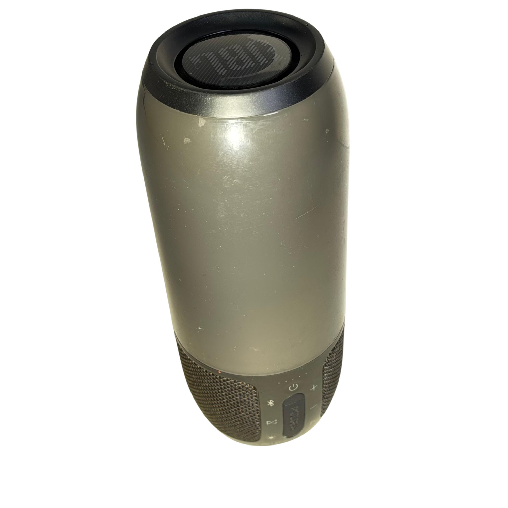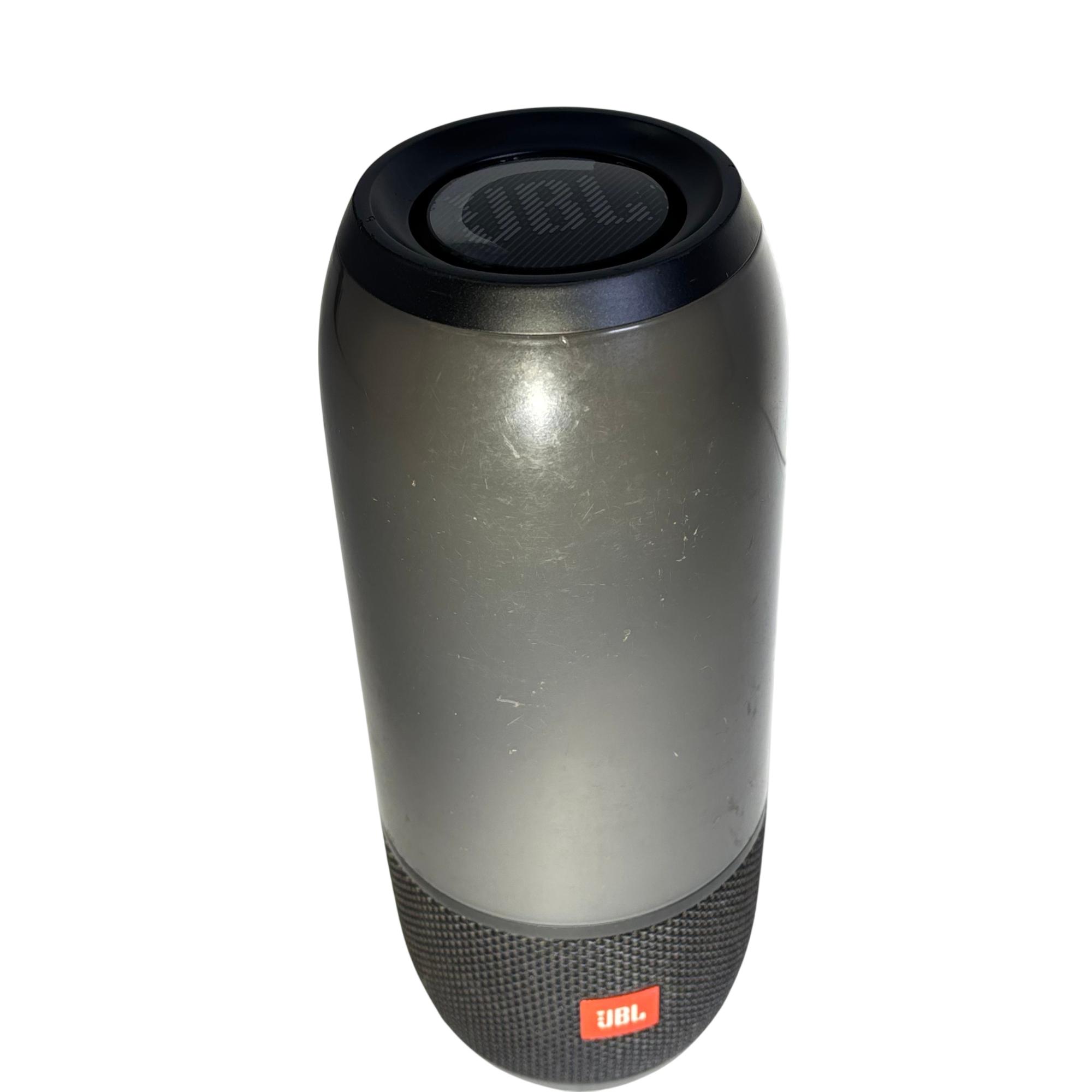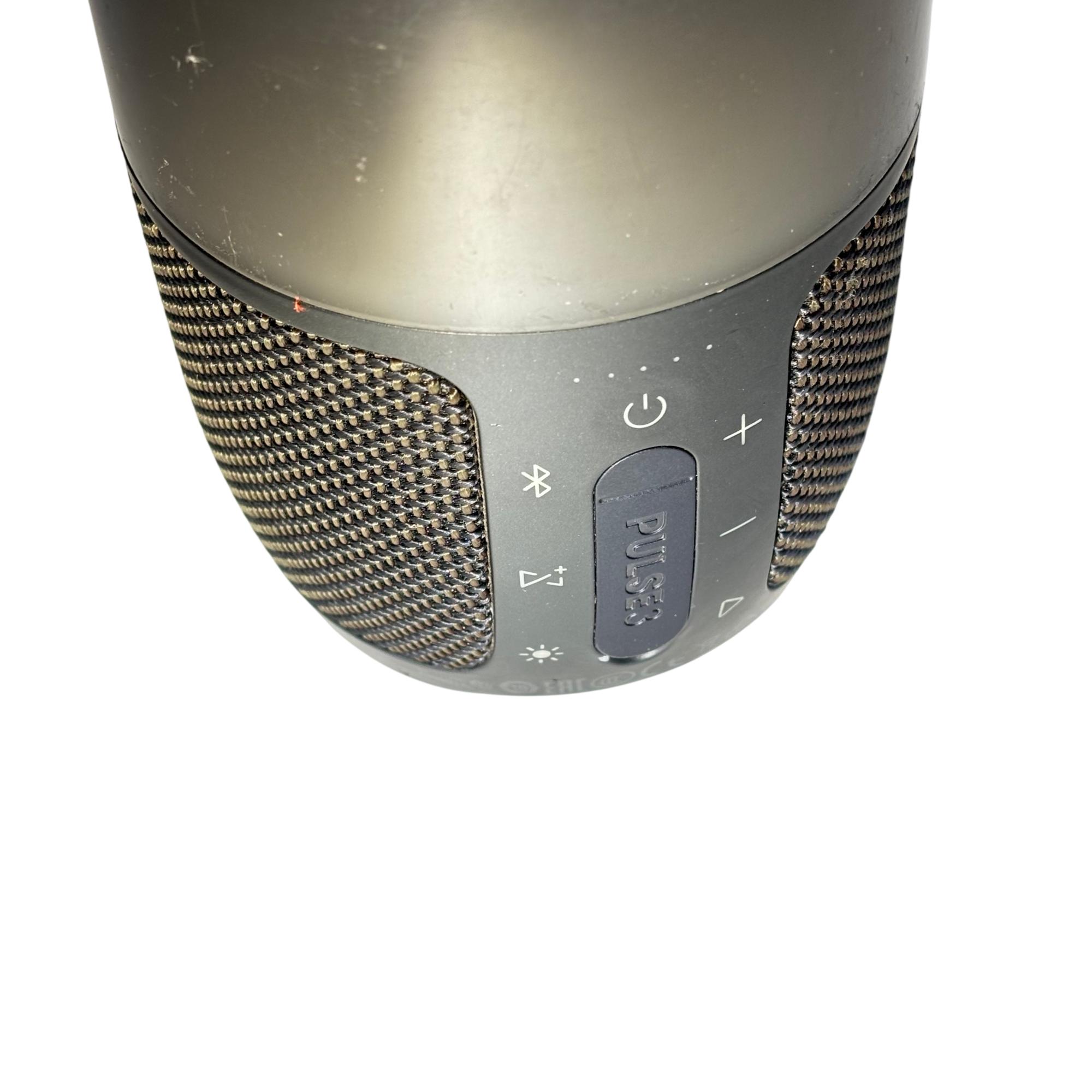 The JBL Pulse 3 Wireless Bluetooth Speaker in black features a distinctive round design with integrated LED lights that create vibrant visual effects. This portable speaker delivers powerful, immersive sound with deep bass and clear highs, making it ideal for indoor and outdoor use. Its sleek grey and black finish combines style with functionality for a premium listening experience.