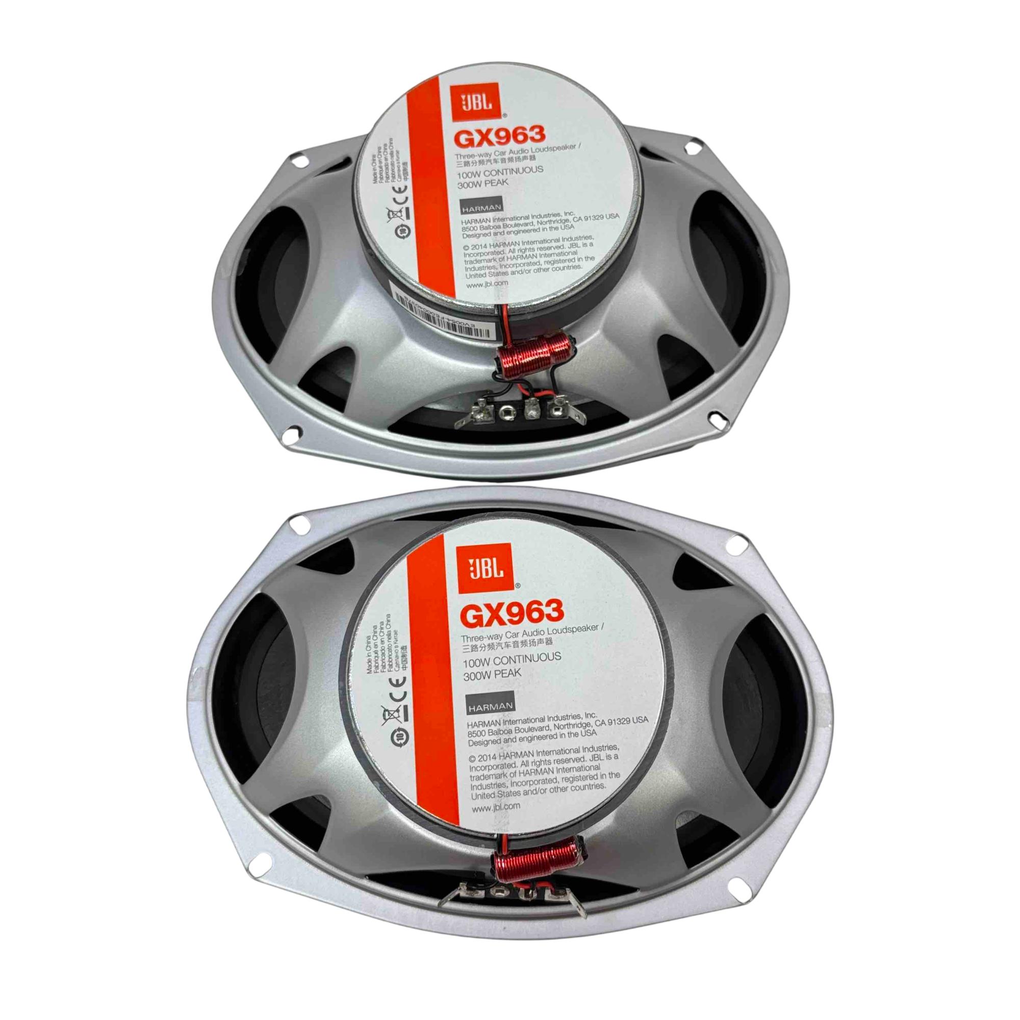 Upgrade your car audio experience with this pair of JBL GX963 Three-way Car Audio Loudspeakers. Engineered for clear, dynamic sound and powered by Harman expertise, these speakers deliver up to 100W continuous and 300W peak power. Included are stylish mesh grilles and a wiring kit for easy installation, making this an ideal choice for car audio enthusiasts seeking premium quality and performance.