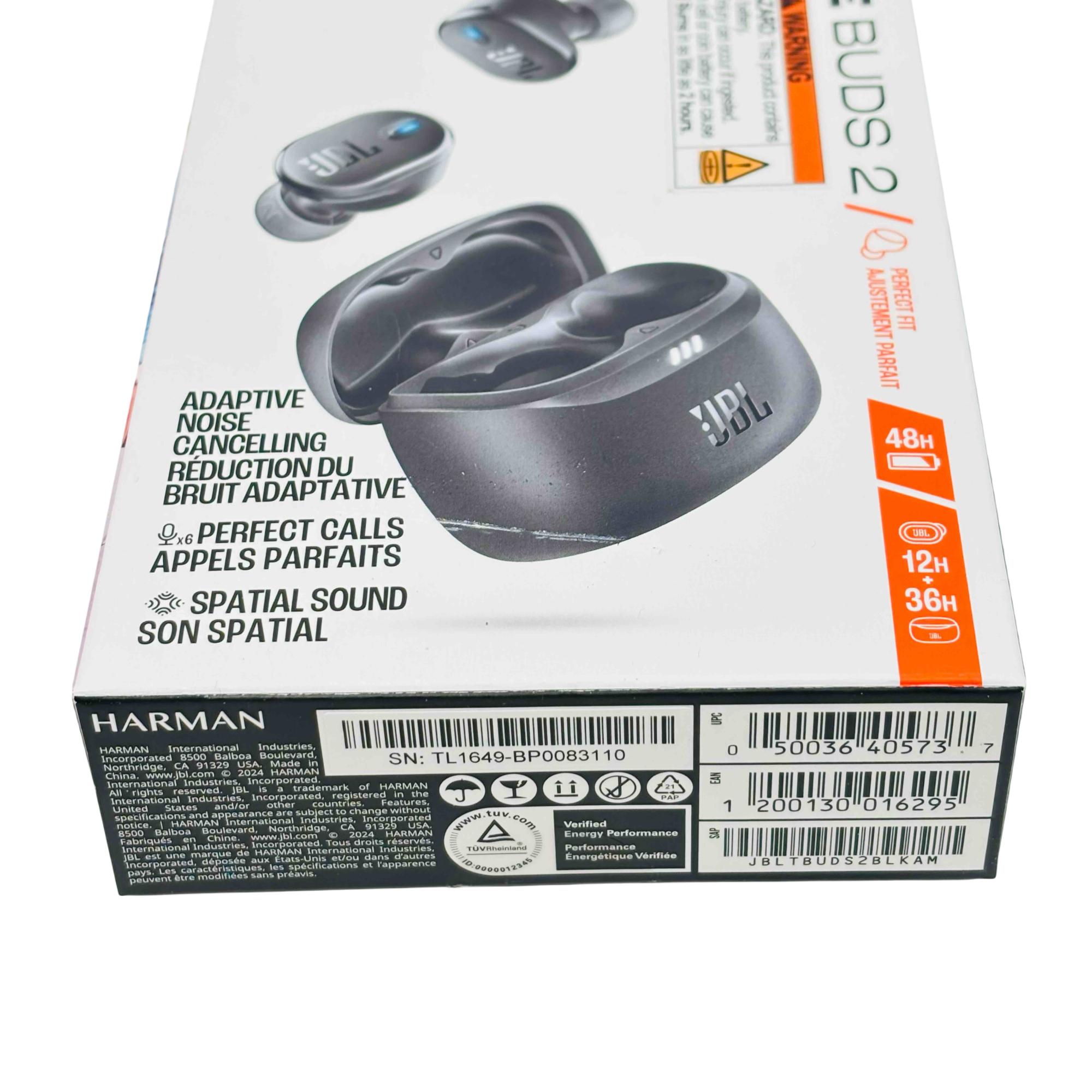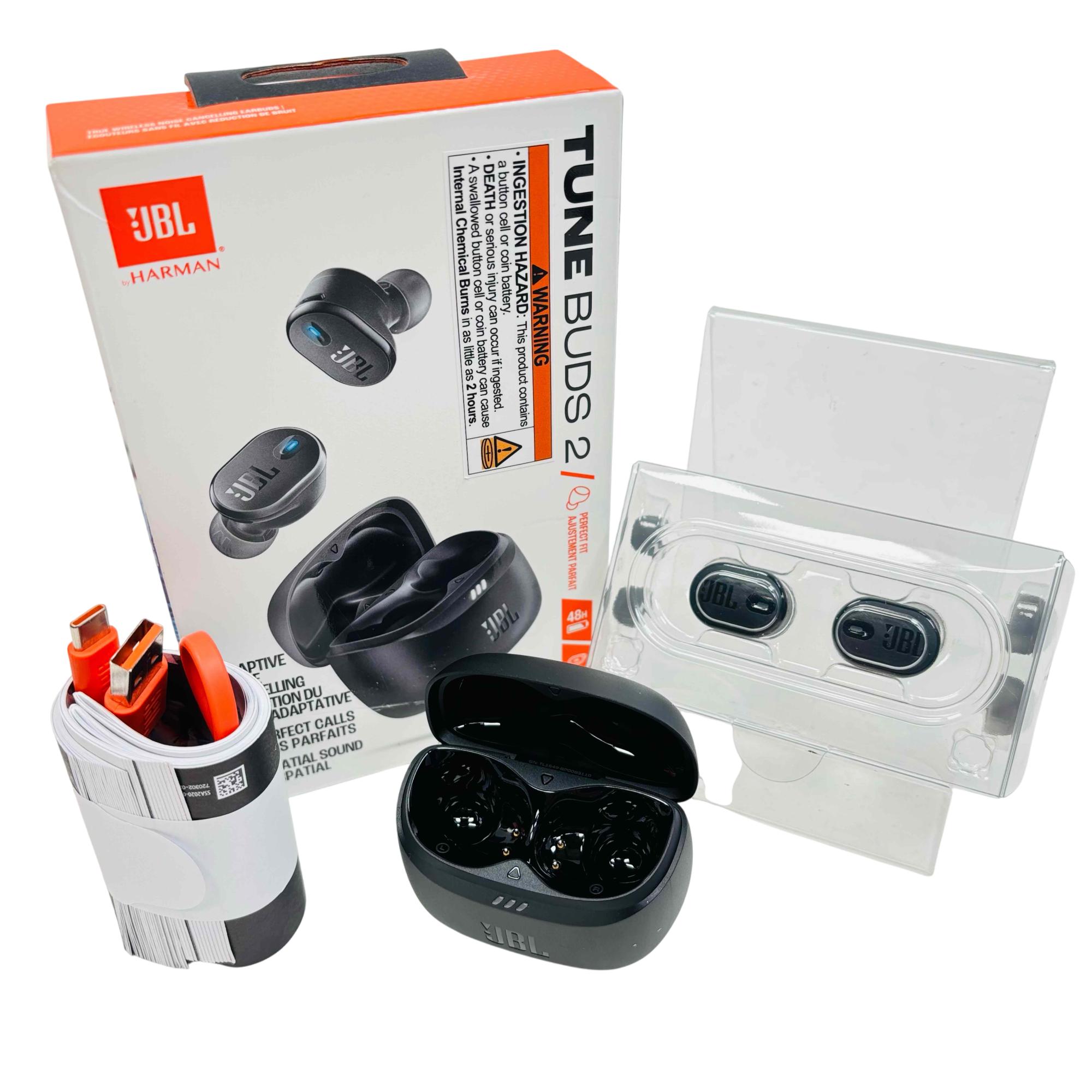 JBL Tune Buds 2 True Wireless Earbuds deliver high-quality stereo sound with powerful bass performance and adaptive sound technology. Featuring an ergonomic design for a secure and comfortable fit, these earbuds offer enhanced call clarity and seamless Bluetooth connectivity for an optimized wireless listening experience.