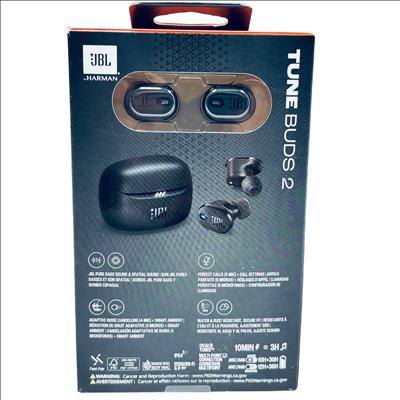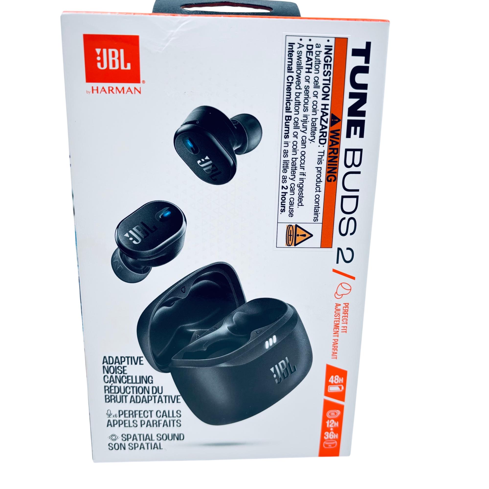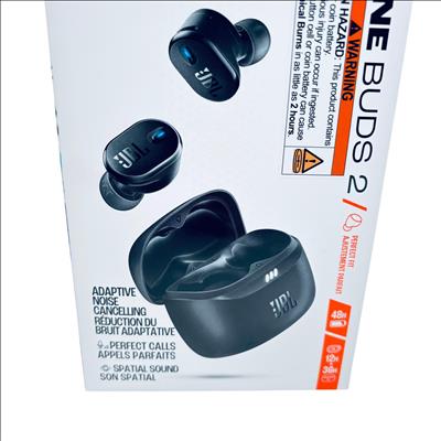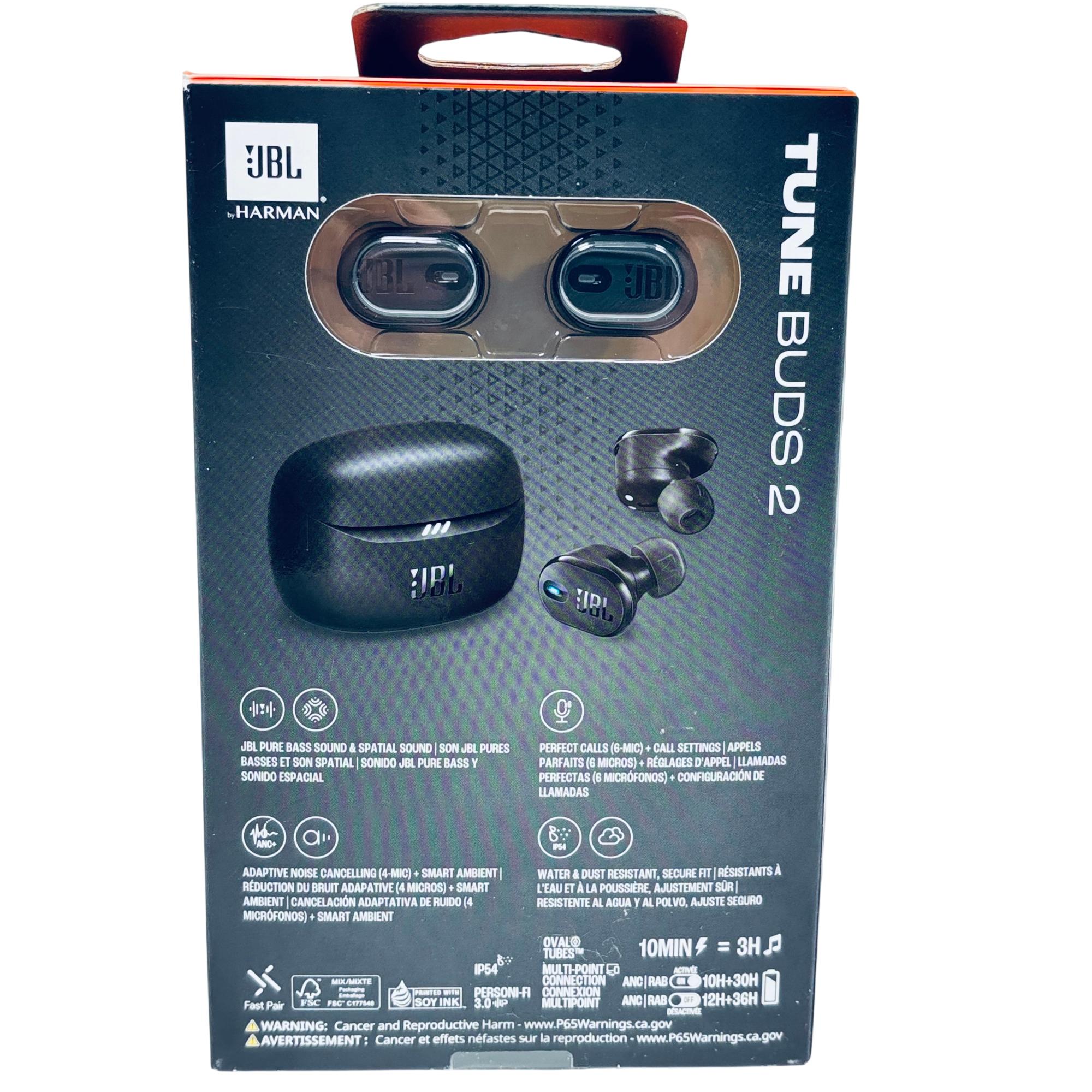 JBL Tune Buds 2 True Wireless Noise Cancelling Earbuds deliver powerful pure bass sound combined with spatial audio for an immersive listening experience. Featuring adaptive noise cancelling with multiple microphones and a secure water and dust resistant design, these earbuds provide clear calls and an excellent fit for active use.