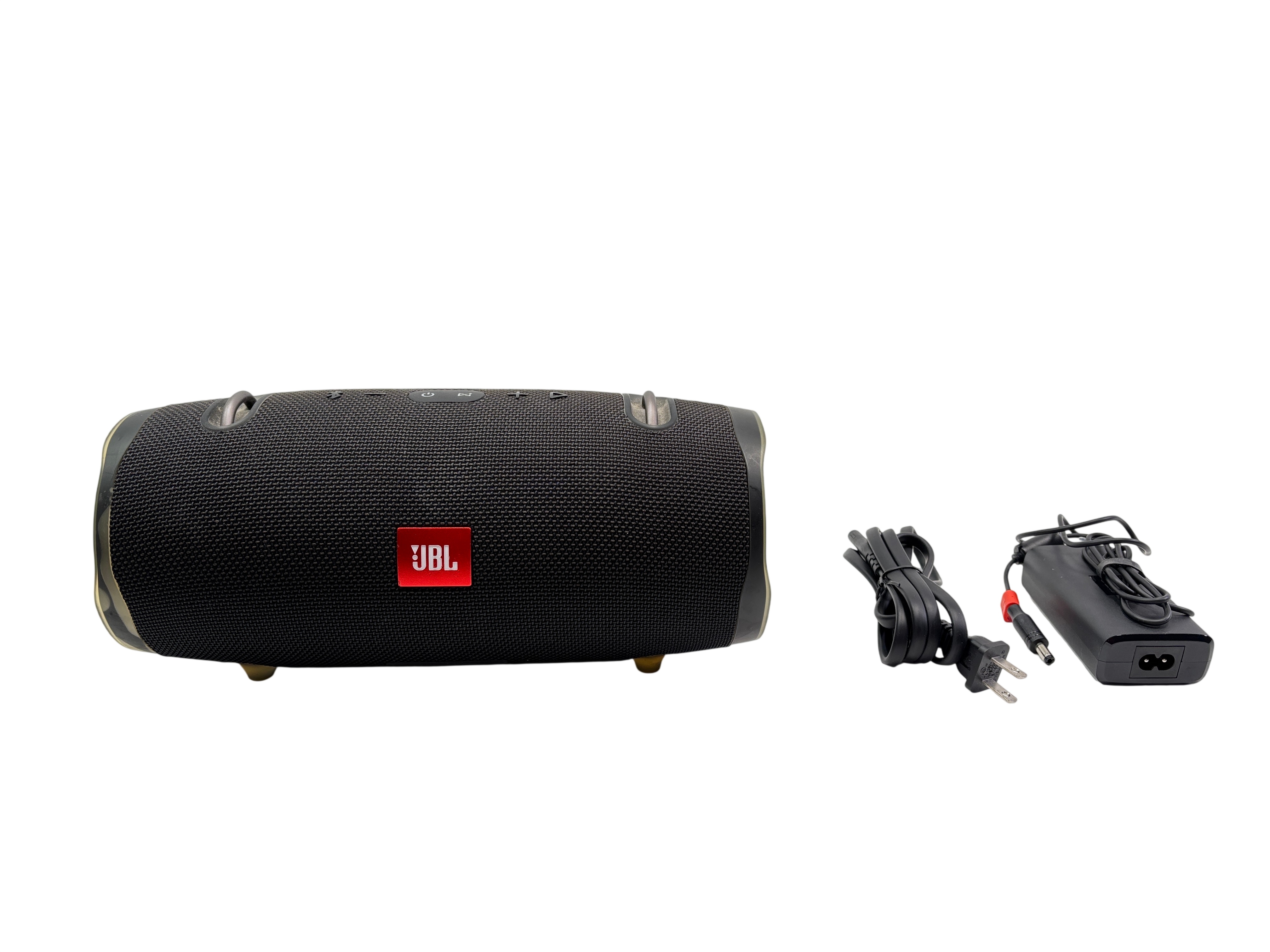 The JBL Xtreme 2 Bluetooth Speaker (Model XTREME 2) delivers powerful 20W stereo sound in a rugged, portable design. Featuring an IPX7 waterproof rating, this speaker is perfect for outdoor adventures and poolside use. It includes a rechargeable battery, AUX input, and USB charging port for versatile connectivity. The speaker comes with a power adapter and cord, making it ready to use right out of the box.