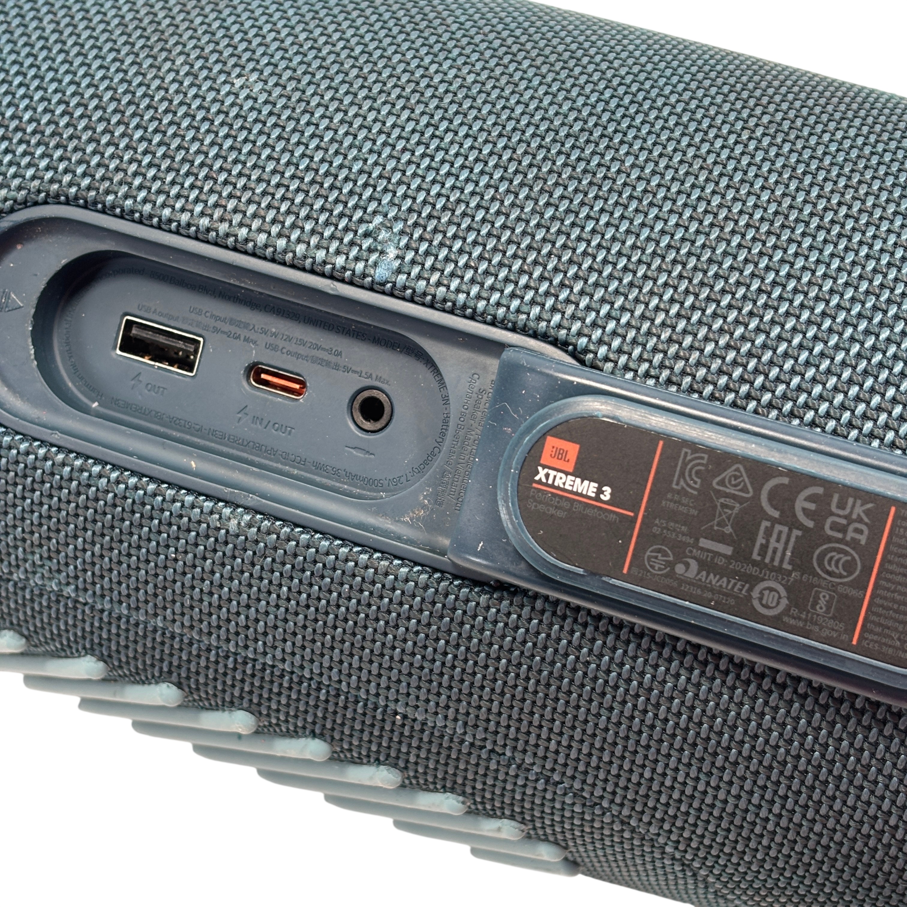 The JBL Xtreme 3 Blue Portable Waterproof Bluetooth Speaker XTREME3N delivers powerful, immersive sound in a rugged, waterproof design. Featuring a rechargeable battery, this speaker is perfect for on-the-go use. Its IP67 rating ensures durability against water and dust, while the fabric and rubber construction offers a stylish yet tough exterior. Ideal for outdoor adventures or home use, the JBL Xtreme 3 provides versatile connectivity and long-lasting performance.