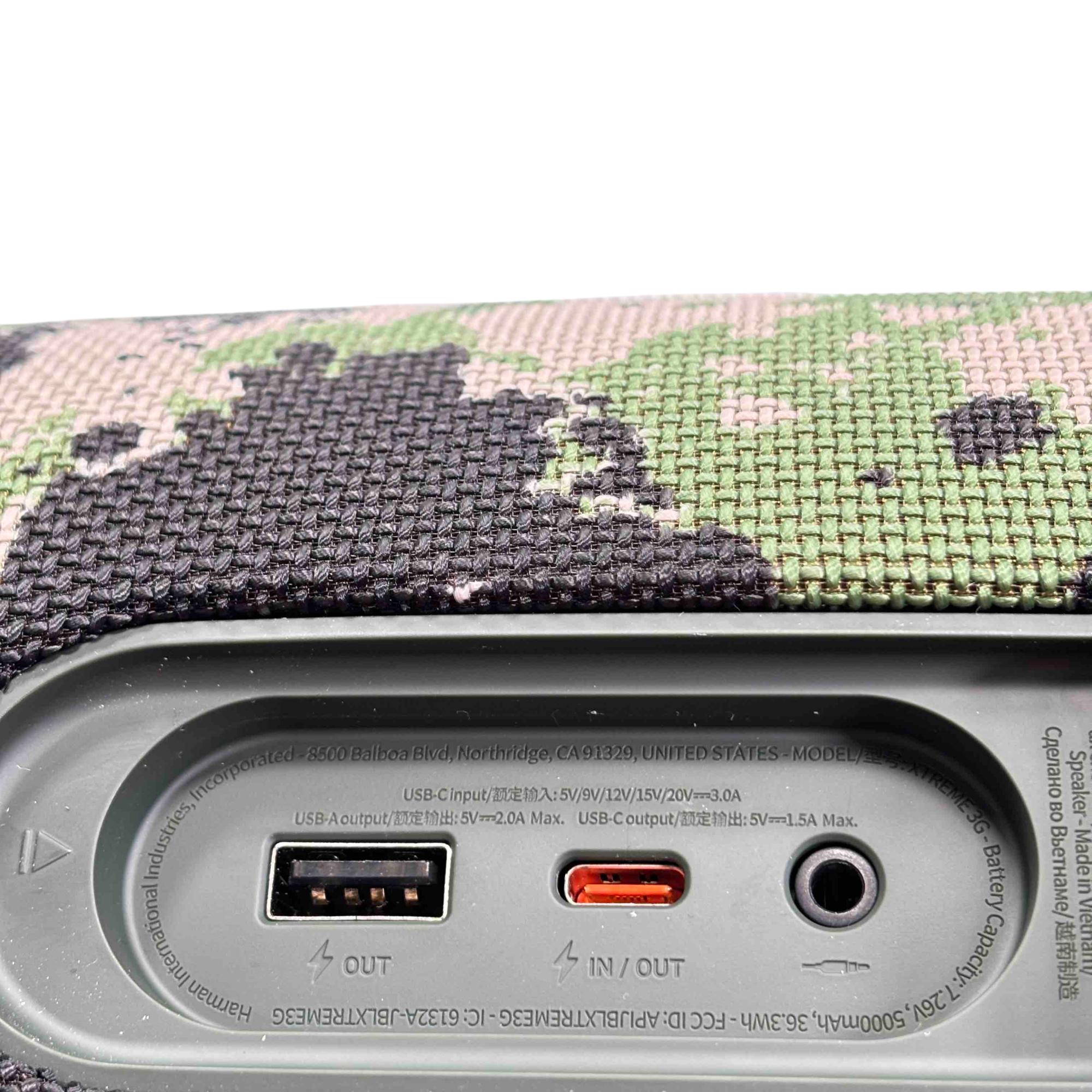 Get ready to elevate your audio experience with the JBL Xtreme 3 Portable Bluetooth Speaker. Designed with a striking camouflage pattern, this speaker not only looks good but delivers exceptional sound quality. With USB-C input and a convenient strap for on-the-go use, it's perfect for music lovers who need a powerful speaker wherever they go.