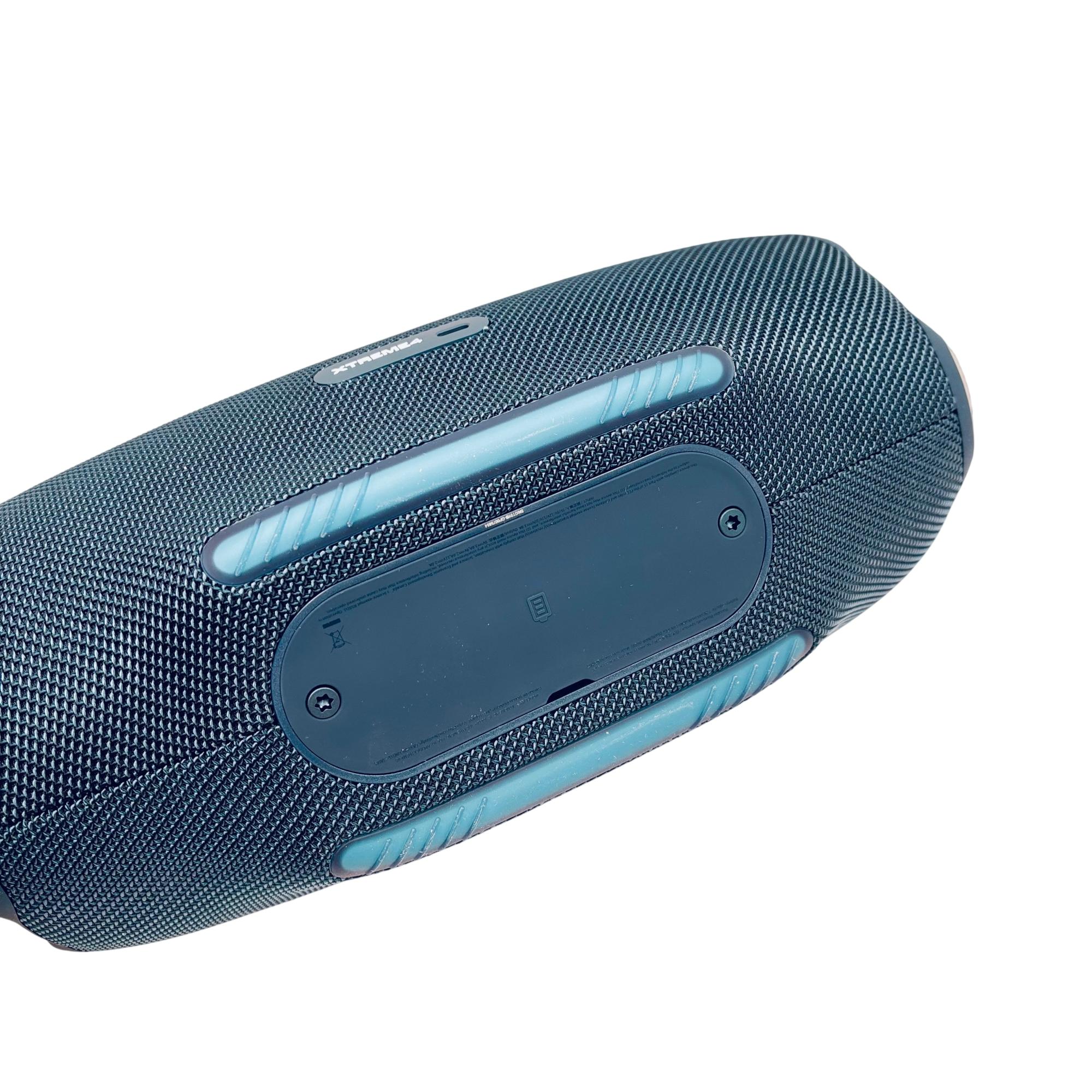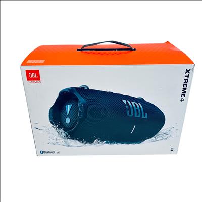 The JBL Xtreme 4 Portable Bluetooth Speaker in blue delivers powerful, high-quality sound with enhanced bass performance. Featuring the latest Bluetooth v5.3 technology and a rugged waterproof design, this speaker is ideal for both indoor and outdoor use. Engineered by Harman, it combines durability with advanced wireless connectivity for an immersive audio experience.