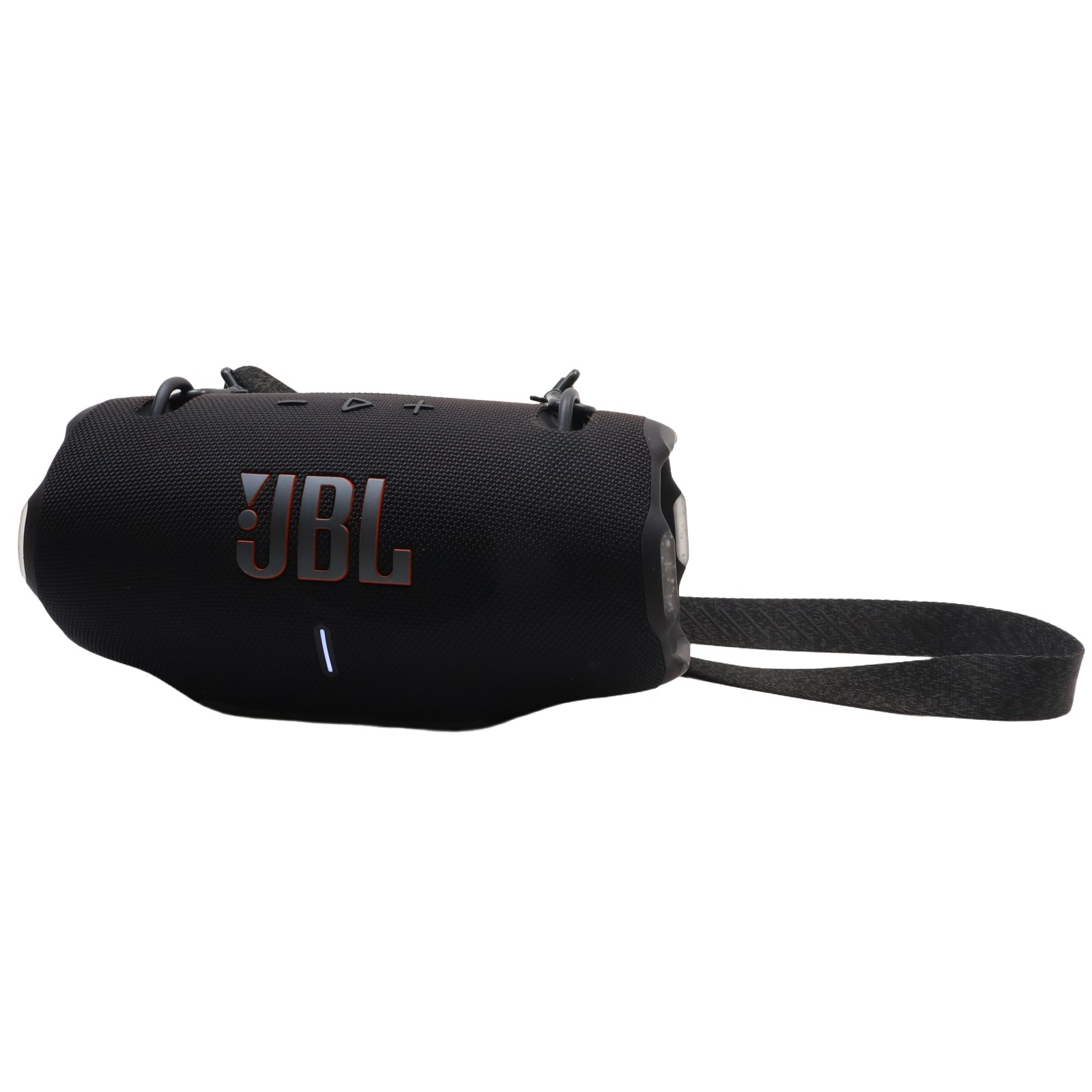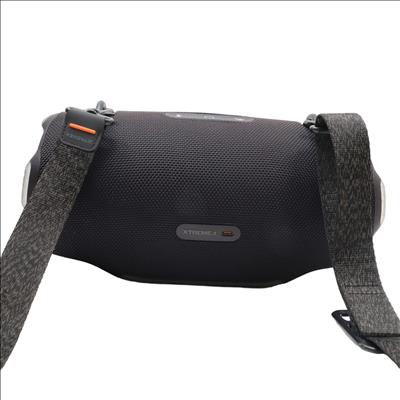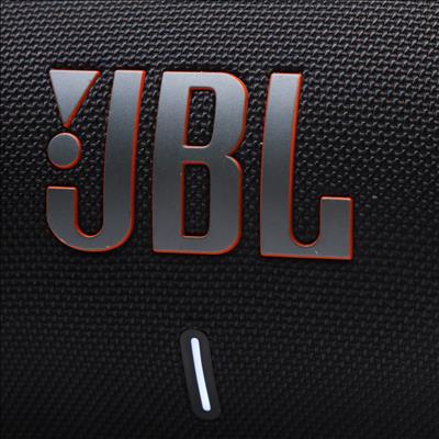 Features a rugged design with IP67 water and dust resistance, dual woofers, dual tweeters, and passive radiators that deliver strong sound and deep bass, supported by an AI-driven sound enhancement mode for improved clarity and output. It includes a built-in power bank for charging devices, supports stereo pairing with a second unit, and can connect with additional compatible speakers through Auracast or the PartyBoost function in the JBL Portable app. The unit comes with an adjustable shoulder strap for easier carrying, protective rubber bumpers for outdoor use, and a replaceable rechargeable battery design, making it suitable for a wide range of listening environments.