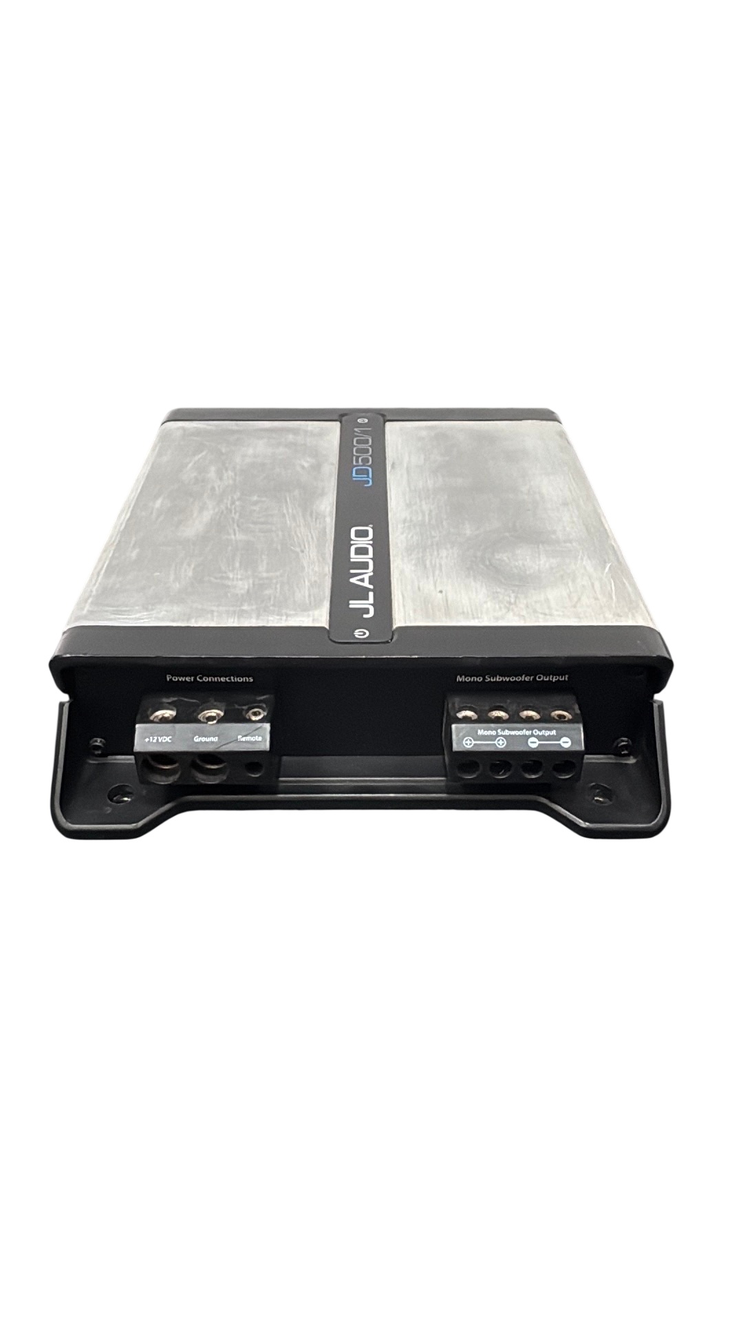 The JL Audio JD500/1 Monoblock Class D Subwoofer Amplifier delivers a powerful 500 watts RMS output designed specifically for subwoofer applications. This amplifier features adjustable low pass filtering and bass boost controls, allowing precise tuning to match your audio setup. With its compact and durable metal chassis measuring approximately 2.0 inches in height, 7.5 inches in width, and 9.5 inches in length, it fits easily into most vehicle installations. Ideal for audiophiles seeking clean, efficient power for deep bass performance, the JD500/1 ensures reliable and high-quality sound reproduction.