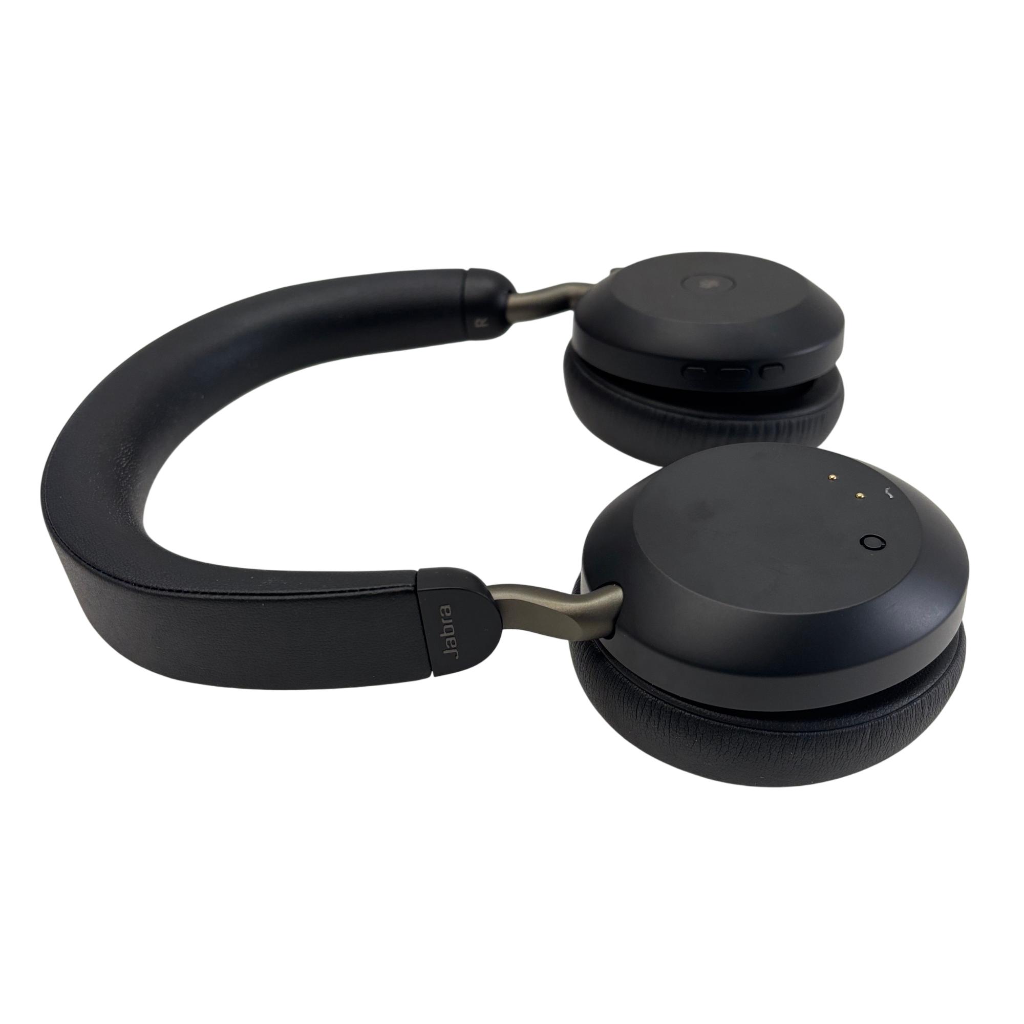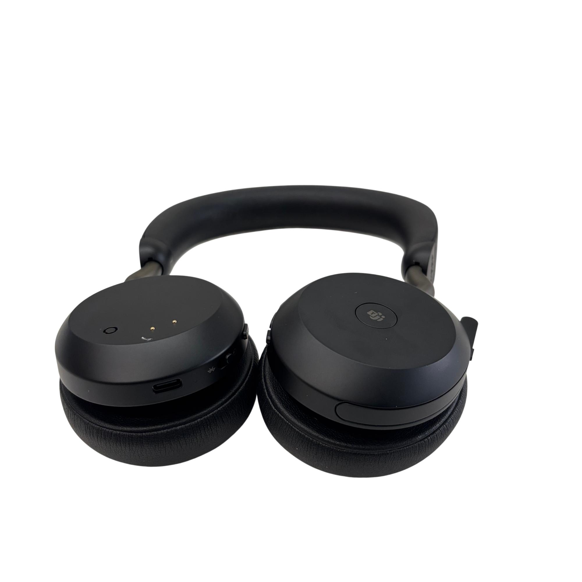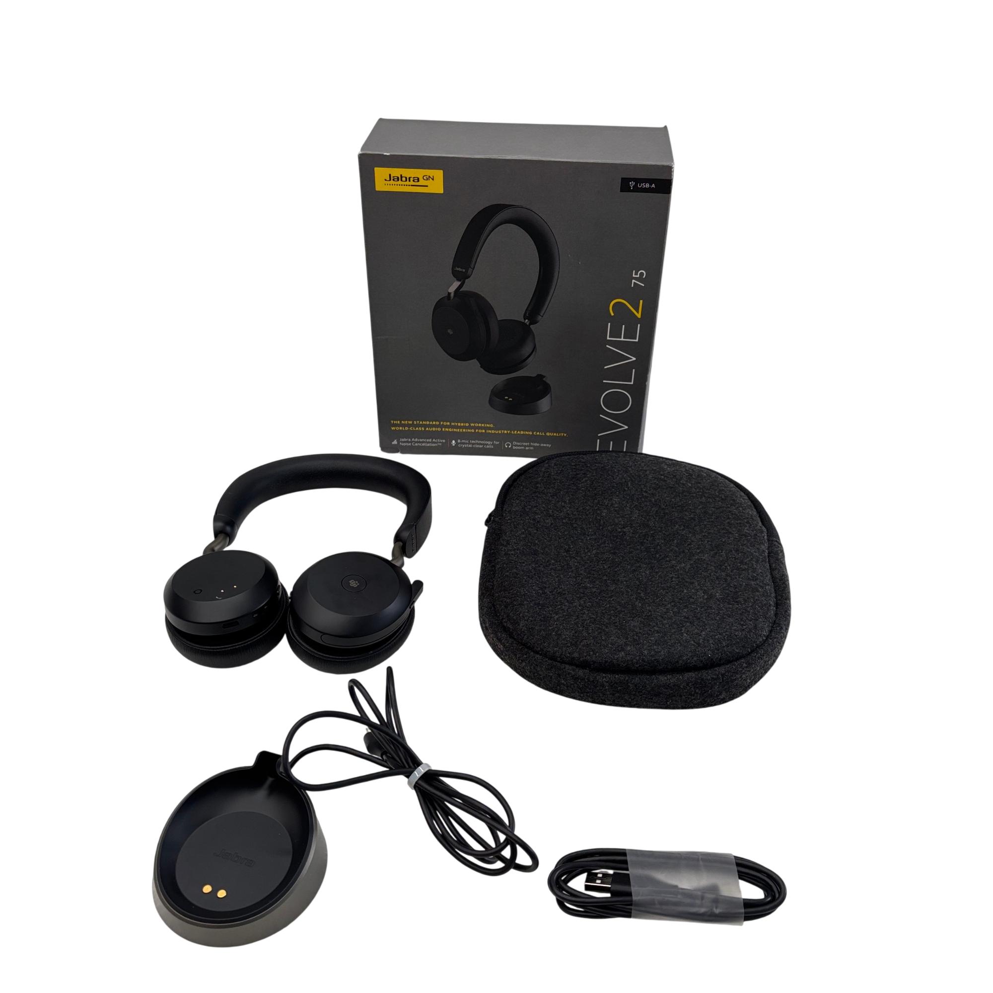 Jabra Evolve2 75 Wireless Headset with Charging Stand and Case offers advanced audio technology designed to deliver superior call quality with industry-leading noise cancellation. This sleek black headset features premium materials and a comfortable design optimized for professional hybrid work environments. USB-A connectivity ensures seamless integration with a variety of communication platforms, enhancing productivity and audio clarity.