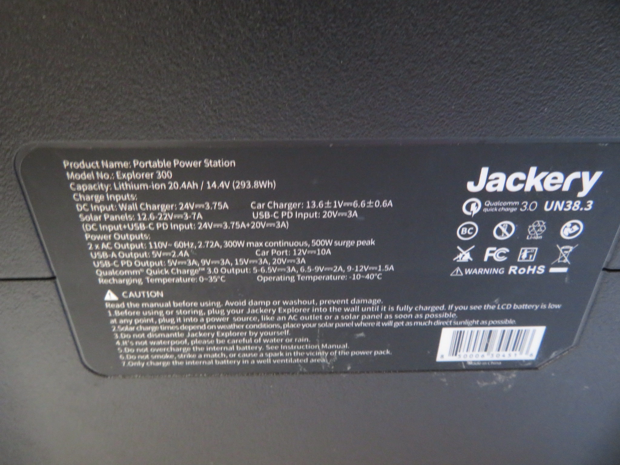 293Wh Capacity, 300W Inverter (500W Surge)