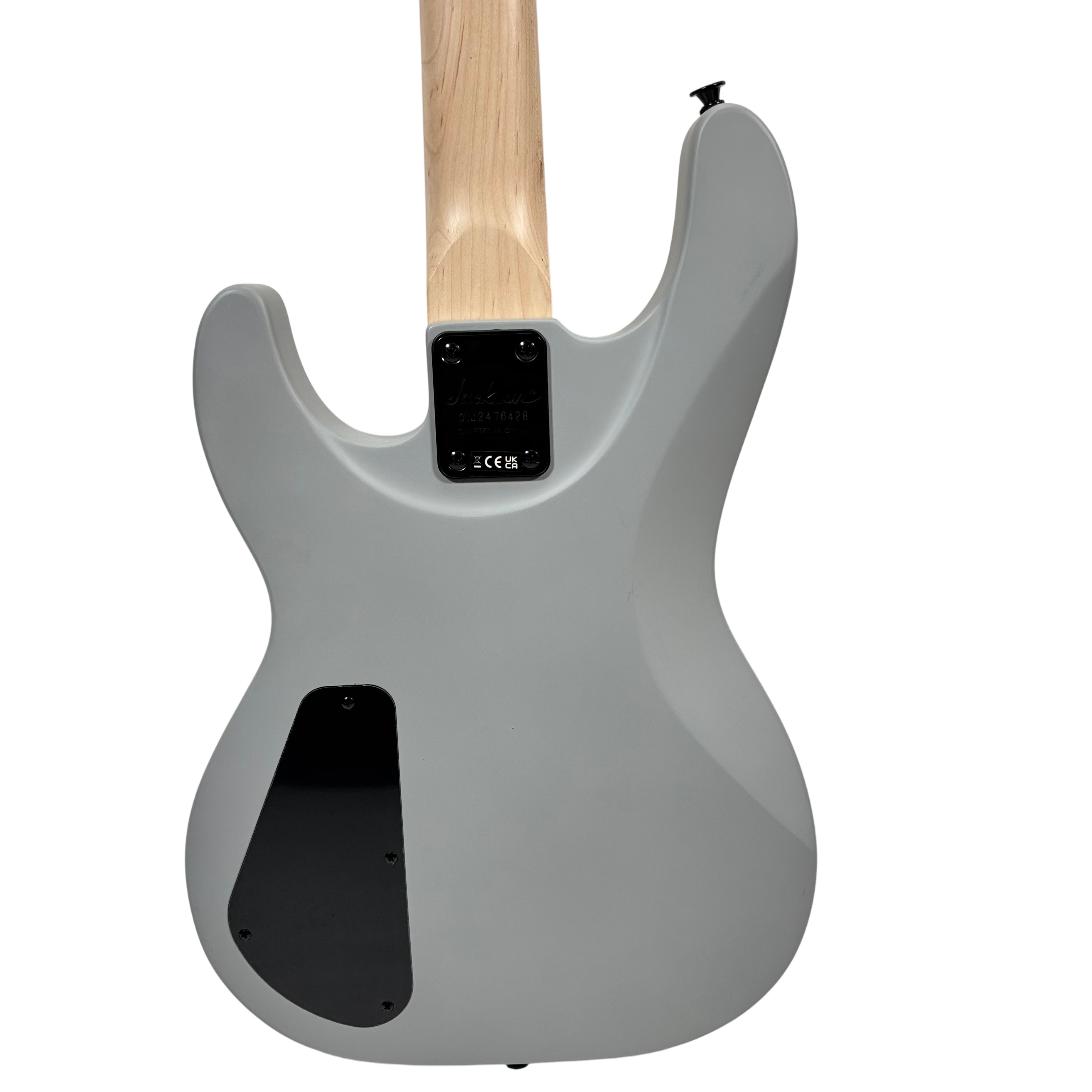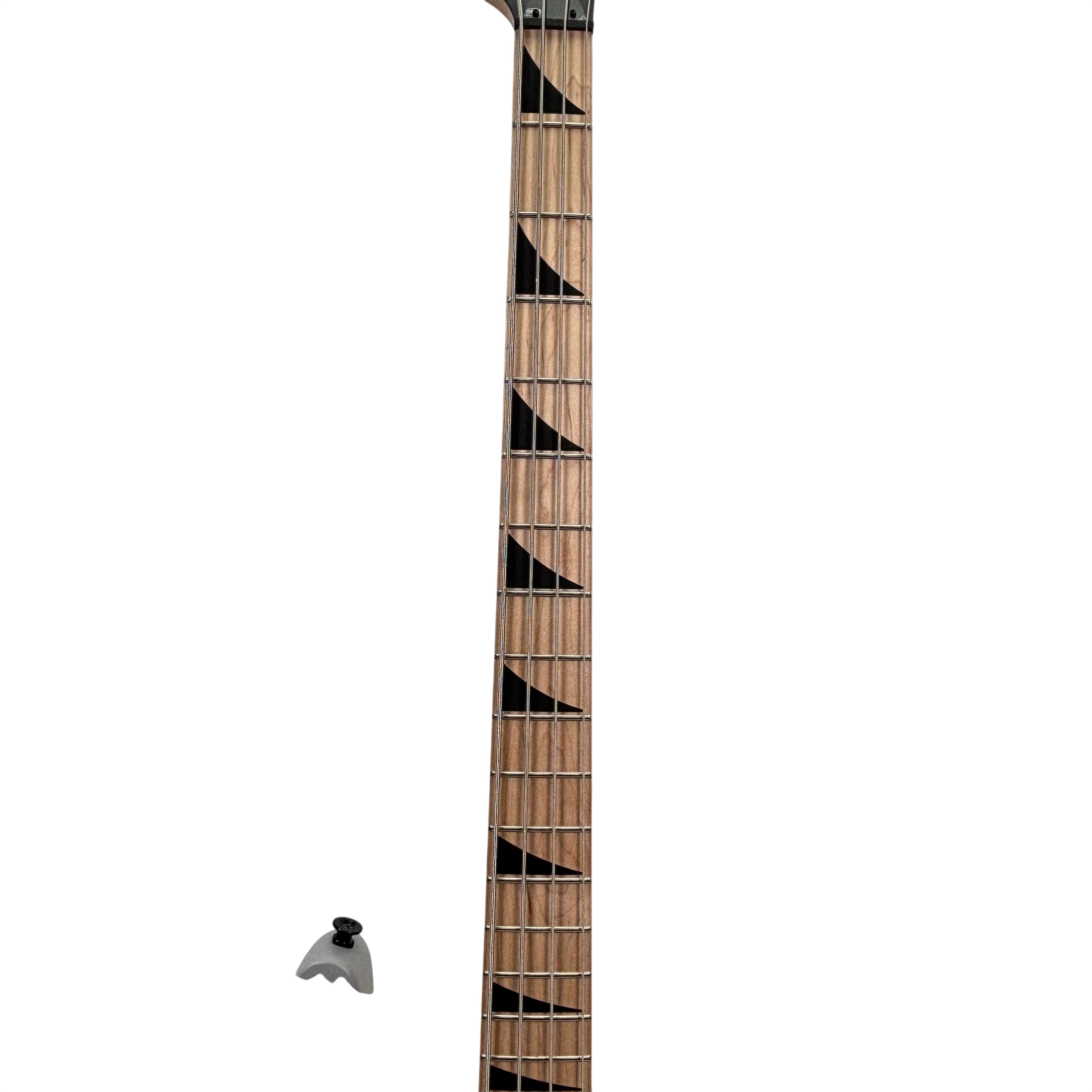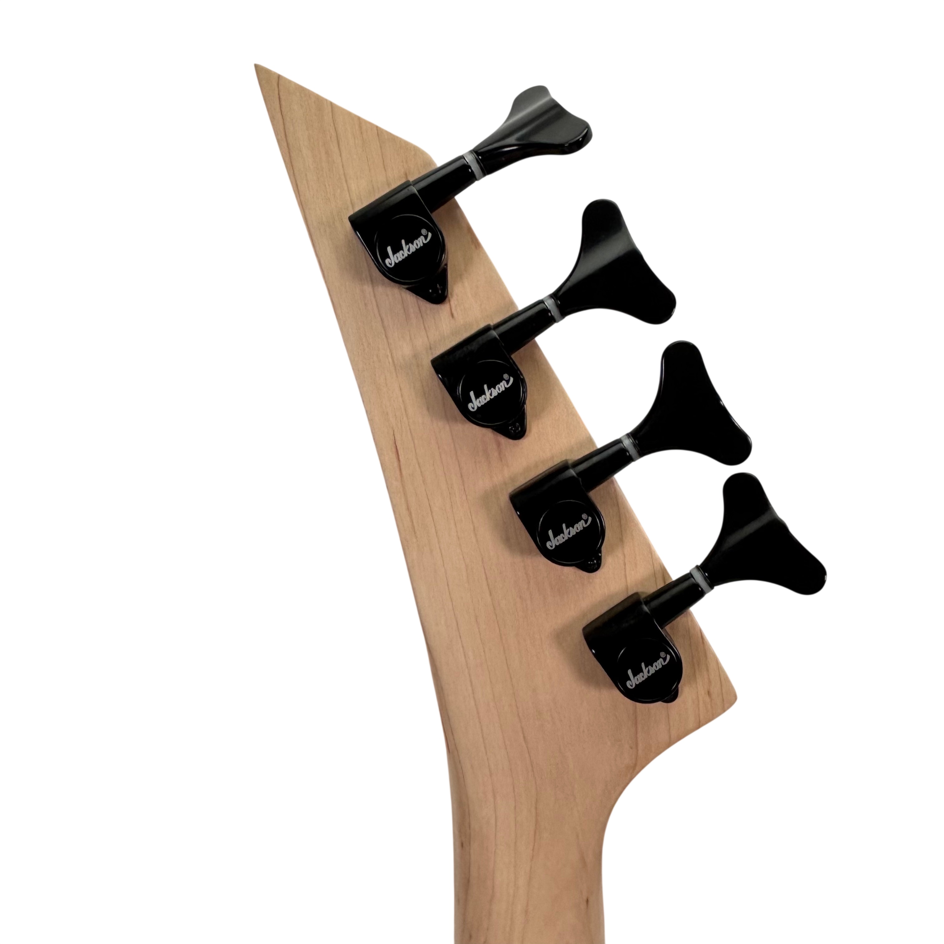 Jackson Electric Bass Guitar features a sleek gray body with a natural wood neck and distinctive black hardware. This 4-string bass guitar is crafted for players seeking solid performance and style, with sharktooth inlays on the fretboard and reliable pickups for clear sound. Ideal for beginners and intermediate musicians, it offers a comfortable playing experience and classic Jackson design elements.