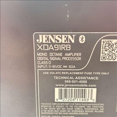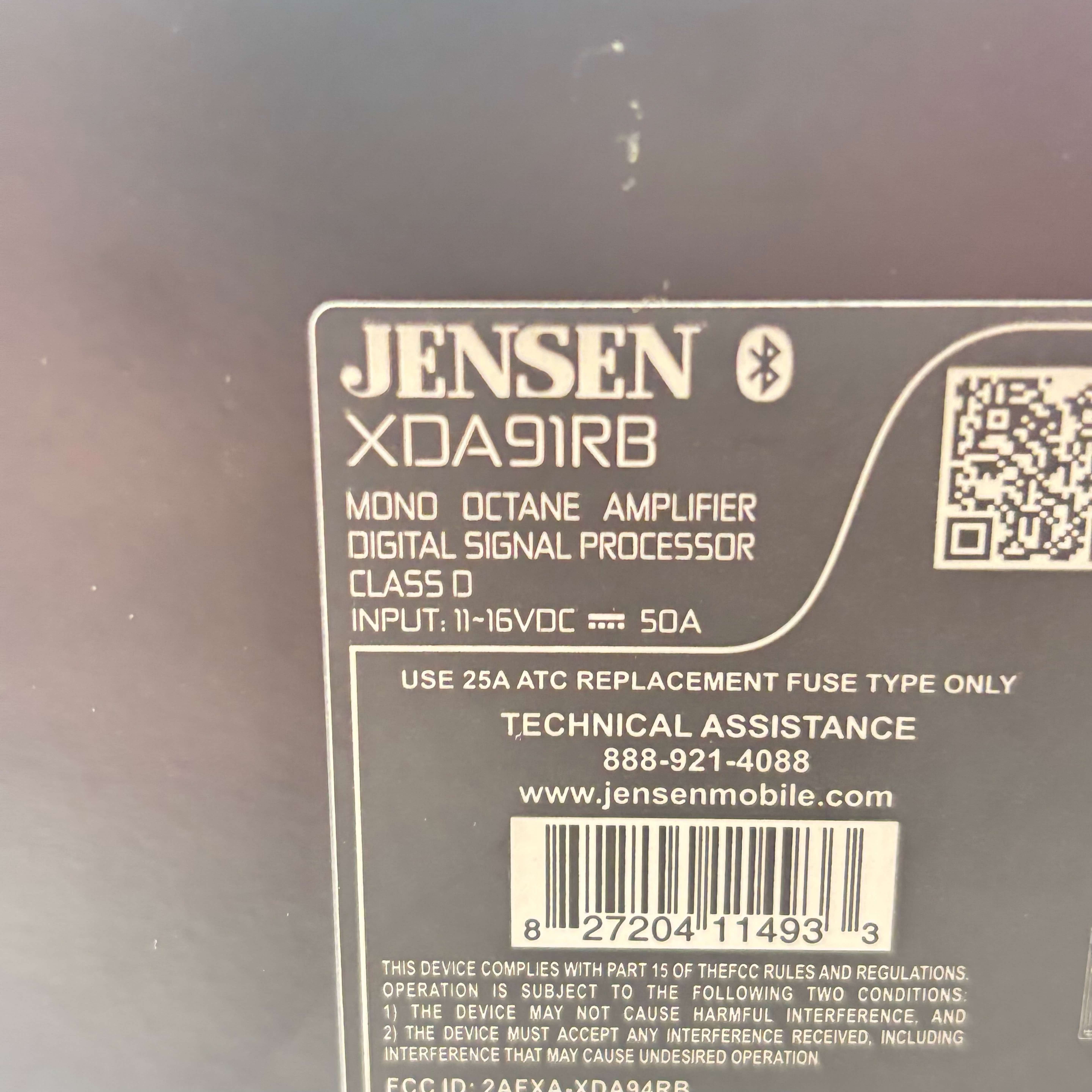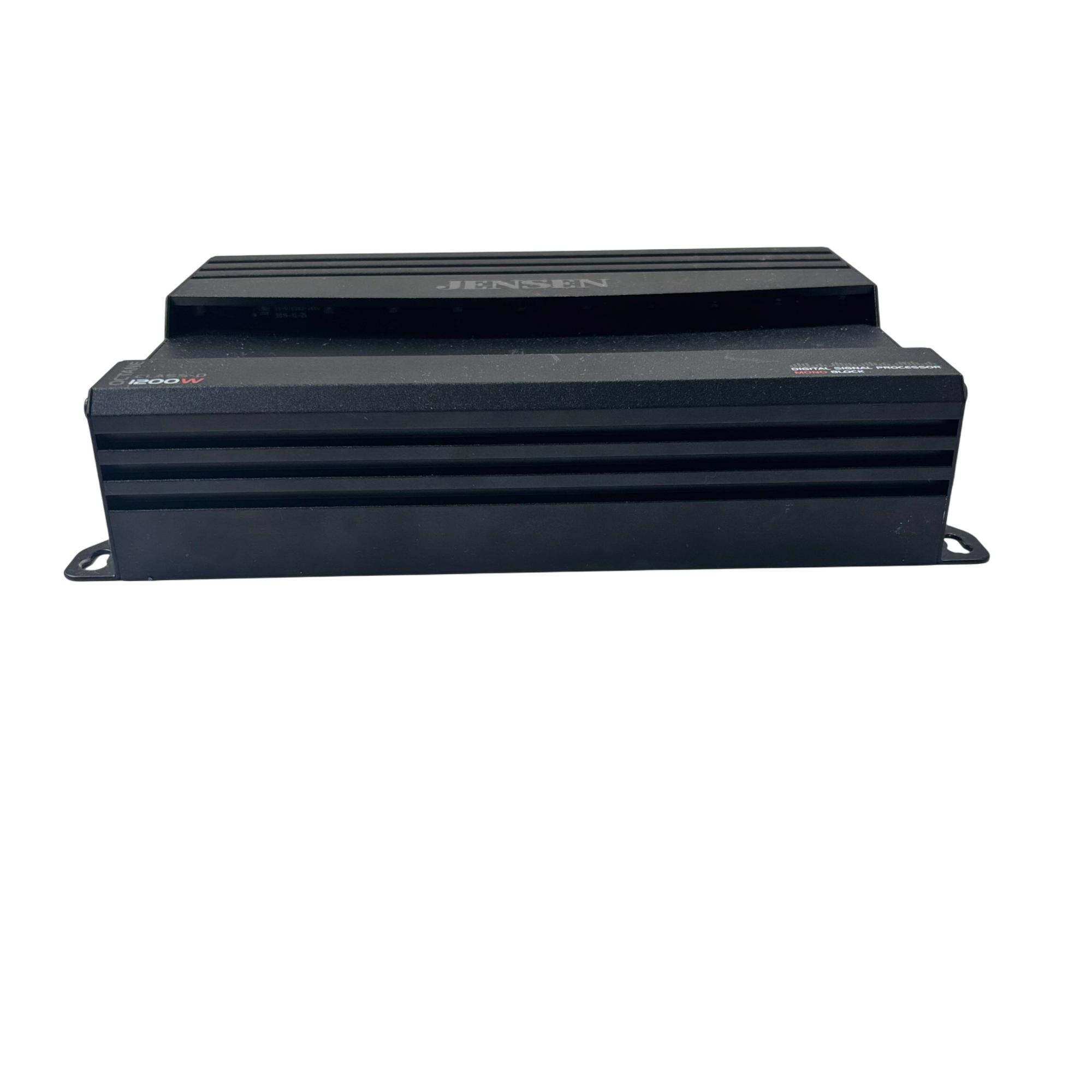 The Jensen Octane XDA91RB Class-D Mono Block Digital Signal Processor 1200W Amplifier delivers powerful and efficient audio performance with its robust Class-D technology and a high power output of 1200 watts. Designed for professional-grade sound systems, this amplifier features a digital signal processor for precise audio control and supports stable operation with speaker loads from 1 to 4 ohms. Its compact black design includes easy-to-access power and speaker connections, making it suitable for seamless integration into various audio setups.