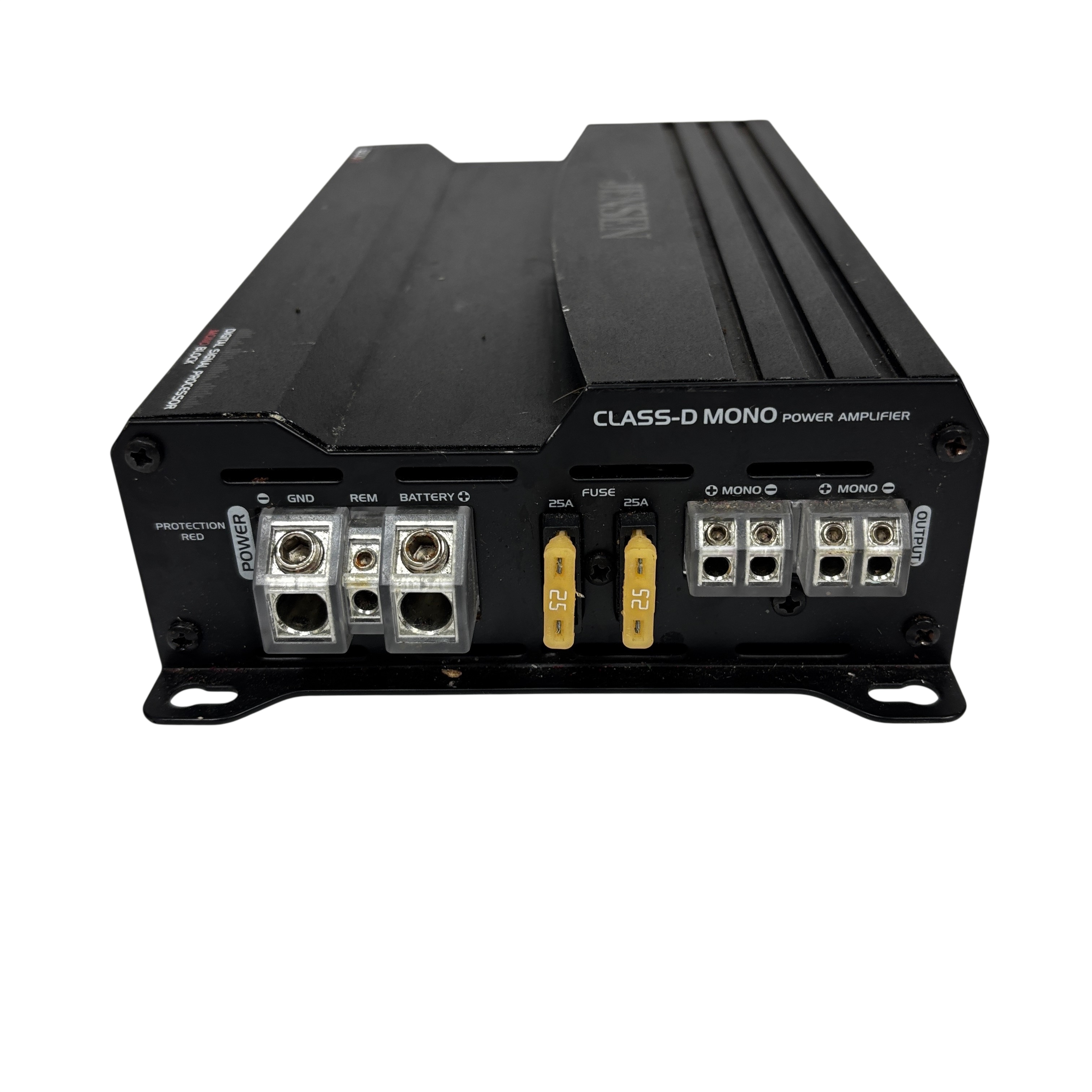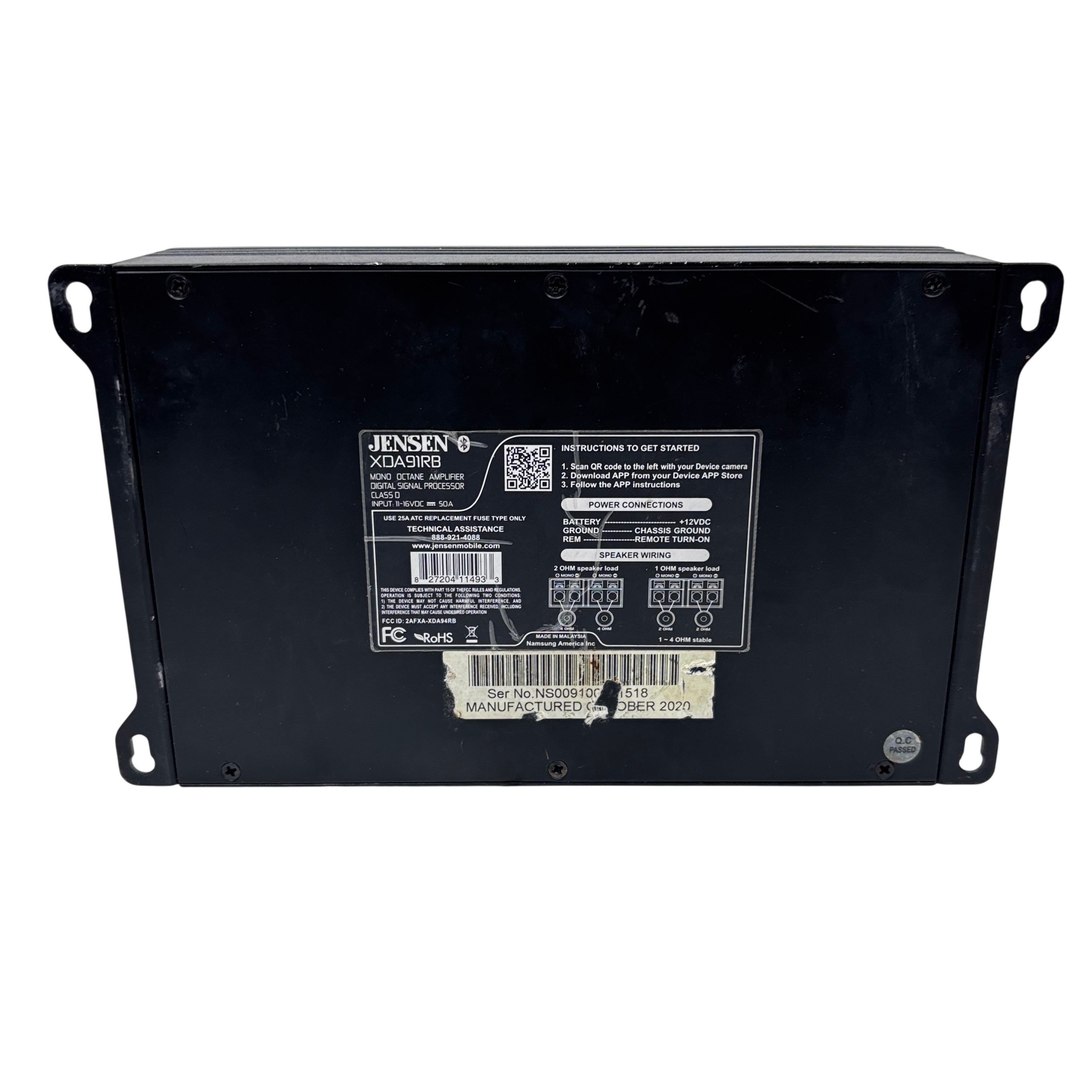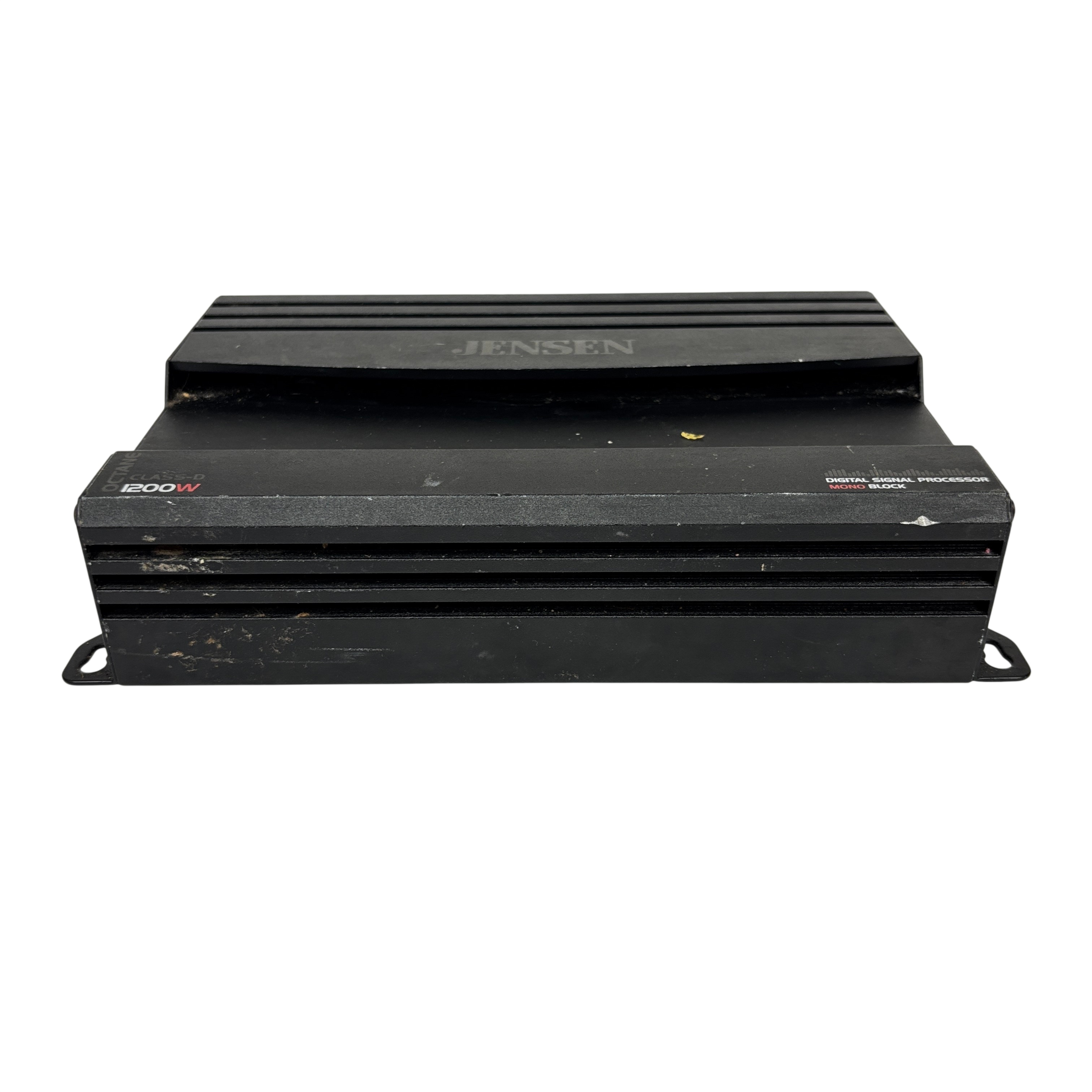 The Jensen Octane Class-D 1200W Mono Block Amplifier (Model XDA91RB) delivers powerful and efficient audio amplification with its Class-D design and 1200 watts output. Featuring a built-in digital signal processor and wireless app control, this amplifier allows precise tuning and easy integration into your audio system. It supports both high-level and RCA line inputs, making it versatile for various setups. Compact and robust, this mono block amplifier is ideal for enhancing subwoofer performance in car audio applications.