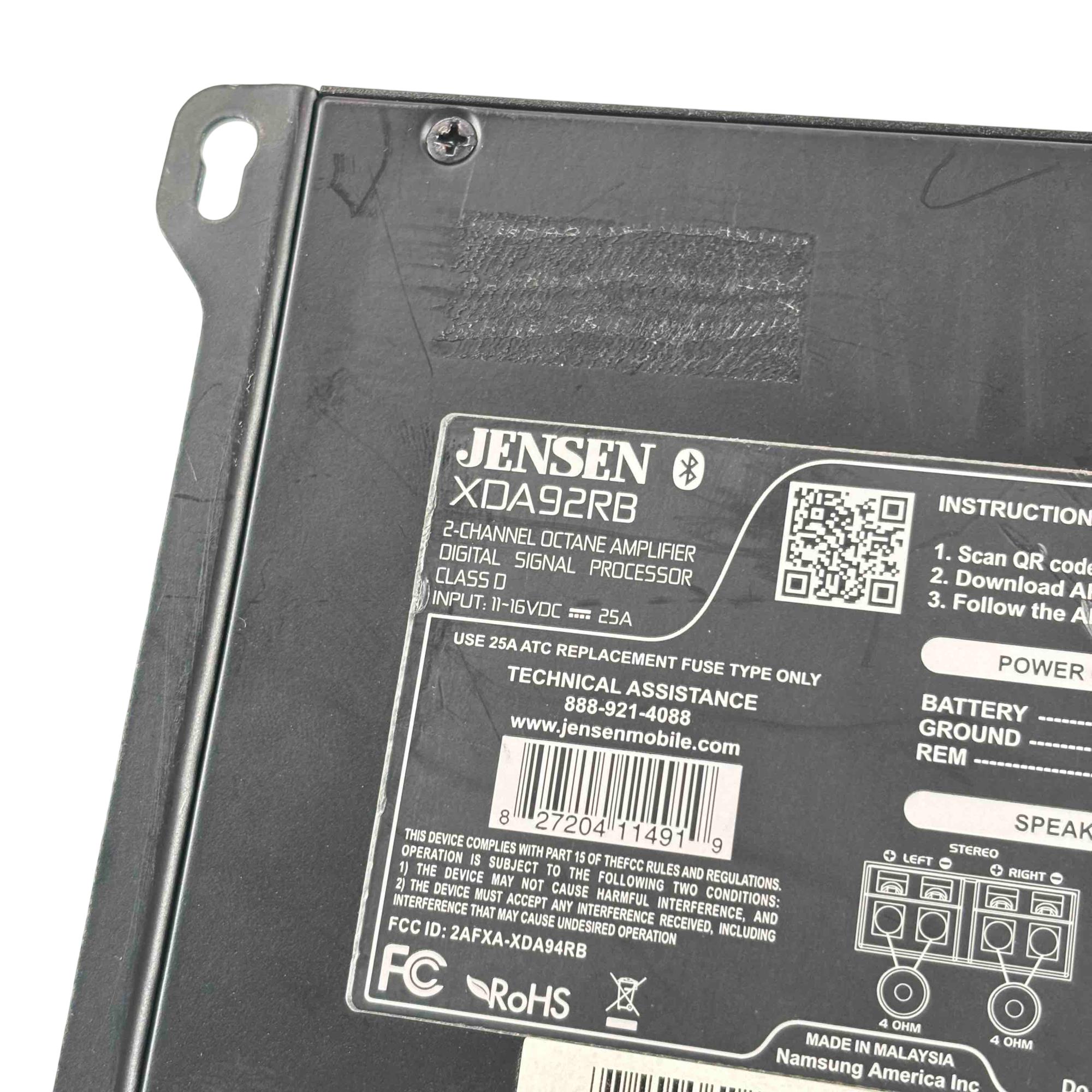 The Jensen Class D 2-Channel Amplifier delivers up to 600 watts of peak power with impressive efficiency and minimal distortion. It produces 80 watts RMS per channel at 4 ohms, or 240 watts RMS when bridged to a single channel. Designed for versatility, it features variable high-pass and low-pass crossovers, allowing seamless integration with full-range speakers or subwoofers, along with a variable bass boost at 45Hz for deeper lows. The built-in RGB illumination can be fully customized using the Jensen DSP Bluetooth app, which also gives you control over volume, frequency, gain, and remote bass settings. For added peace of mind, the amplifier includes built-in thermal and DC offset protection, ensuring safe and reliable operation under demanding conditions.