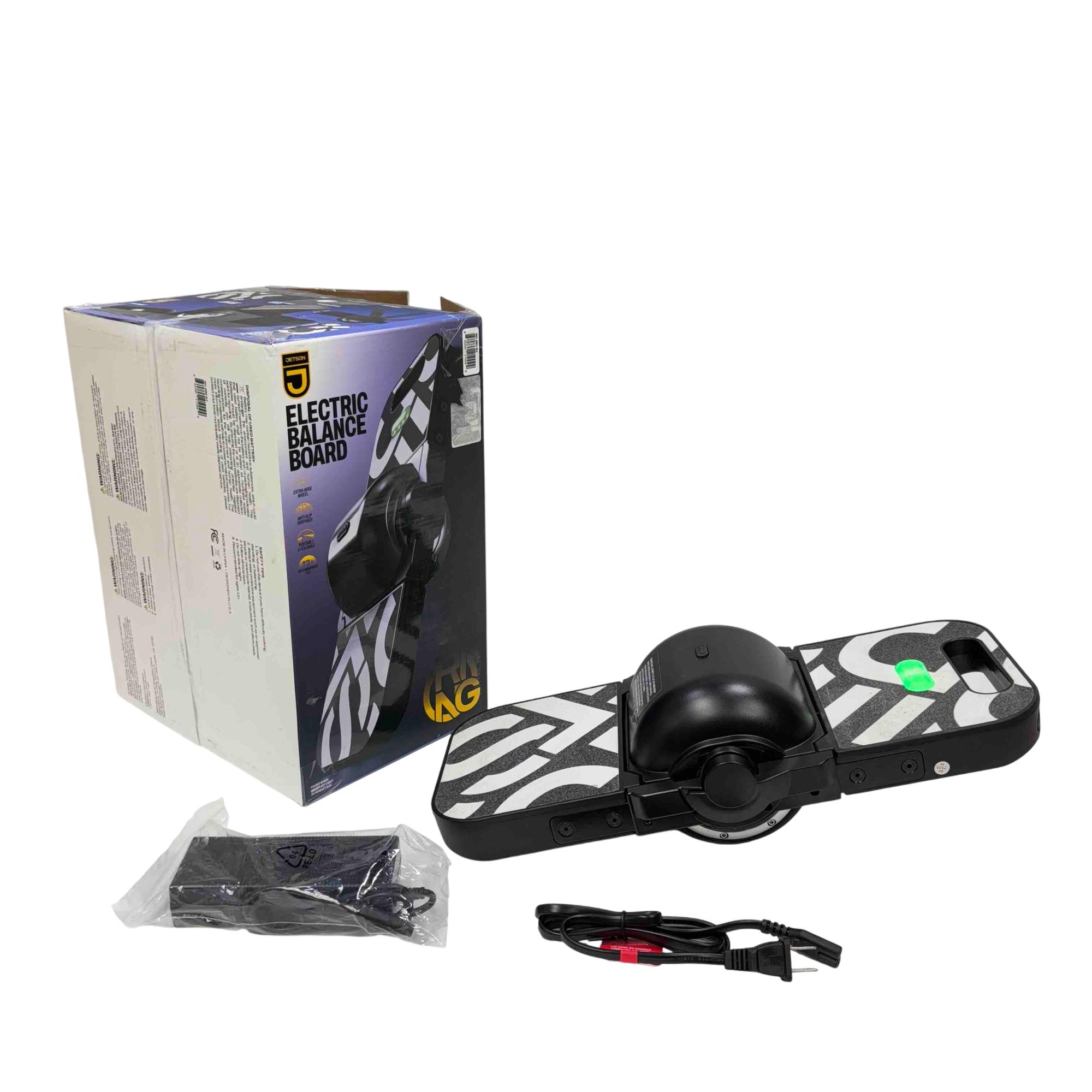 Experience smooth rides and futuristic style with the Jetson AG Electric Balance Board JRINGBLK. This sleek, black and white hoverboard features a green light indicator for added style and safety, making it perfect for adventurous riders. With its advanced safety features, youll enjoy a stable and exhilarating ride while turning heads.