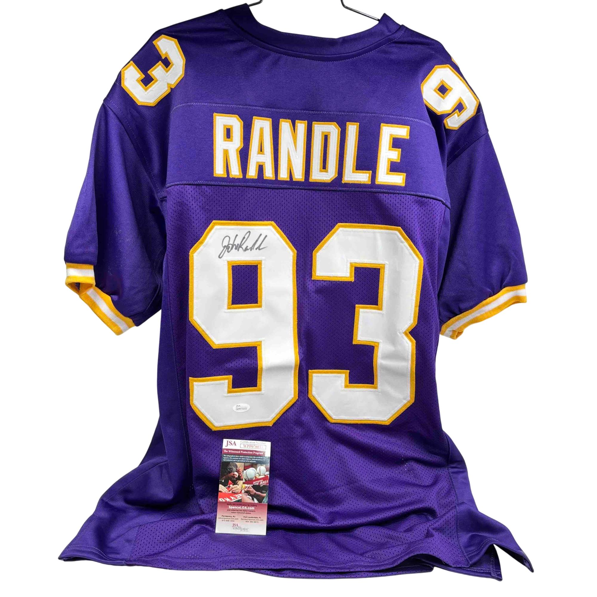Celebrate NFL history with this authentic Minnesota Vikings jersey hand-signed by Hall of Famer John Randle, featuring his iconic number 93. Complete with a JSA Witnessed Protection Program Certificate of Authenticity, this jersey is a must-have collectible for true Vikings fans or football memorabilia enthusiasts. Show off your team pride and relive legends of the game with this light-use, display-ready piece.