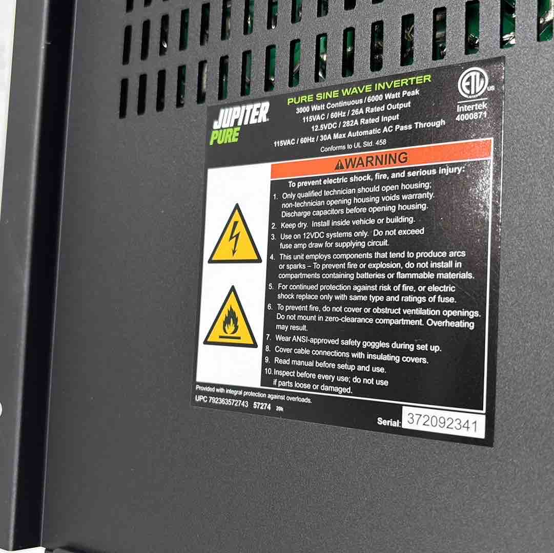 Unlock seamless power conversion with the Jupiter Pure 3000W Pure Sine Wave Power Inverter. Engineered for optimal performance, this inverter provides 3000 watts of continuous power and peaks at 6000 watts, ensuring reliable energy for your devices. Its robust design includes a remote control for convenience and multiple safety features to protect against overload.