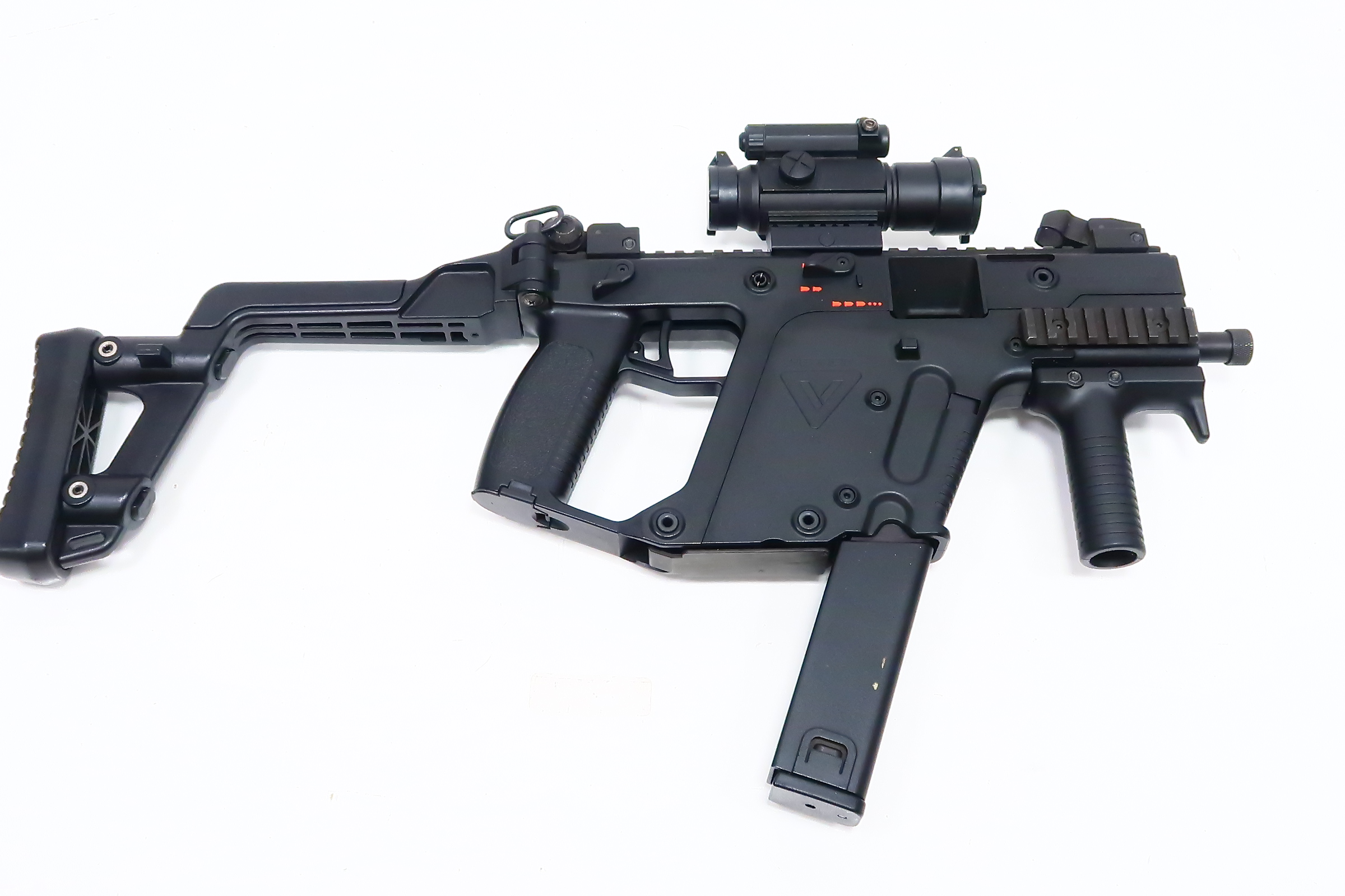 Probably one of the most iconic and incredible gas blowback SMGs ever made in Airsoft, the Airsoft KRISS VECTOR GBB SMG was only available for a short time before it was discontinued due to a legal dispute between KRISS and the factory. As it stands, this exact same model, which replicates the same innovative cycling technology as the real Vector, will never be made again. Full-size removable gas magazine, impressive cycling speed, and recoil impulse, with all the behavior of the real gun.