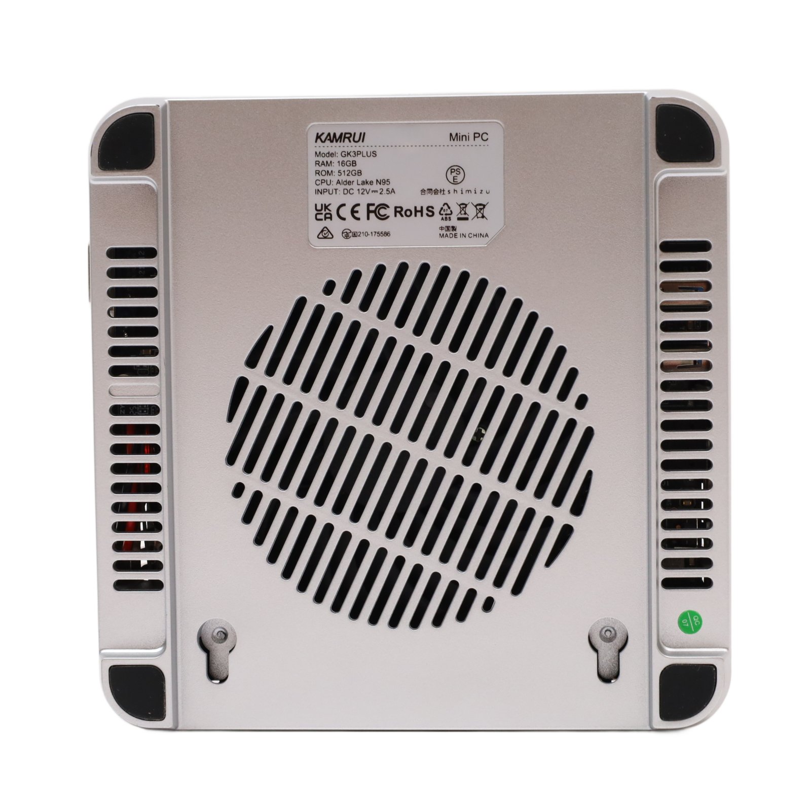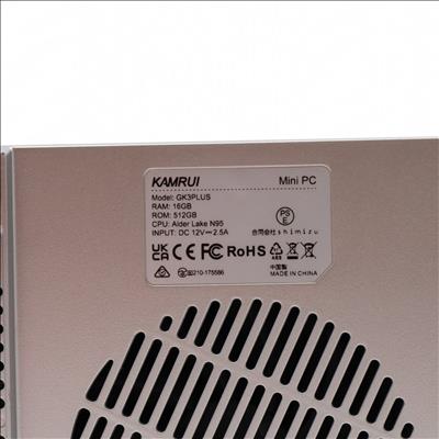 This mini PC features an Intel N95 processor with a 1.70 GHz base clock speed and four cores, paired with 16GB of DDR4 memory operating at 2667 MT/s and a 512GB SSD. It supports 4K display output through one HDMI 2.0 port, one DisplayPort 1.4 port, and one USB 3.2 Gen2 Type-C port, and includes two USB 3.2 Gen2 Type-A ports. The system is equipped with Intel UHD Graphics, Wi-Fi 5, and Bluetooth 4.2.