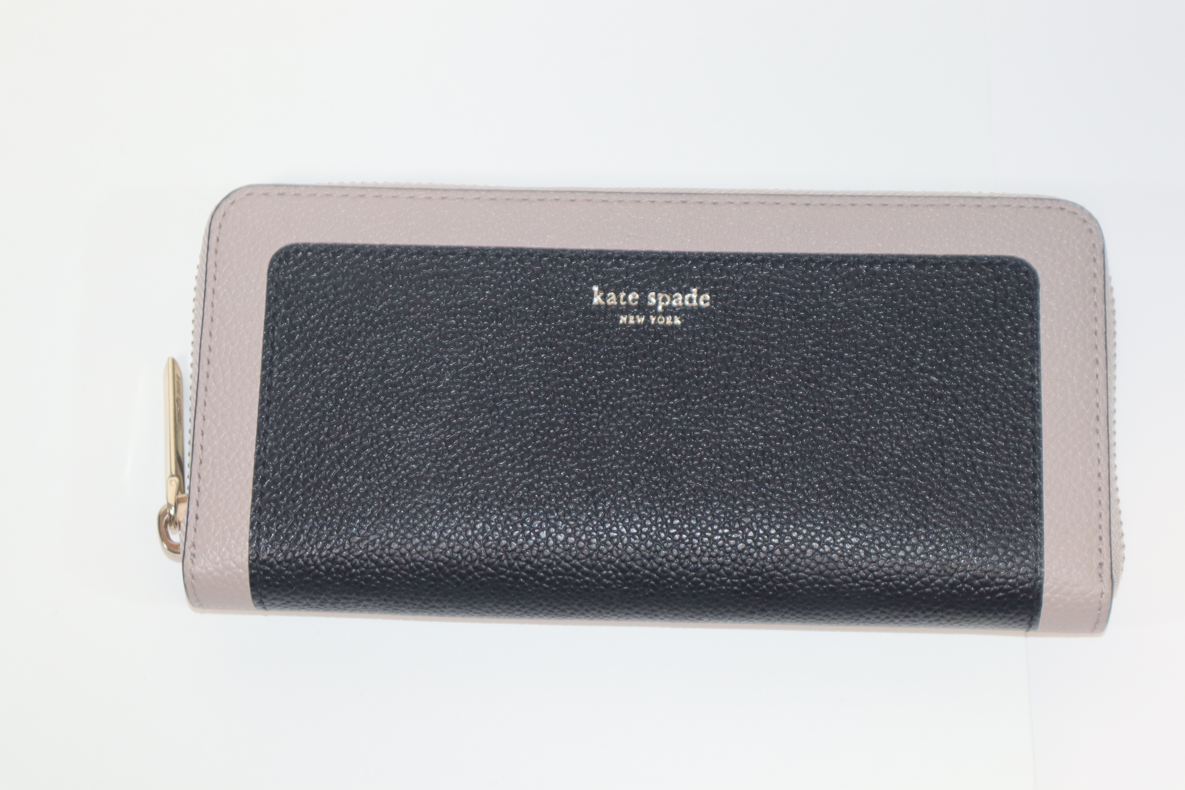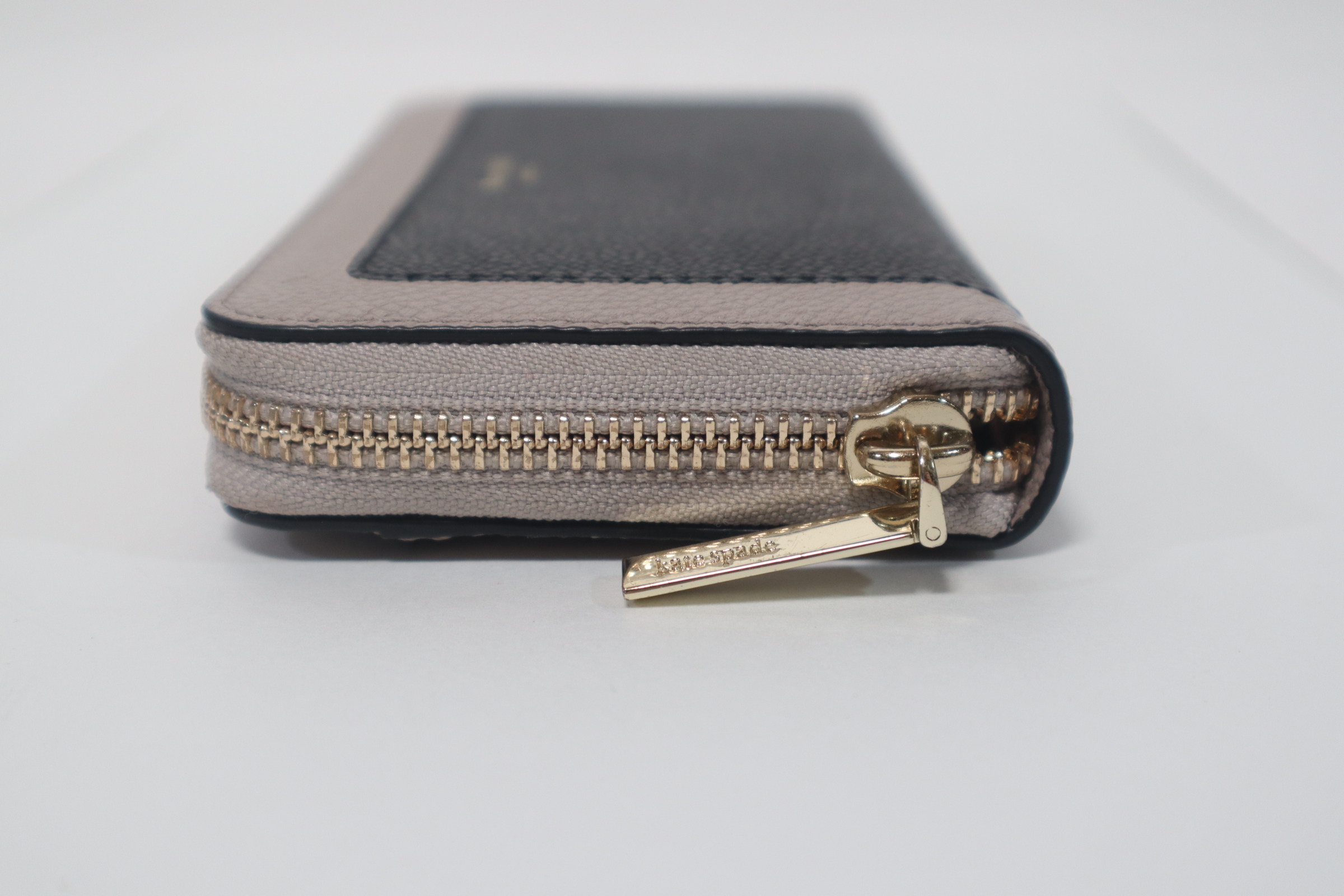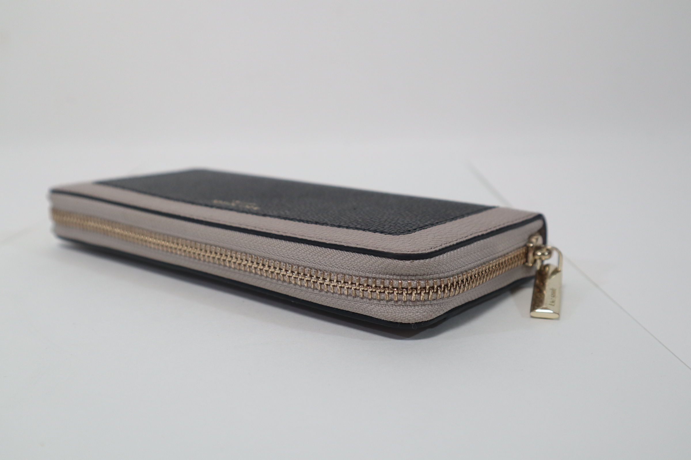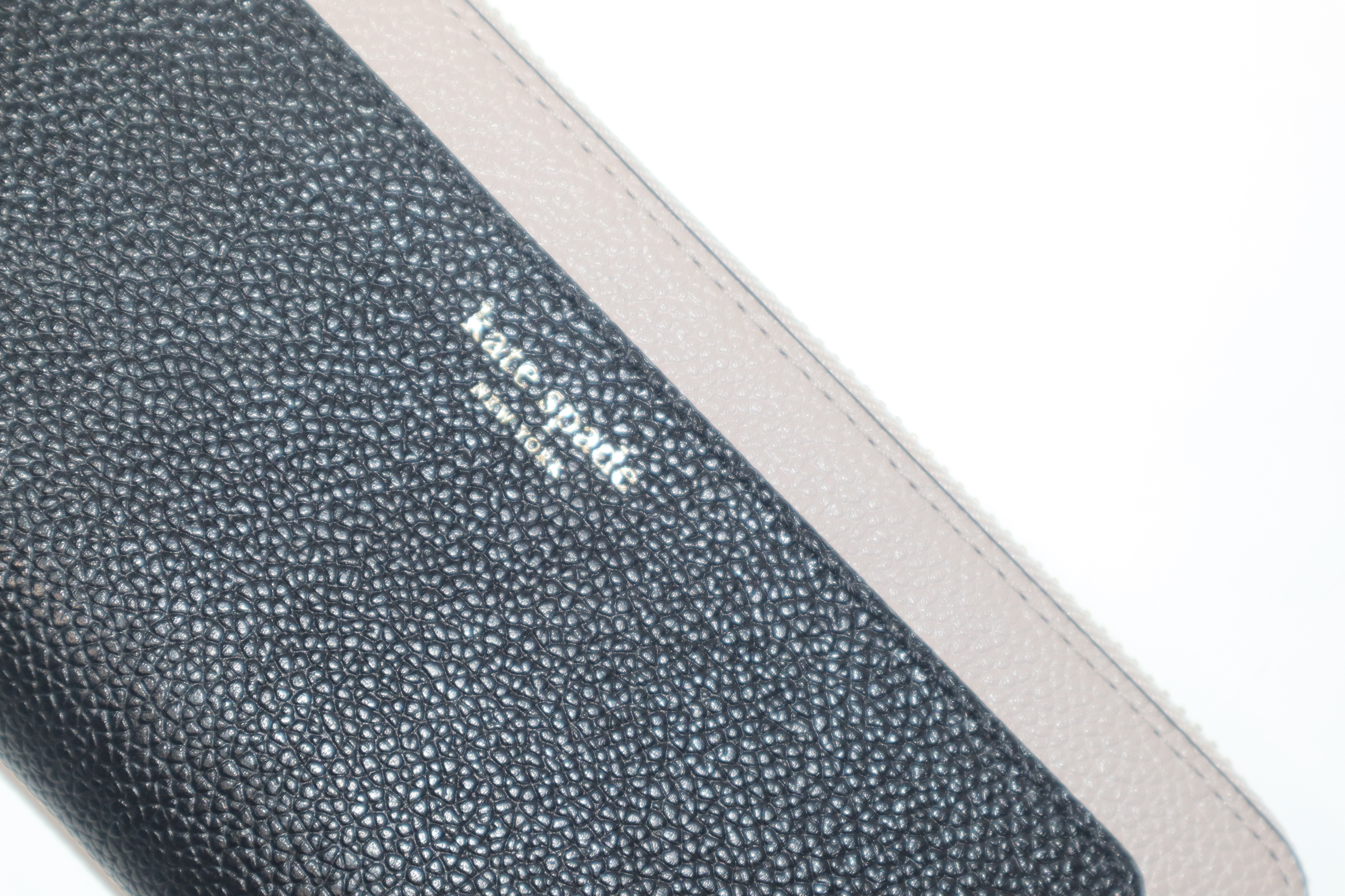 Kate Spade S338 Black & Cream Woman's Leather Bifold Wallet / Zipper Closure