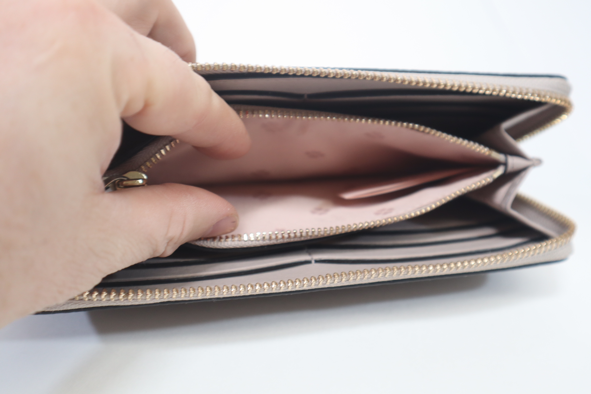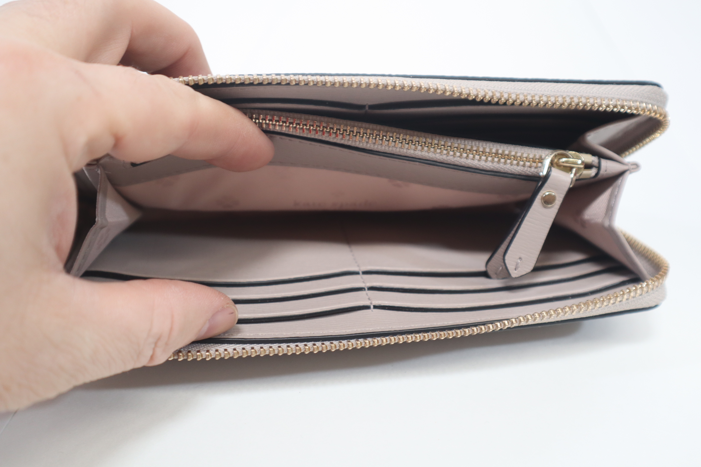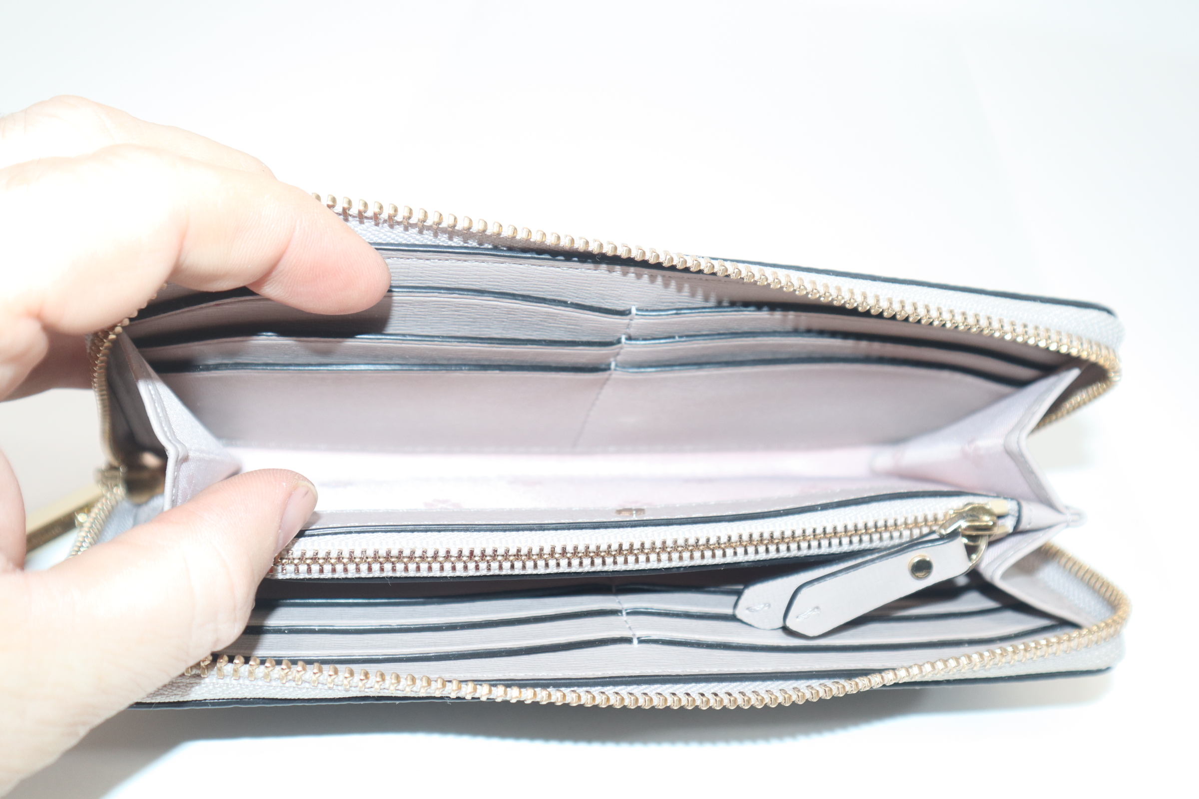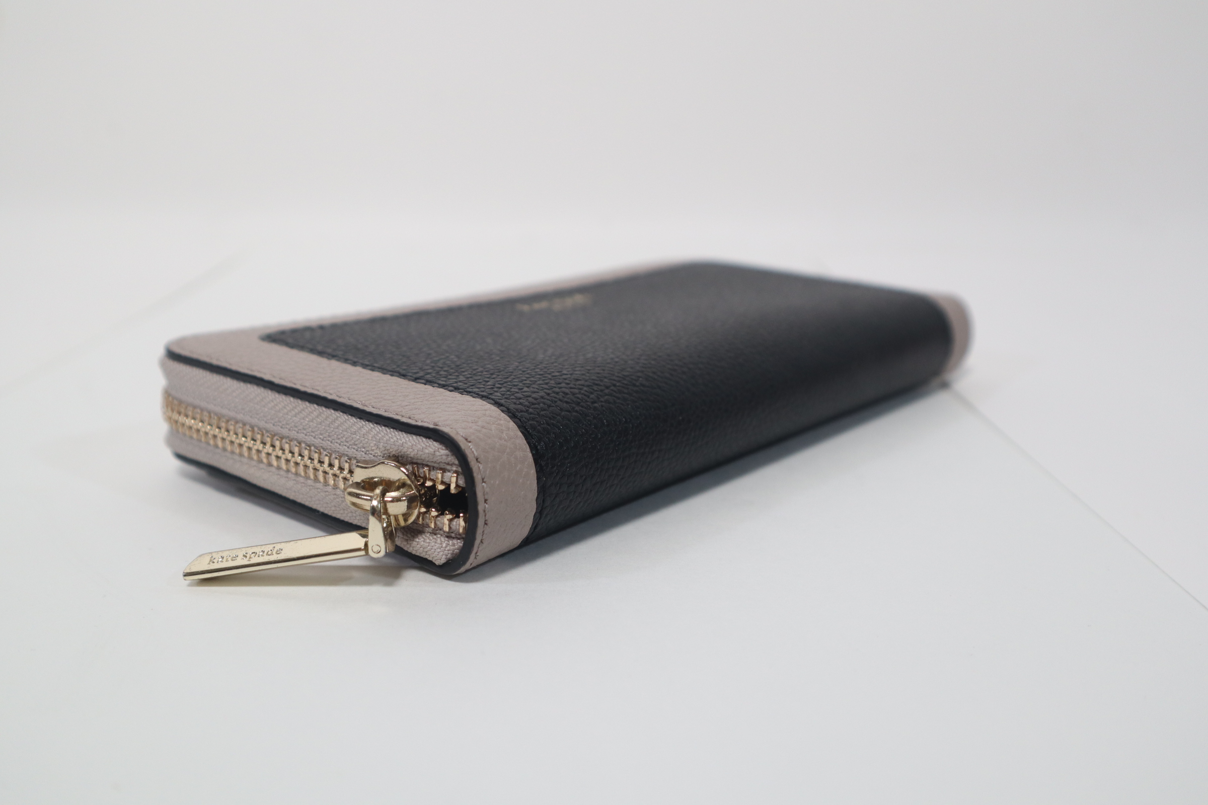 Kate Spade S338 Black & Cream Woman's Leather Bifold Wallet / Zipper Closure