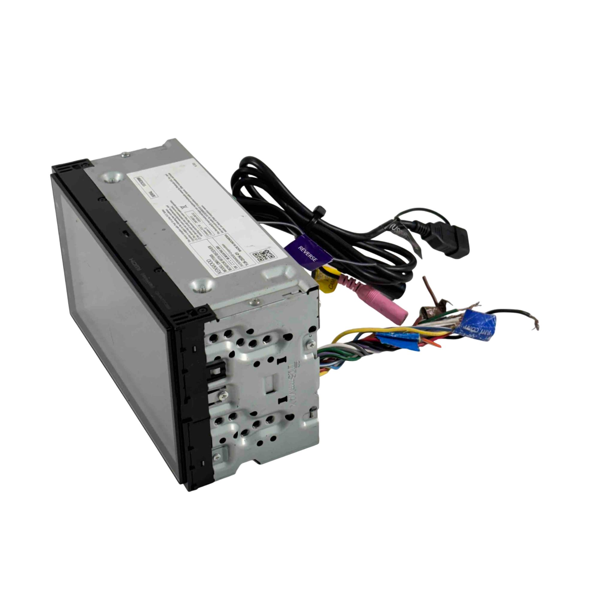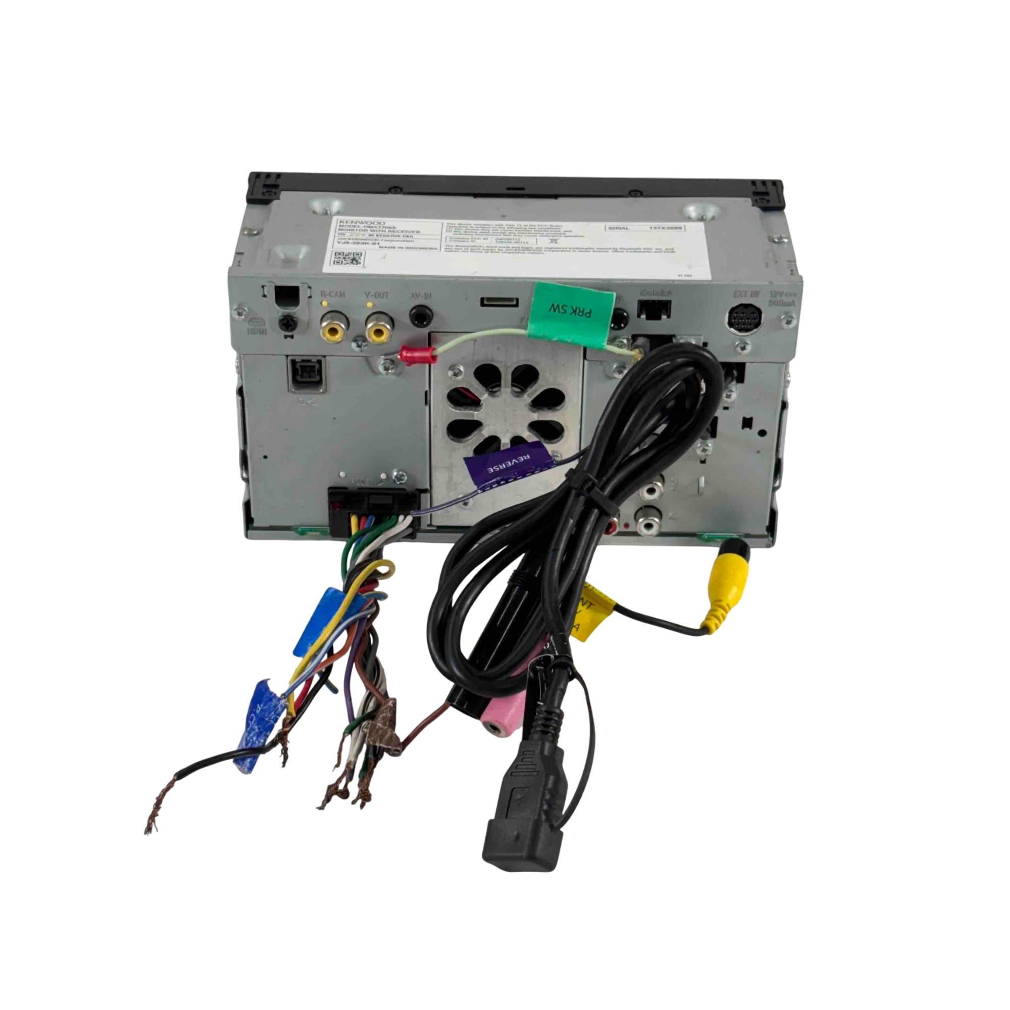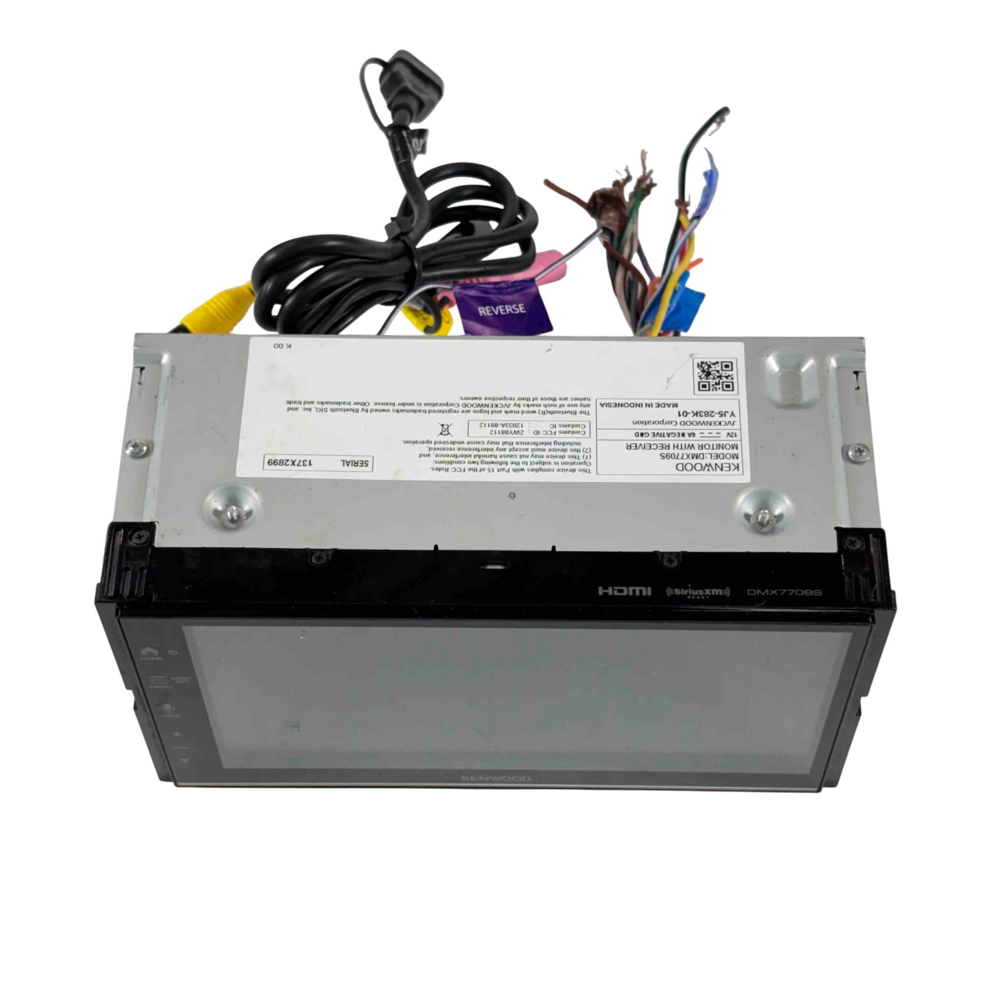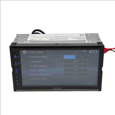 The Kenwood DMX7709S Double-DIN Touchscreen Car Audio Digital Multimedia Receiver serves as a versatile digital multimedia player with an AM/FM tuner, supporting playback of media loaded with MP3, WMA, and AAC music files, along with high-res WAV and FLAC formats. It features a 6.75-inch capacitive touchscreen display, Waze compatibility with Apple CarPlay or Android Auto, electronic viewing angle display adjustment, front-panel controls with variable color illumination, and fits double-DIN dash openings.