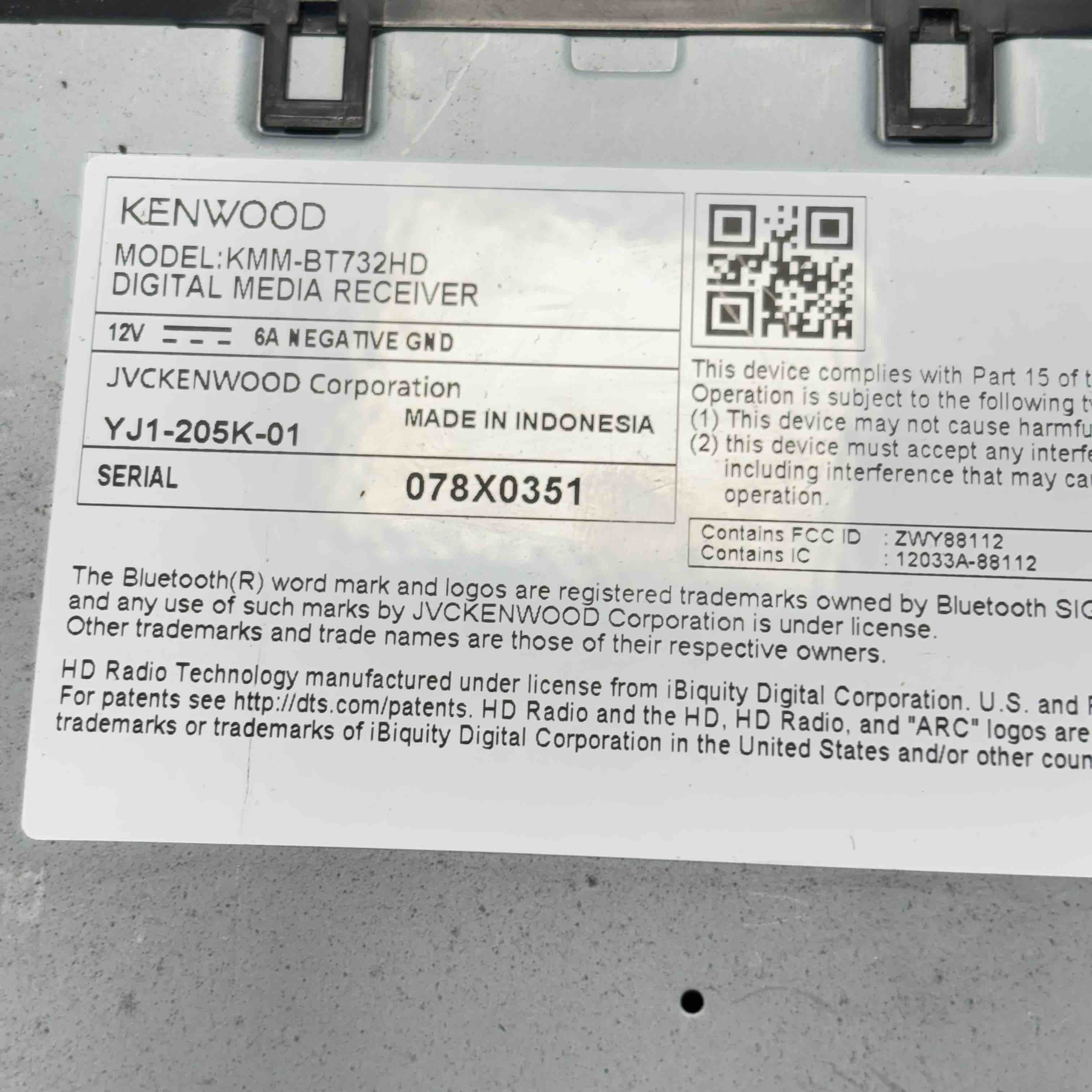 The Kenwood KMM-BT732HD Digital Media Receiver is a versatile car audio system designed for high-quality digital media playback. This model supports various audio formats including HD Radio, MP3, WMA, and offers multiple connectivity options with front and rear inputs. Its compact design features an intuitive interface and robust wiring connections suitable for seamless integration into most vehicle dashboards.