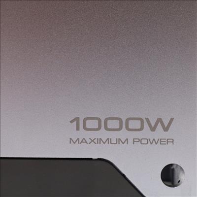 A monoblock car audio amplifier designed for subwoofer systems. This Class D unit delivers 300 watts RMS at 4 ohms and 500 watts RMS at 2 ohms, with a peak power output of 1000 watts. Audio control features include a variable low-pass filter ranging from 50 to 200 Hz, a bass boost setting of 0 to 18 dB at 40 Hz, and an infrasonic filter. The amplifier accepts speaker-level inputs and operates with two 30A fuses.