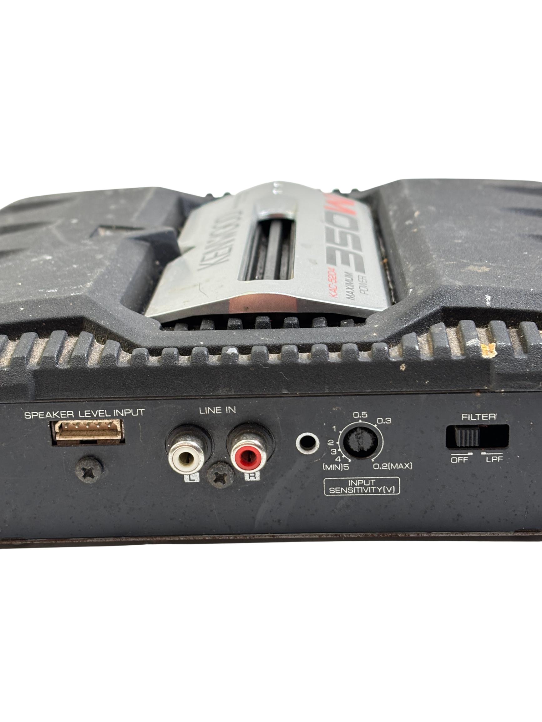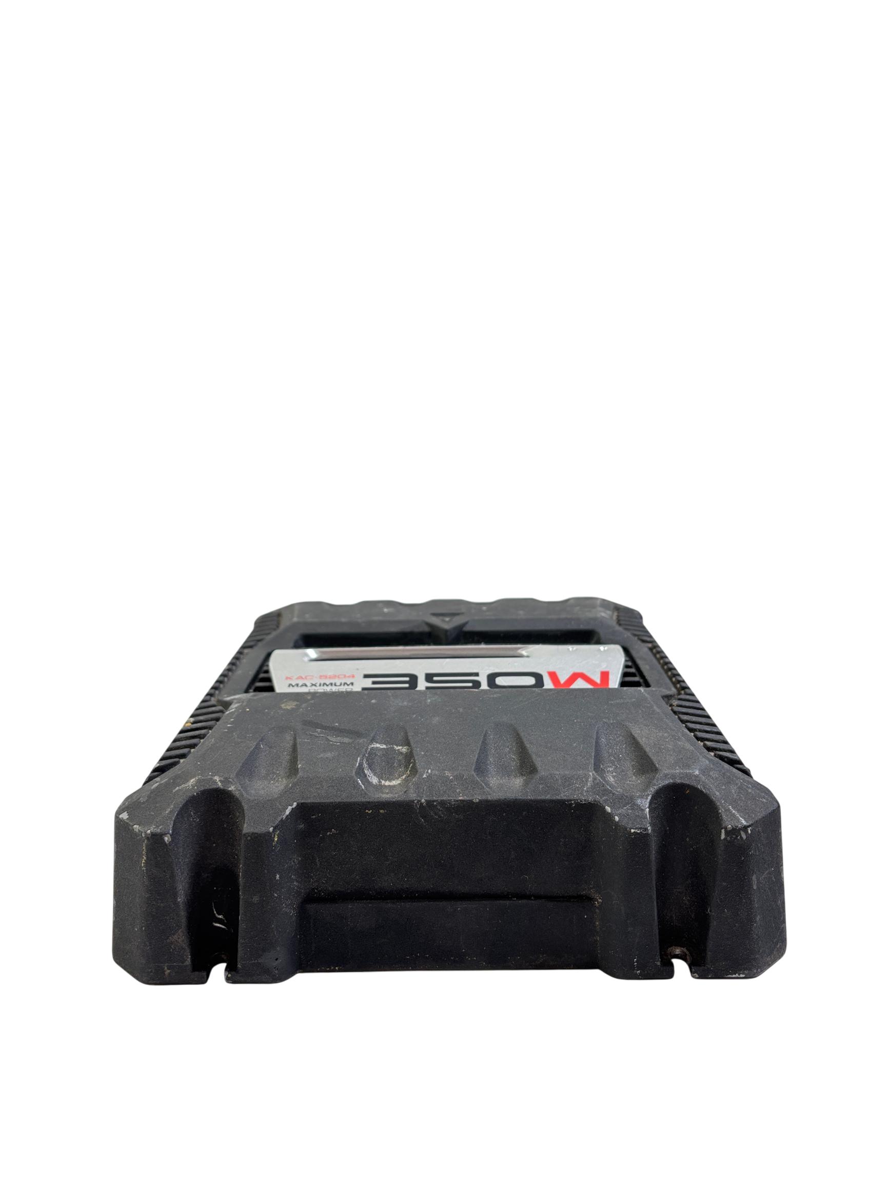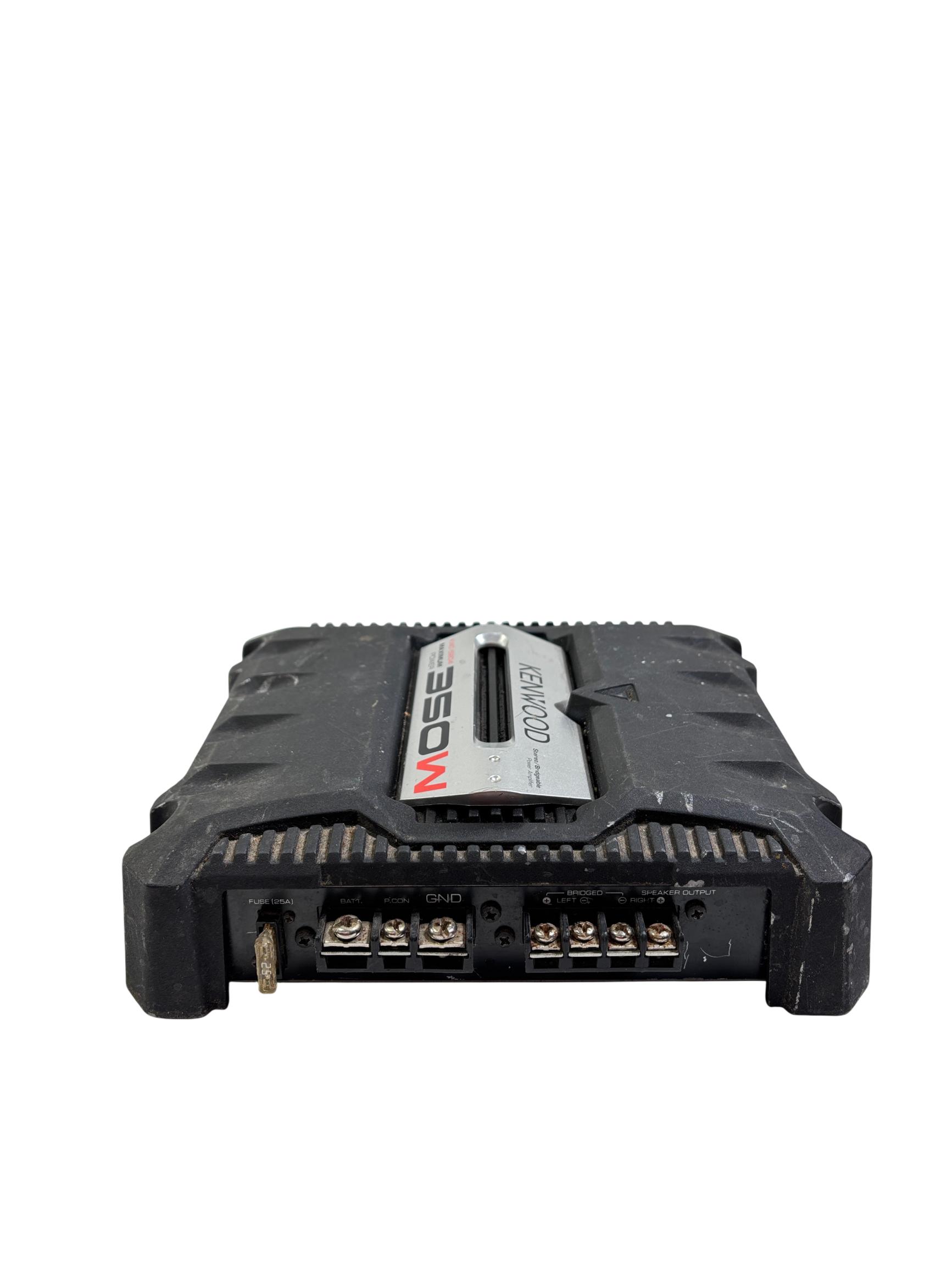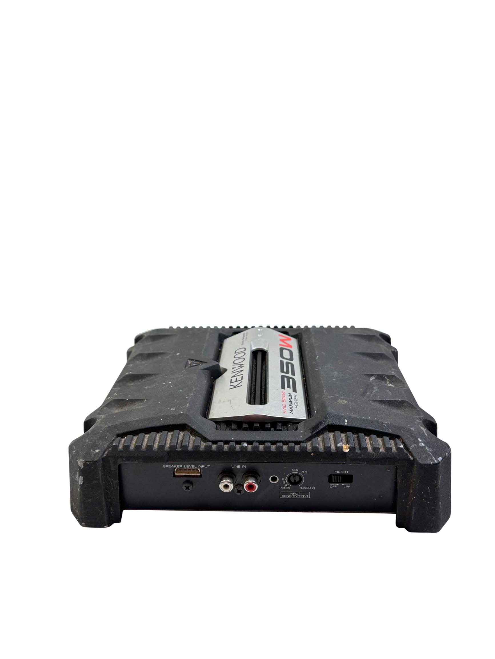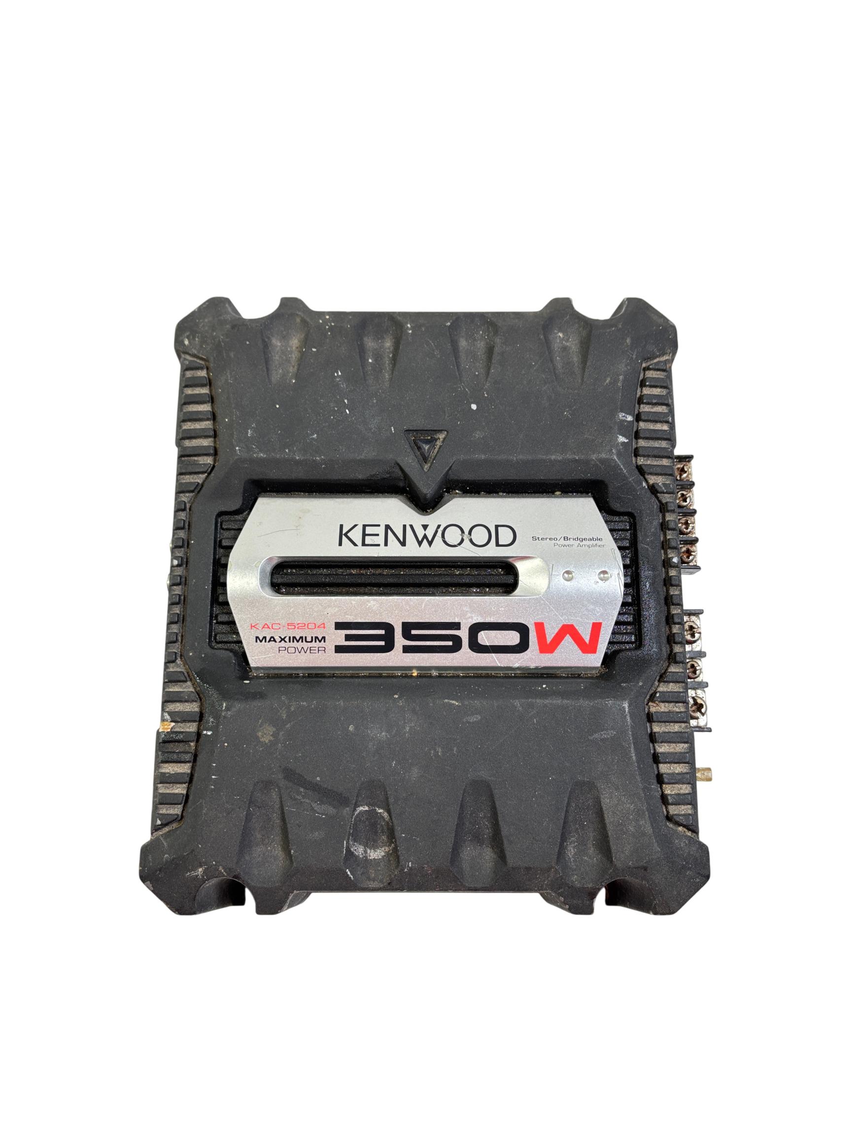 The Kenwood KAC-5204 350W Stereo/Bridgeable 2-Channel Car Power Amplifier delivers powerful and clear audio performance ideal for car audio systems. It features a compact black design with durable metal construction and multiple speaker output options, supporting stereo or bridged configurations for versatile installation. Engineered to enhance sound quality with a maximum output of 350 watts, this amplifier is suitable for driving a variety of speakers in automotive environments.
