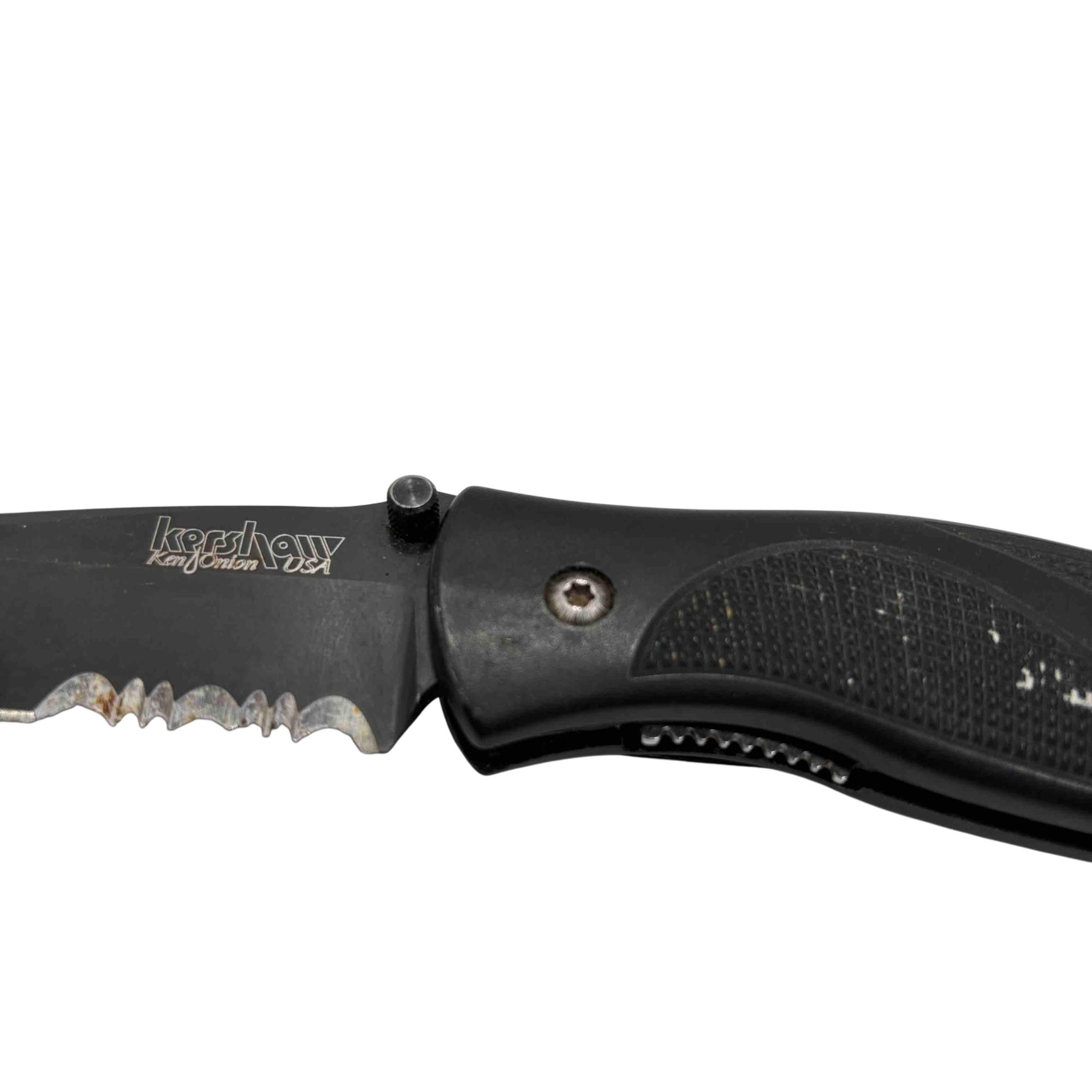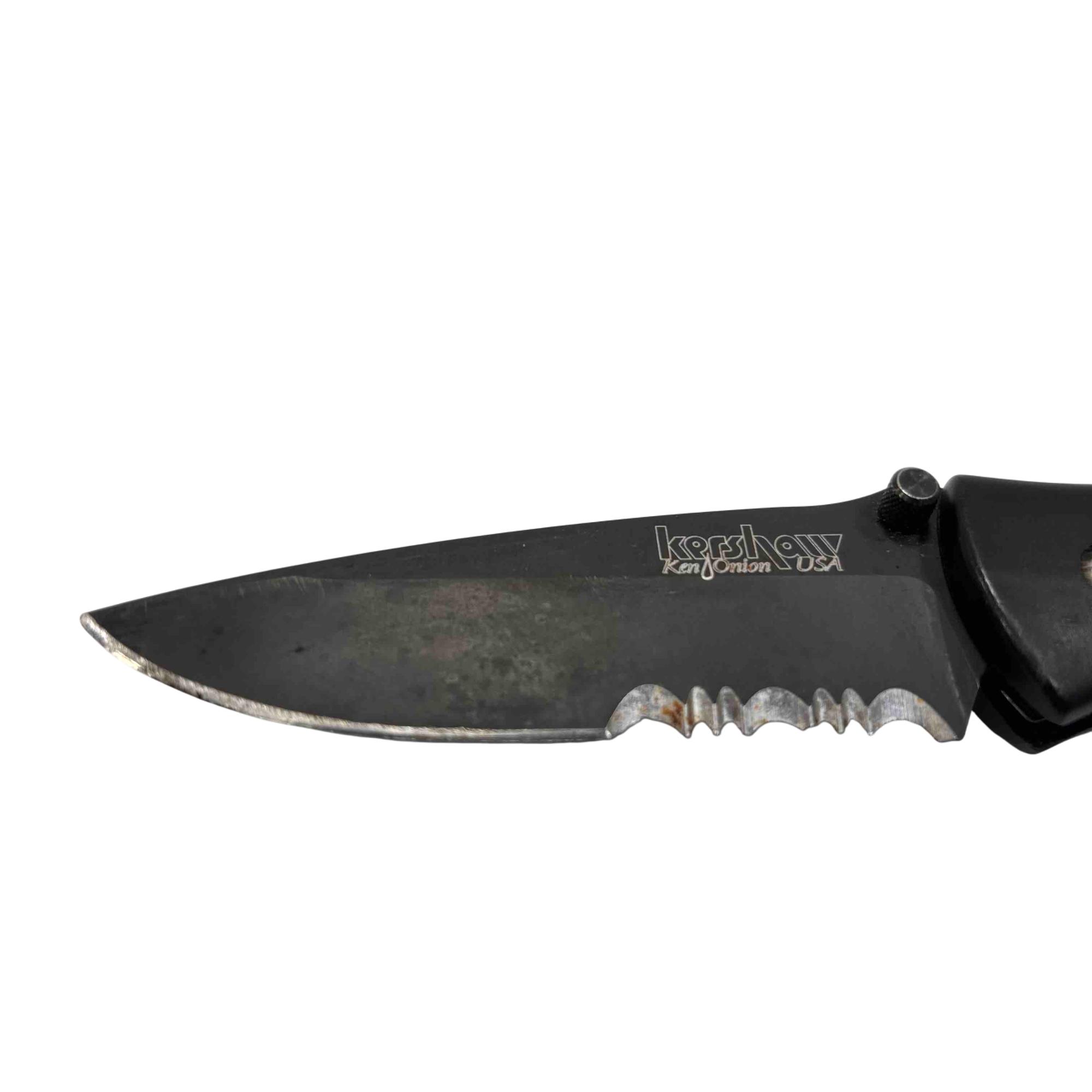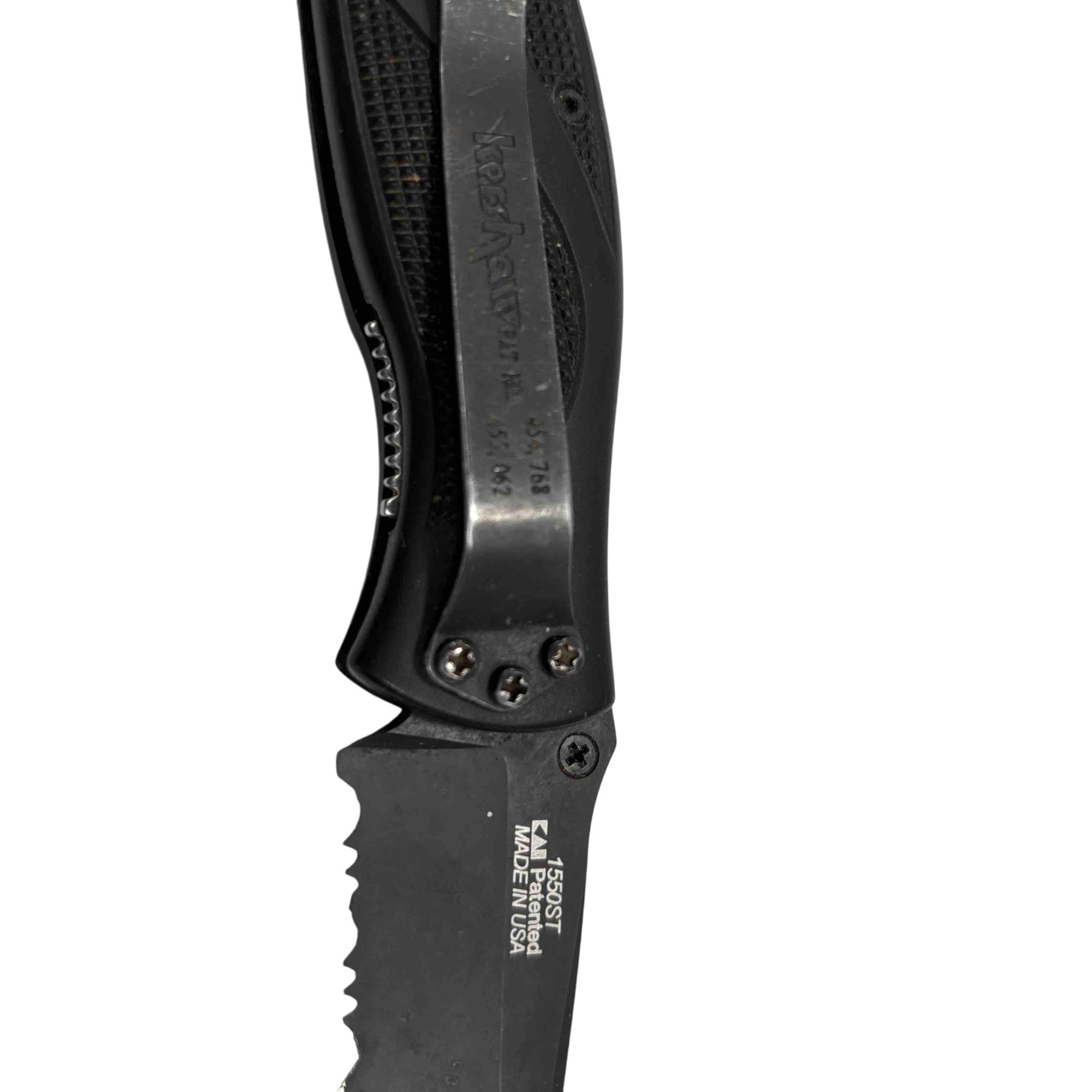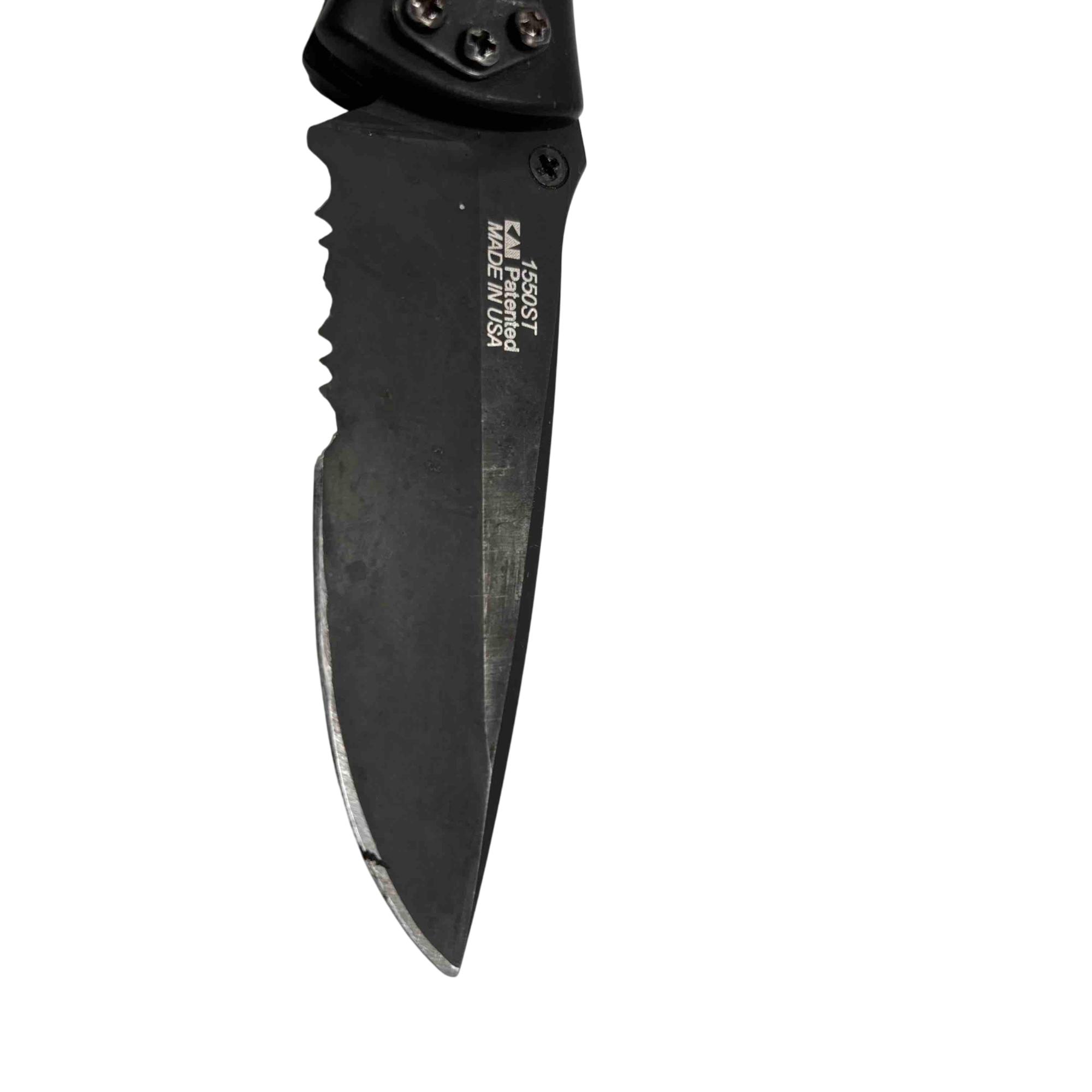 Experience precision and reliability with the Kershaw 1550ST Ken Onion Folding Pocket Knife. Designed with a sleek black handle and featuring a partially serrated blade, this knife is perfect for everyday carry and versatile use. Made in the USA, it combines functionality and durability in a compact form.