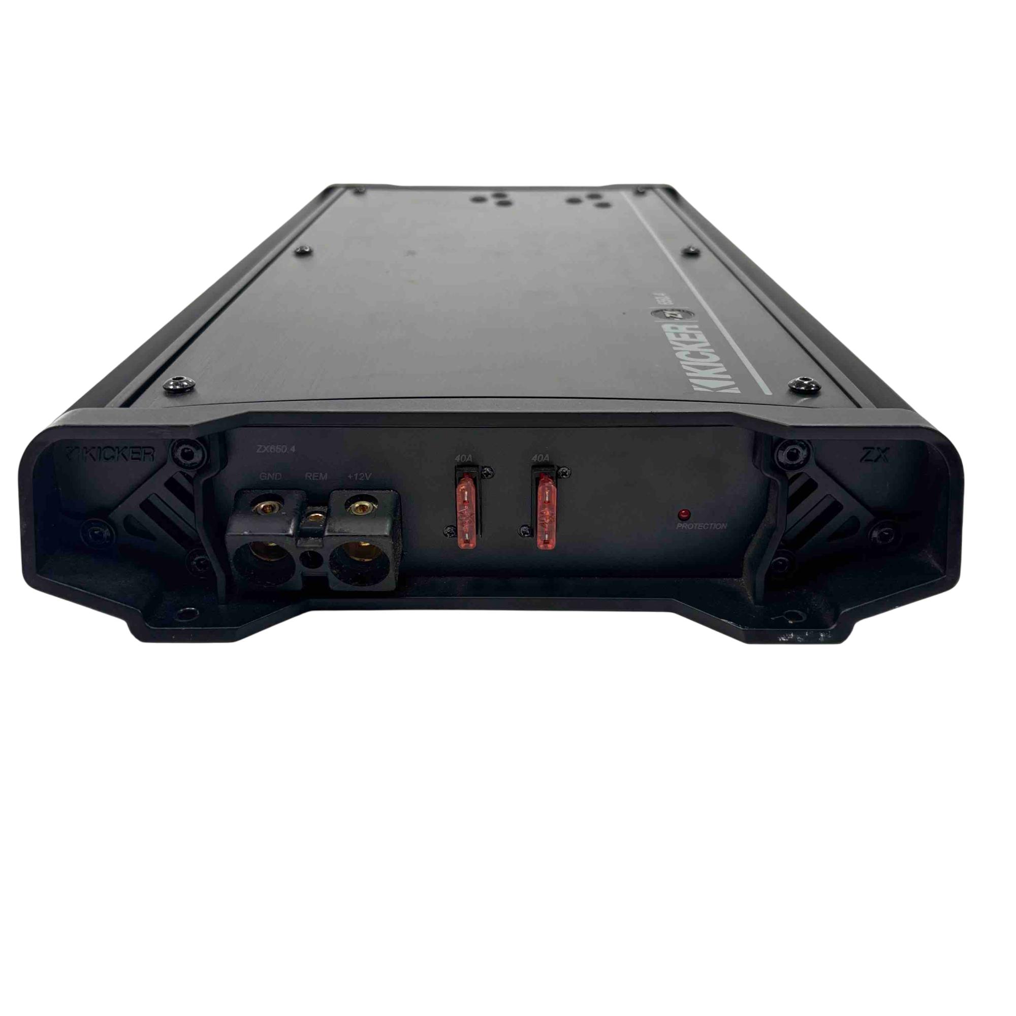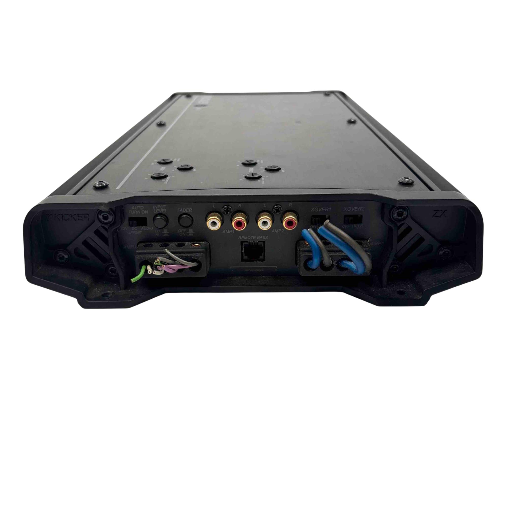 Unleash powerful sound with the Kicker ZX650.4 4-Channel Car Audio Amplifier. Engineered for car audio enthusiasts, this sleek black unit delivers exceptional audio clarity and impressive bass performance. Perfect for upgrading your vehicles sound system, its your ticket to an immersive listening experience on the road.