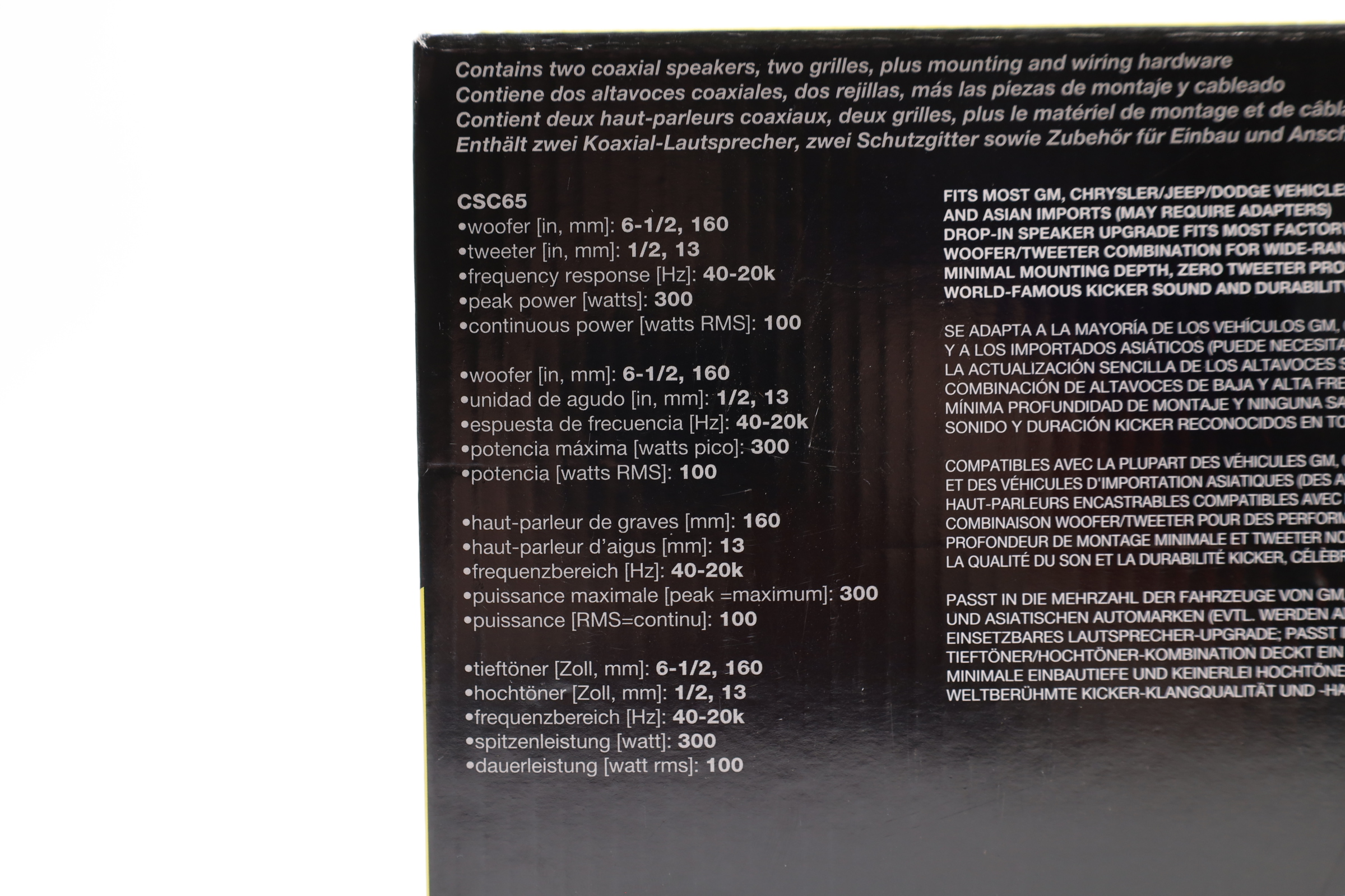 Car audio speakers that feature a polypropylene woofer and a 1/2" PEI balanced dome tweeter, delivering a robust and clear sound. With a polyester foam surround for durability, these speakers can handle up to 100 watts RMS and have a frequency response of 40-20,000 Hz. They are versatile enough to be powered by either a factory radio or an aftermarket stereo, but perform exceptionally well when paired with an external amplifier. The set also includes grilles and boasts a sensitivity of 90 dB.