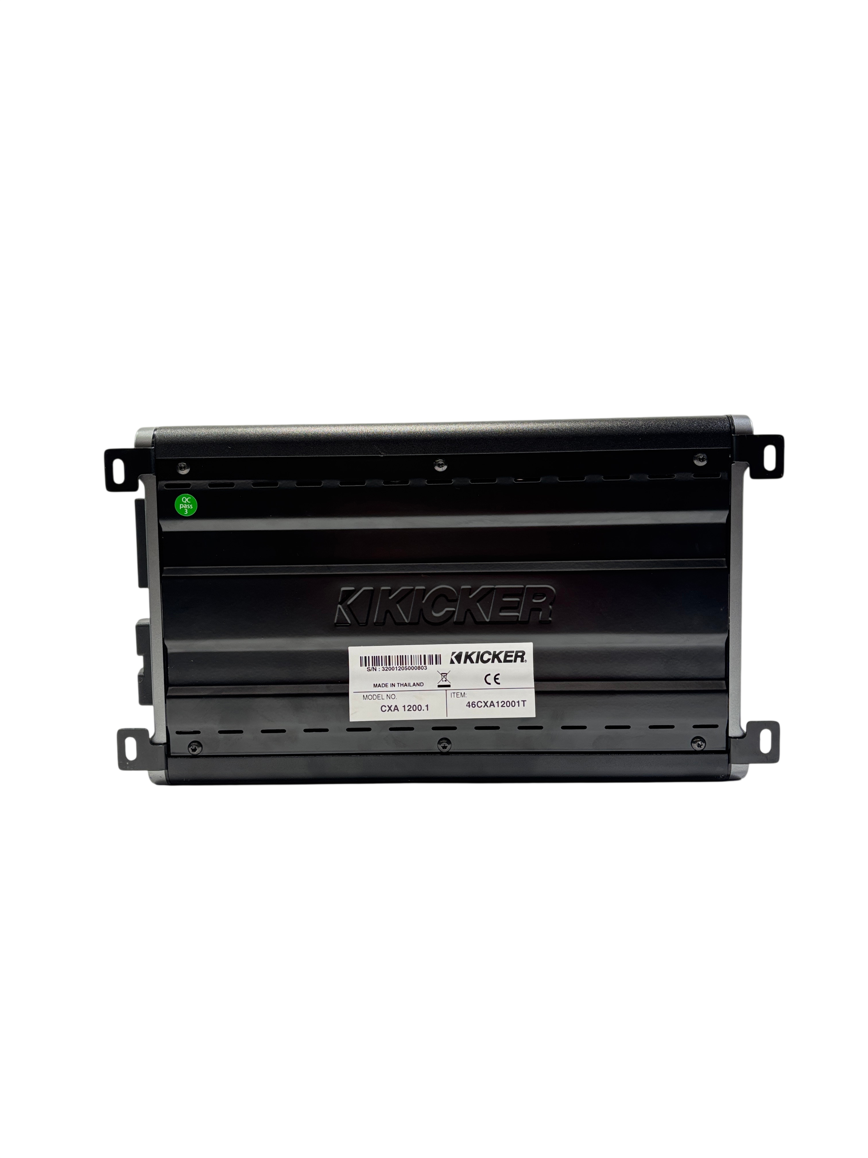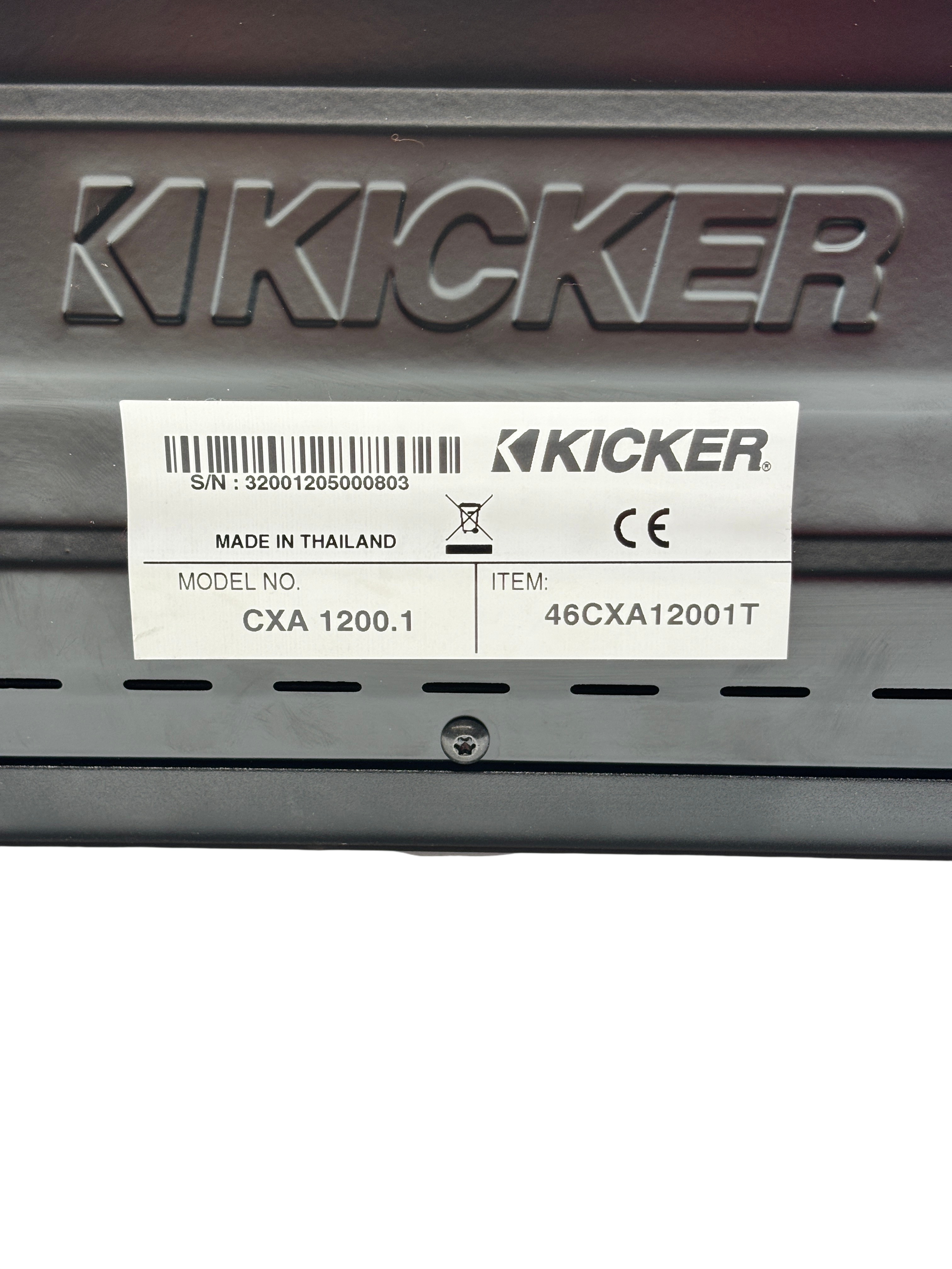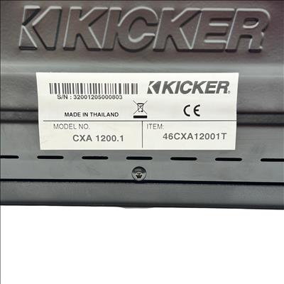 The Kicker CXA1200.1 Car Audio Mono Amplifier delivers a powerful 1200-watt output with efficient Class D technology, making it ideal for driving subwoofers or single-channel audio setups. This amplifier features a sleek black and silver design, compact enough to fit in tight spaces while providing robust sound performance. Manufactured in Thailand, the CXA1200.1 model is engineered for durability and high efficiency, perfect for car audio enthusiasts seeking deep bass and clean amplification. Its mono channel configuration ensures focused power delivery for enhanced low-frequency sound reproduction.