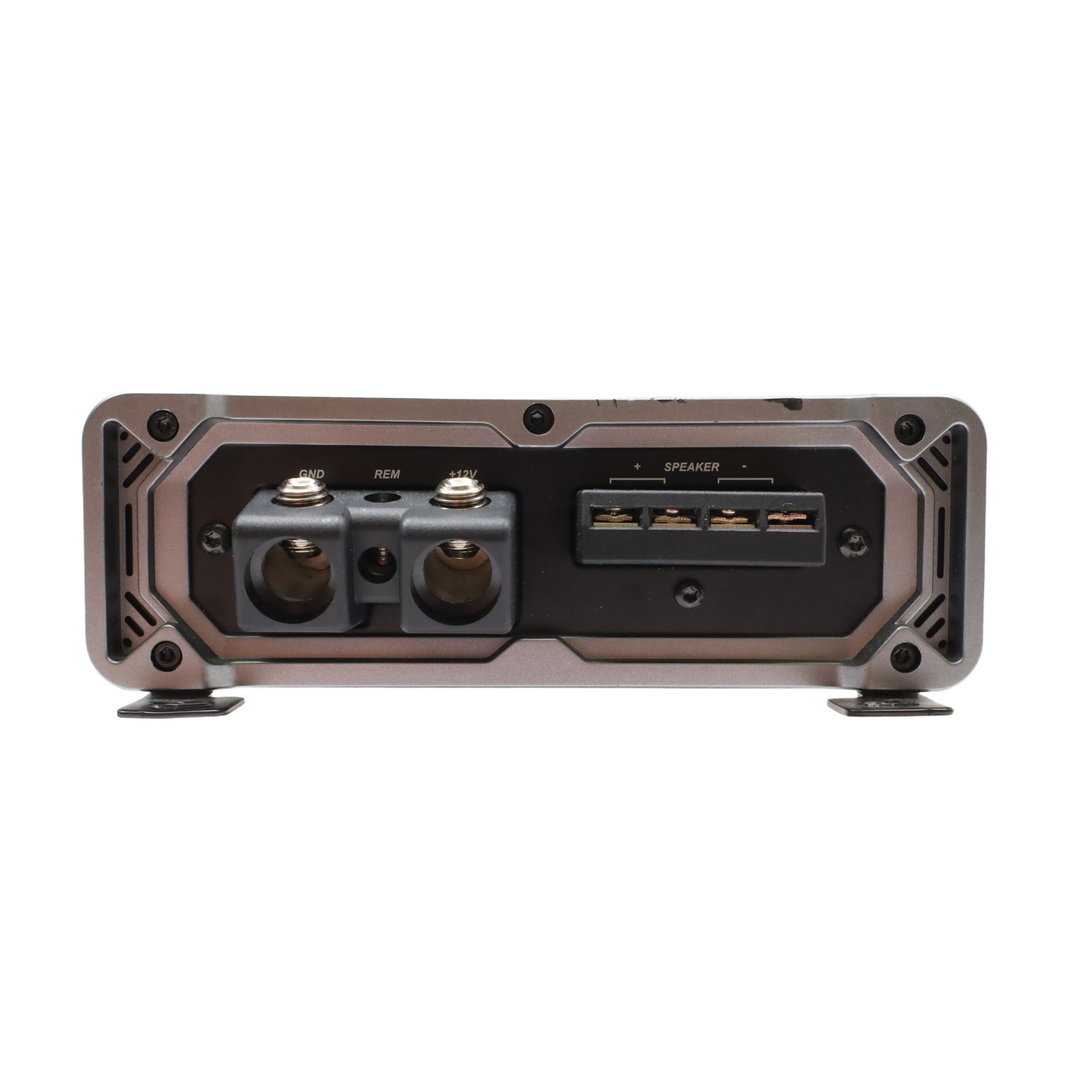 A high-output monoblock car audio amplifier designed for subwoofer applications, delivering 900 watts RMS at 4 ohms, 1800 watts RMS at 2 ohms, and 1800 watts RMS at 1 ohm. Utilizing Class D amplifier technology, it offers efficient power delivery with a frequency response range of 25-200 Hz. The unit includes a variable low-pass filter adjustable from 50-200 Hz (12 dB/octave), a fixed subsonic filter at 25 Hz (24 dB/octave), and a bass boost feature adjustable from 0-6 dB at 40 Hz. It supports both preamp inputs and outputs, as well as speaker-level inputs (requiring speaker wire to RCA adapters). An optional remote bass level controller can be added for external adjustments, and a 3-second delay is included for turn-on and turn-off functions.