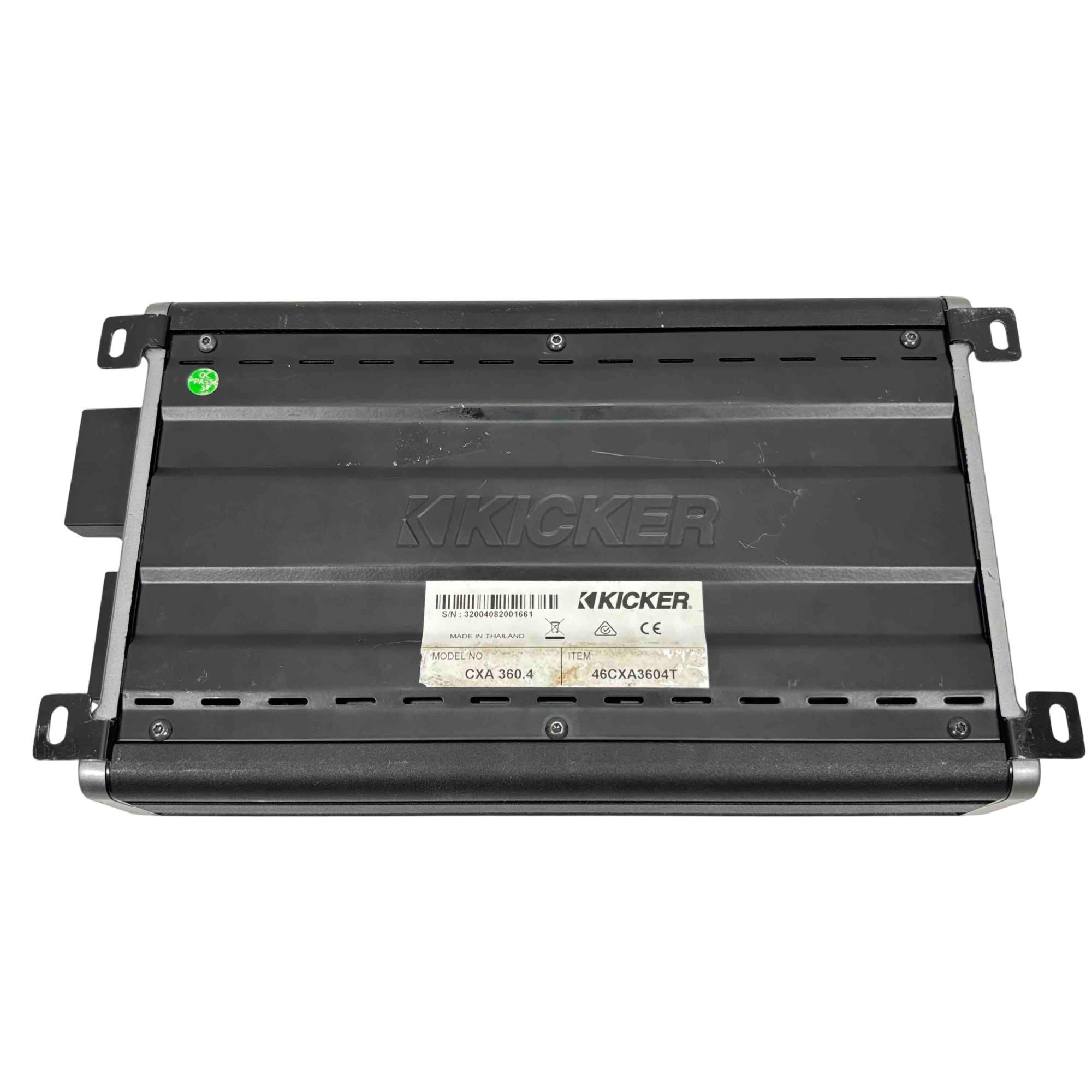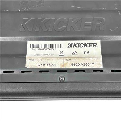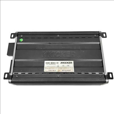 Kicker CXA360.4 4-Channel Car Audio Amplifier delivers powerful and clear sound output designed for automotive audio systems. Featuring a compact black rectangular design with white labeling, it provides high-quality amplification for up to four speakers with reliable performance and ease of installation.
