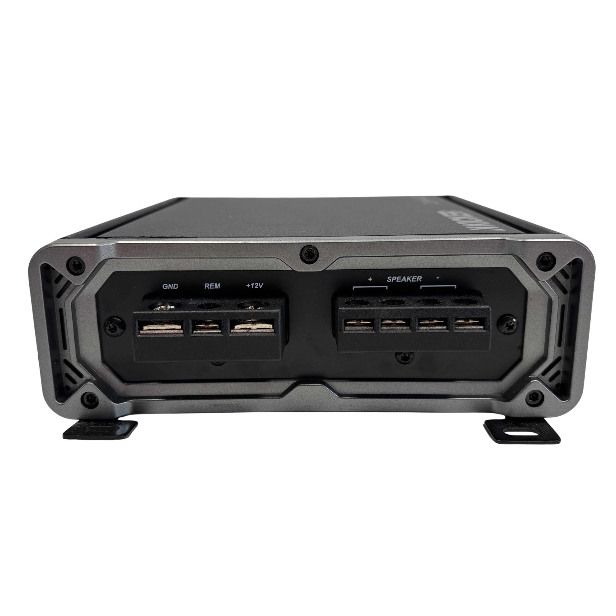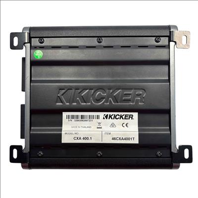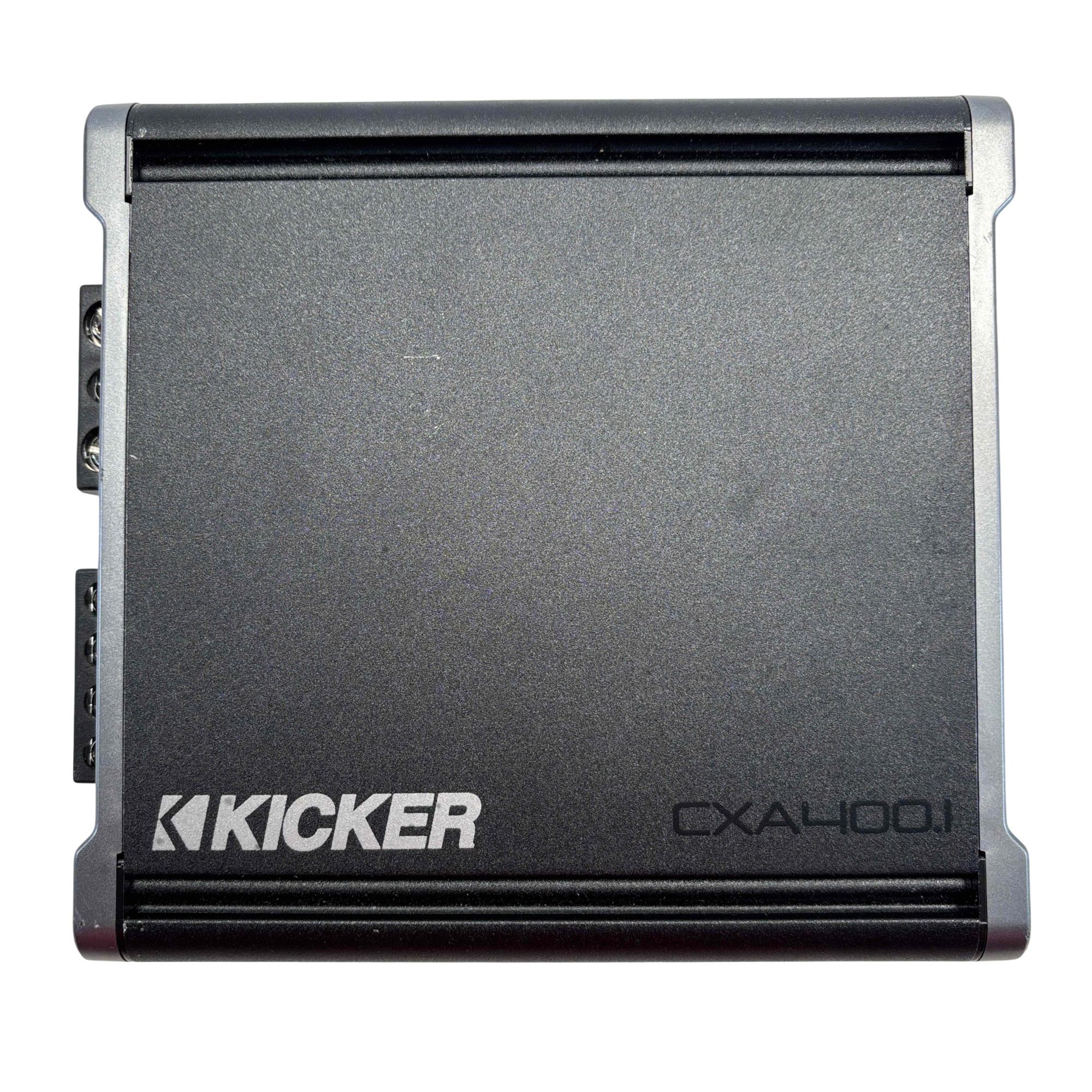 The Kicker CXA400.1 Mono Car Subwoofer Amplifier delivers a powerful 400-watt output designed to drive subwoofers with clarity and efficiency. Featuring a compact black design with silver accents, this amplifier provides stable mono channel performance with multiple connectivity options for seamless integration into car audio systems.