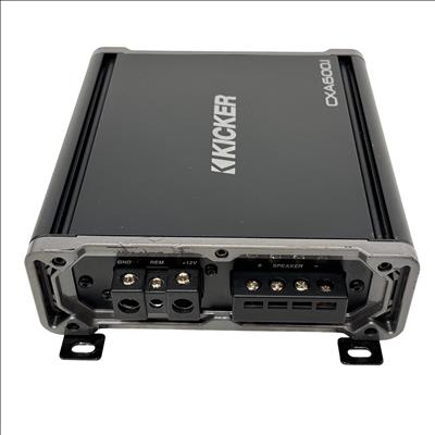 The Kicker CXA600.1 is a powerful 600 Watt mono car audio amplifier designed to deliver deep, clean bass to your vehicles sound system. Operating at 12 volts, this compact Class D amplifier supports 2 or 4 ohm impedance loads and features a durable black metal chassis with silver trim. Ideal for driving subwoofers, the CXA600.1 offers remote bass control compatibility and a frequency response tailored for low-frequency reproduction. Its compact size and robust build make it a reliable choice for enhancing your car audio experience.