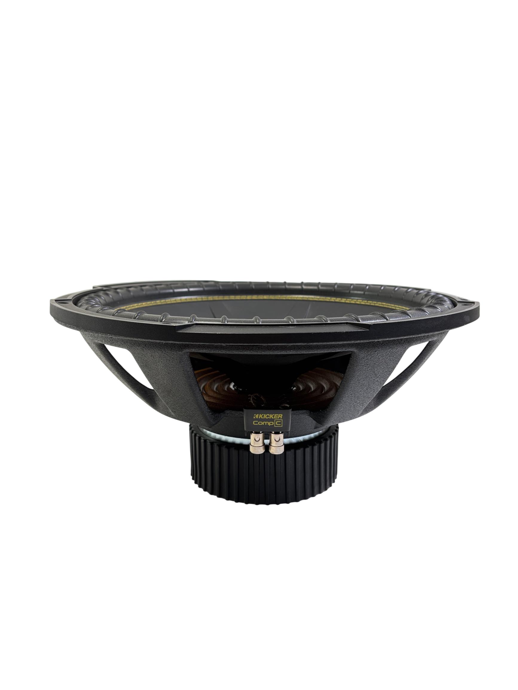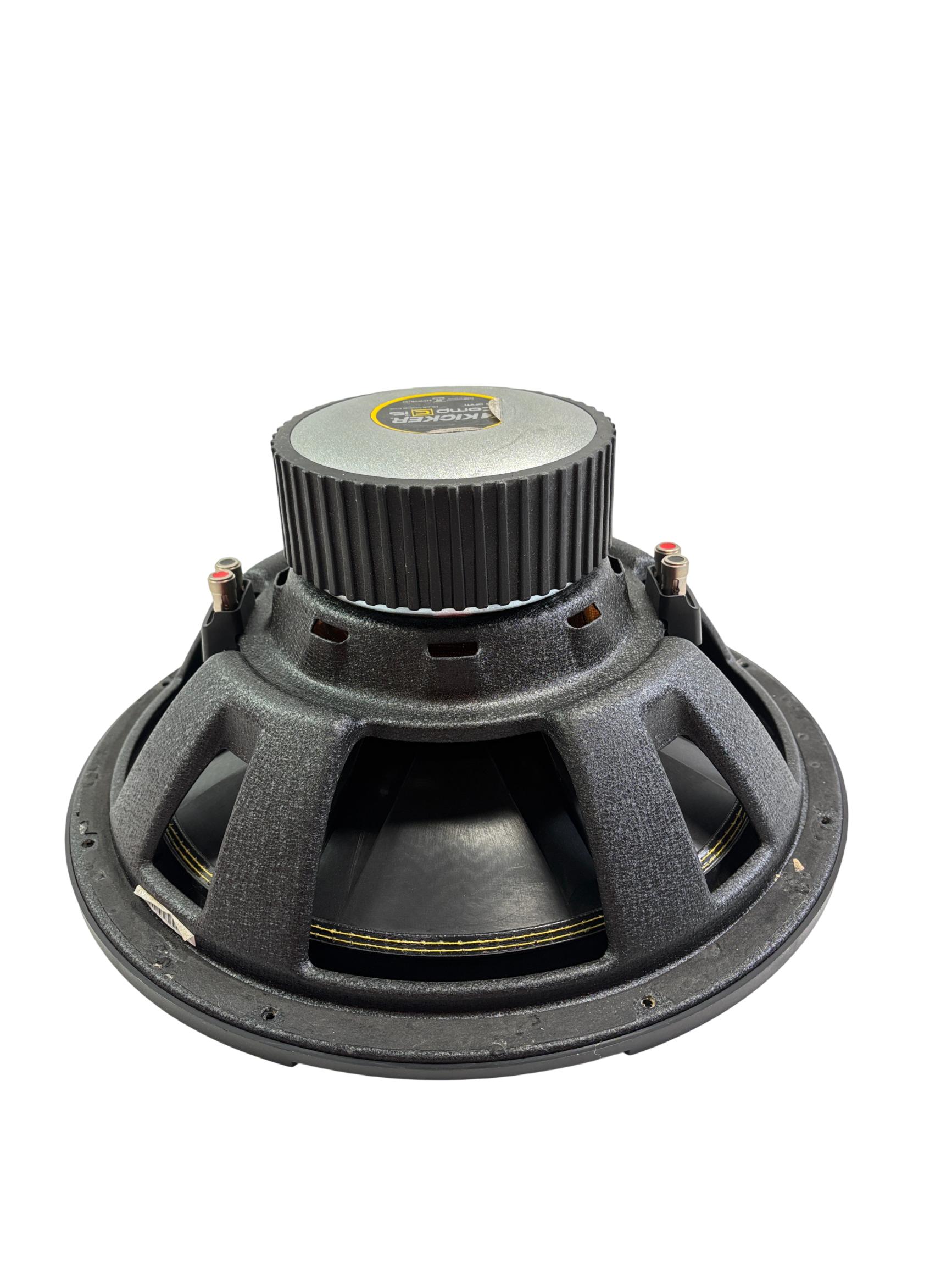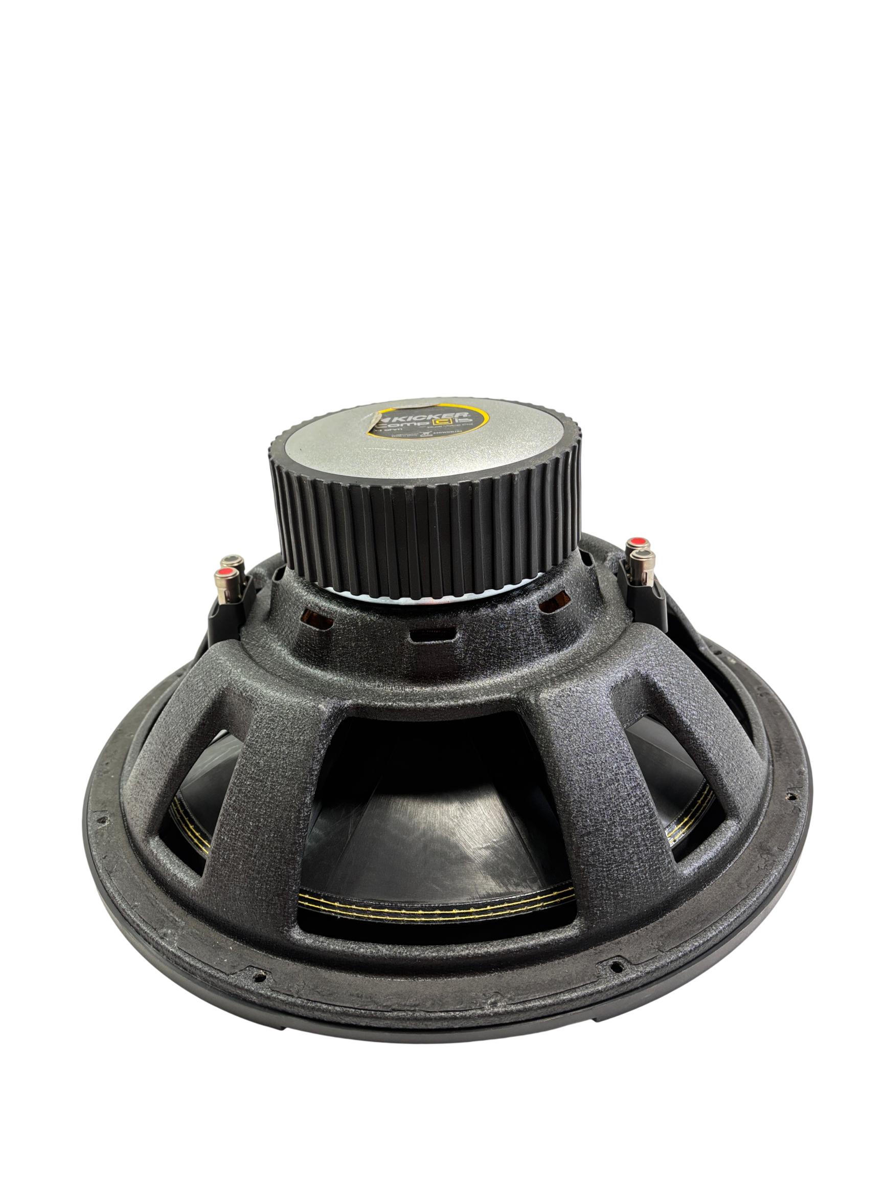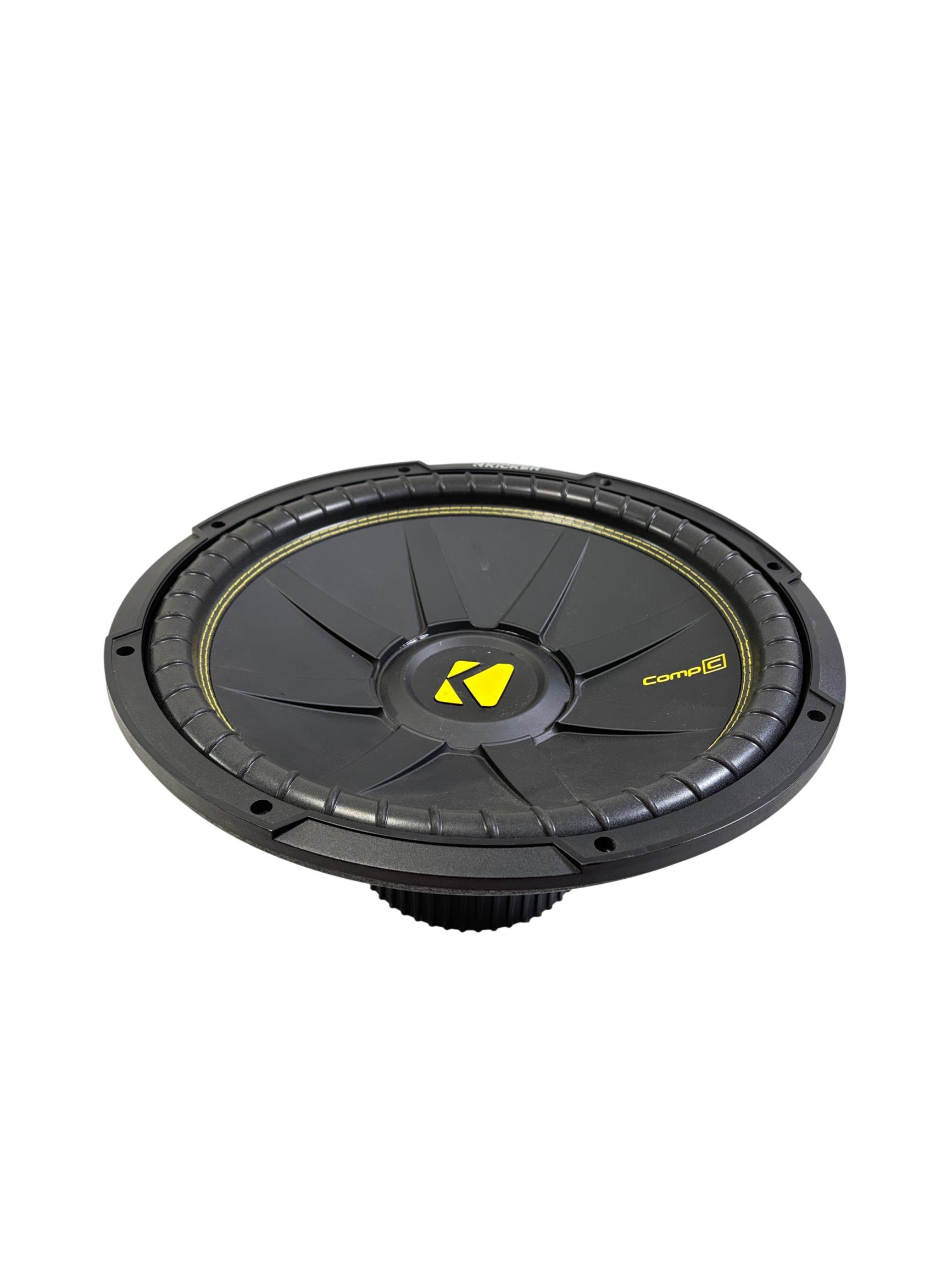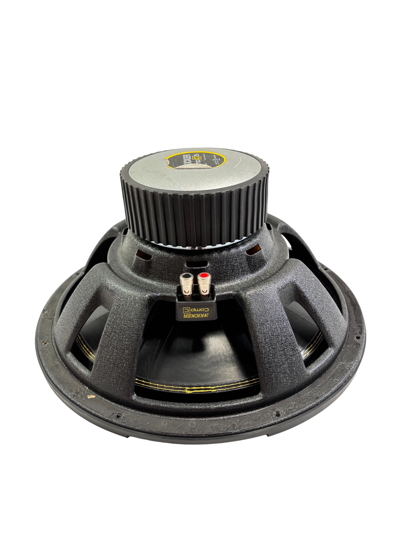 Kicker CompC 15" 4-Ohm Subwoofer - Model 44CWCD154 delivers powerful bass performance with a durable black design featuring a distinctive yellow triangle logo. This 15-inch subwoofer combines robust construction and high-quality materials to enhance audio systems with deep, clear low-frequency sound. Engineered for reliable car audio integration, it offers efficient power handling for an immersive listening experience.
