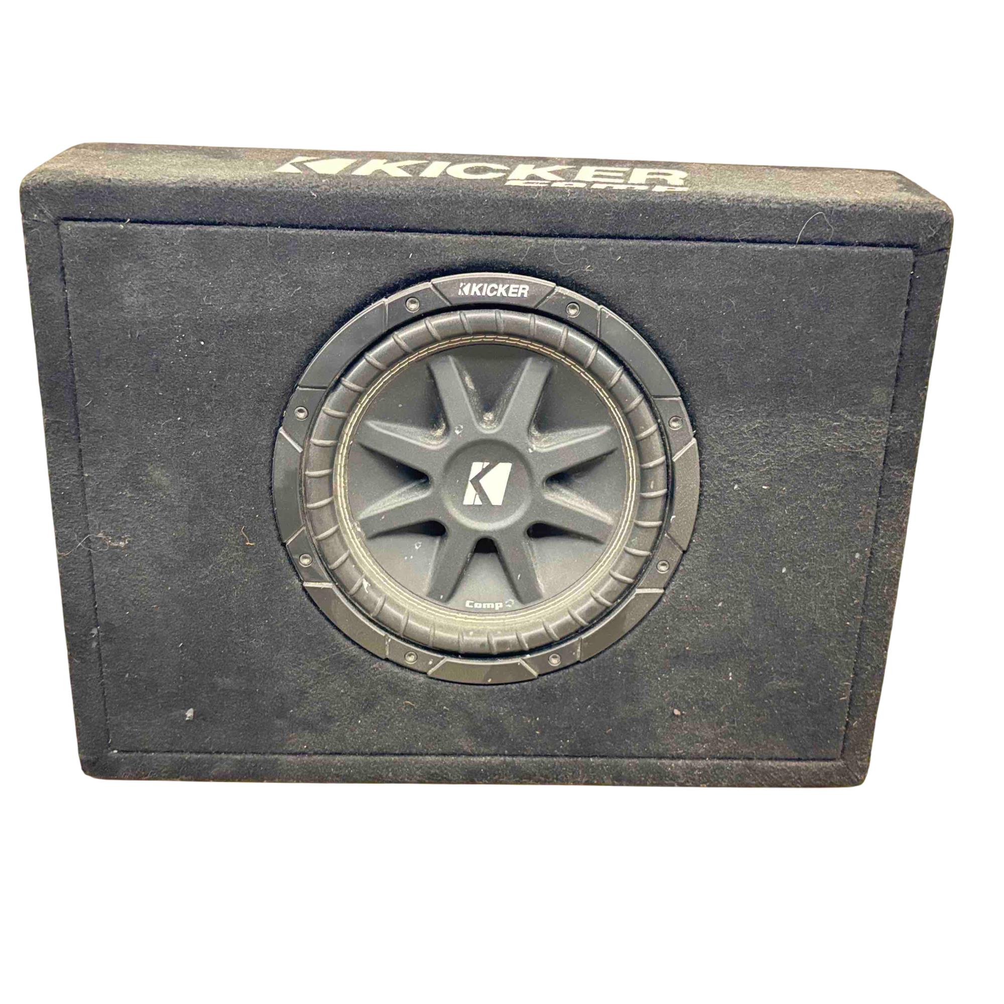 Transform your car audio experience with the Kicker Comp 10-Inch Subwoofer Enclosure. Known for its powerful bass and precise sound quality, this subwoofer delivers exceptional audio performance. Its sleek black design with a sturdy silver rim not only looks great but is built to last, ensuring your music hits every low note with precision.
