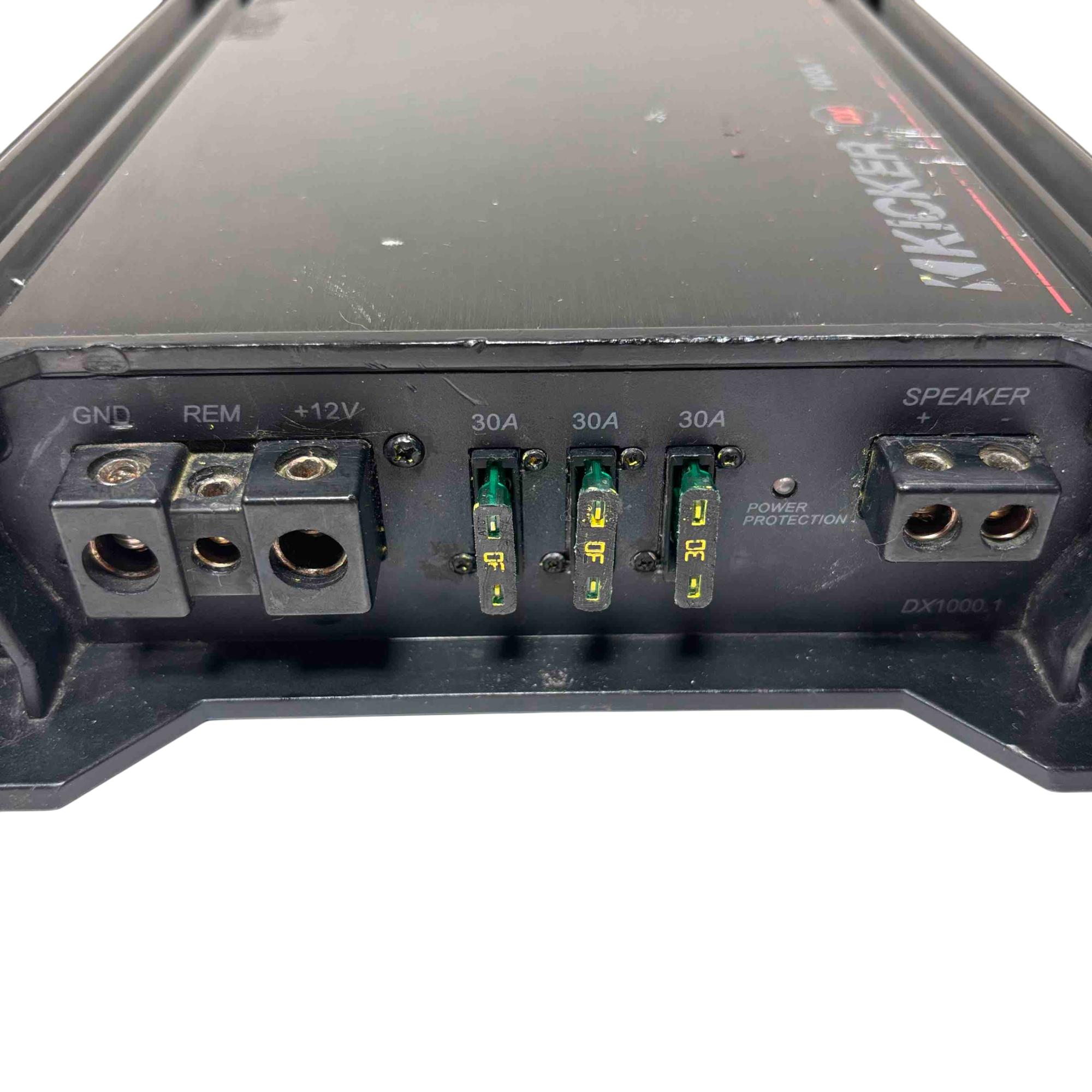 Boost your car audio system with the Kicker DX1000.1, a powerful monoblock amplifier designed to deliver up to 1000 watts of reliable RMS power. Ideal for driving subwoofers and achieving deep, rich bass, this Kicker amp features a rugged, compact design and Kickers renowned audio engineering. Perfect for enthusiasts looking for high performance and clean sound in their car audio setup.