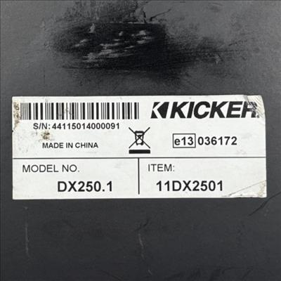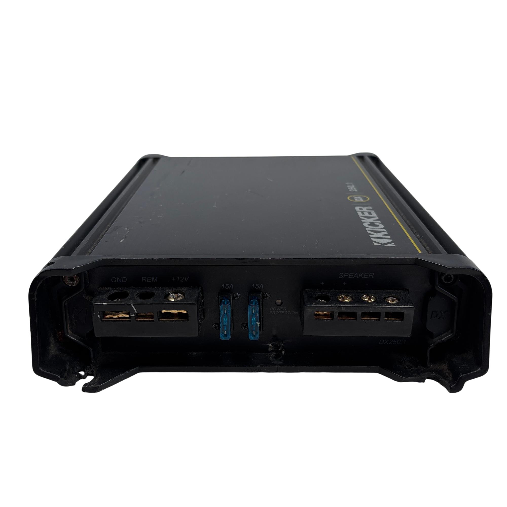 The Kicker DX250.1 Mono Car Audio Amplifier is a high-performance car audio amplifier designed to deliver powerful and clear bass output. This compact black amplifier features durable construction with a sleek design, optimized for enhancing audio systems with efficient power handling and reliable performance.