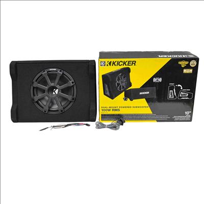 Experience deep, powerful bass in your vehicle with the Kicker 51PDFT10 Dual-Mount Powered Subwoofer. Featuring a 10-inch subwoofer and a robust 100W RMS amplifier, this compact enclosure is designed for versatile installation—upright or down-firing—to fit easily under or behind most seats. Enjoy punchy, high-quality sound and upgrade your car audio system with reliable Kicker performance.