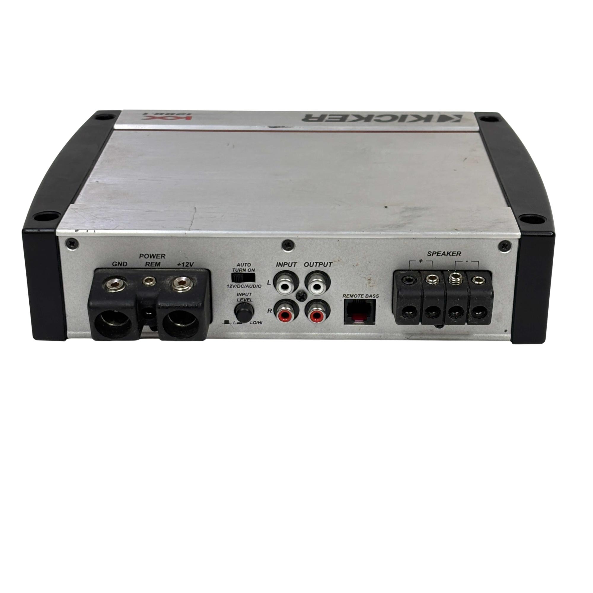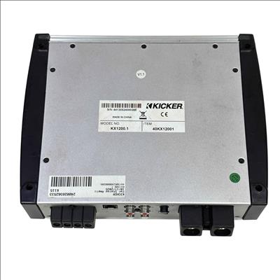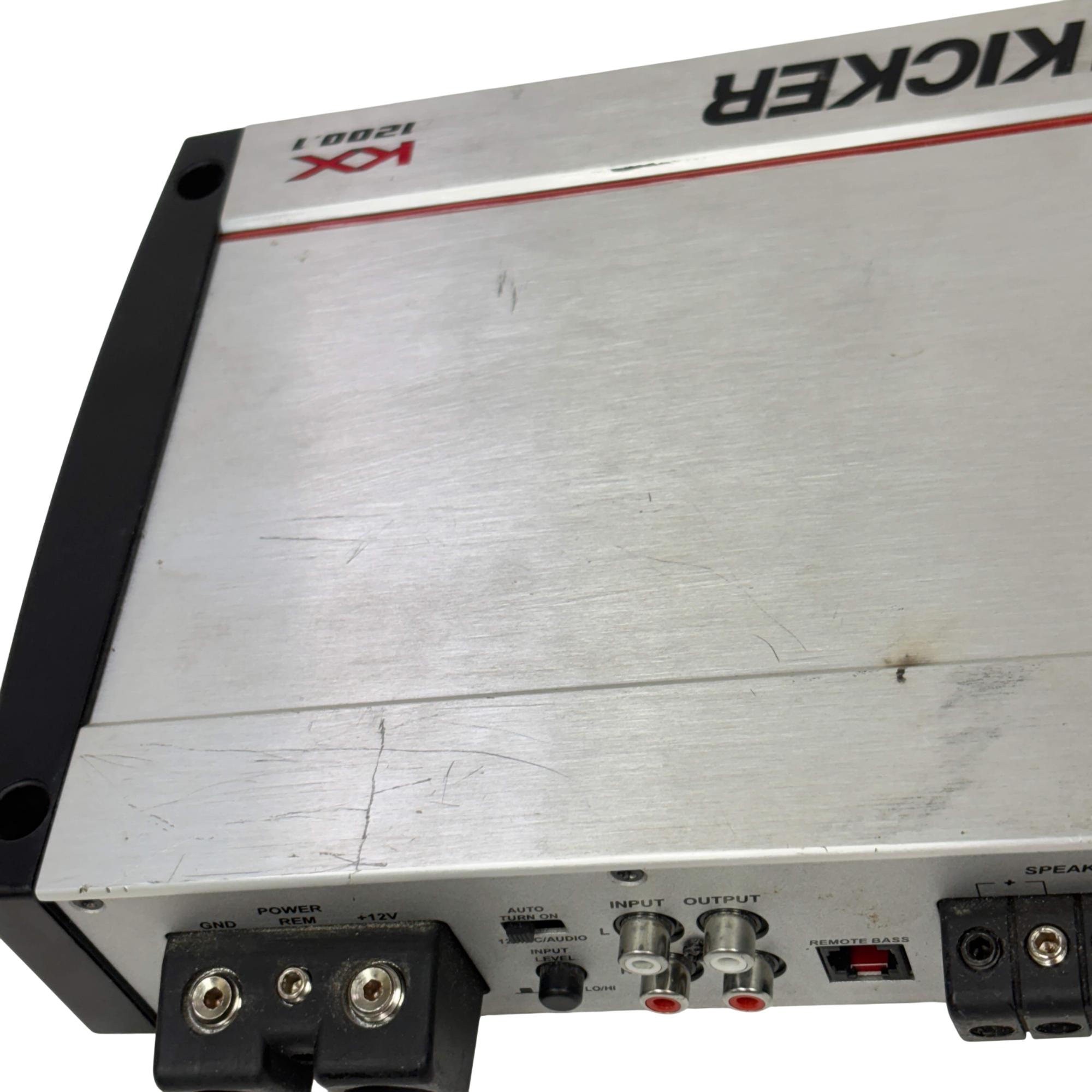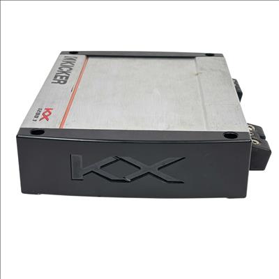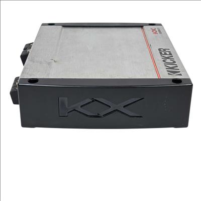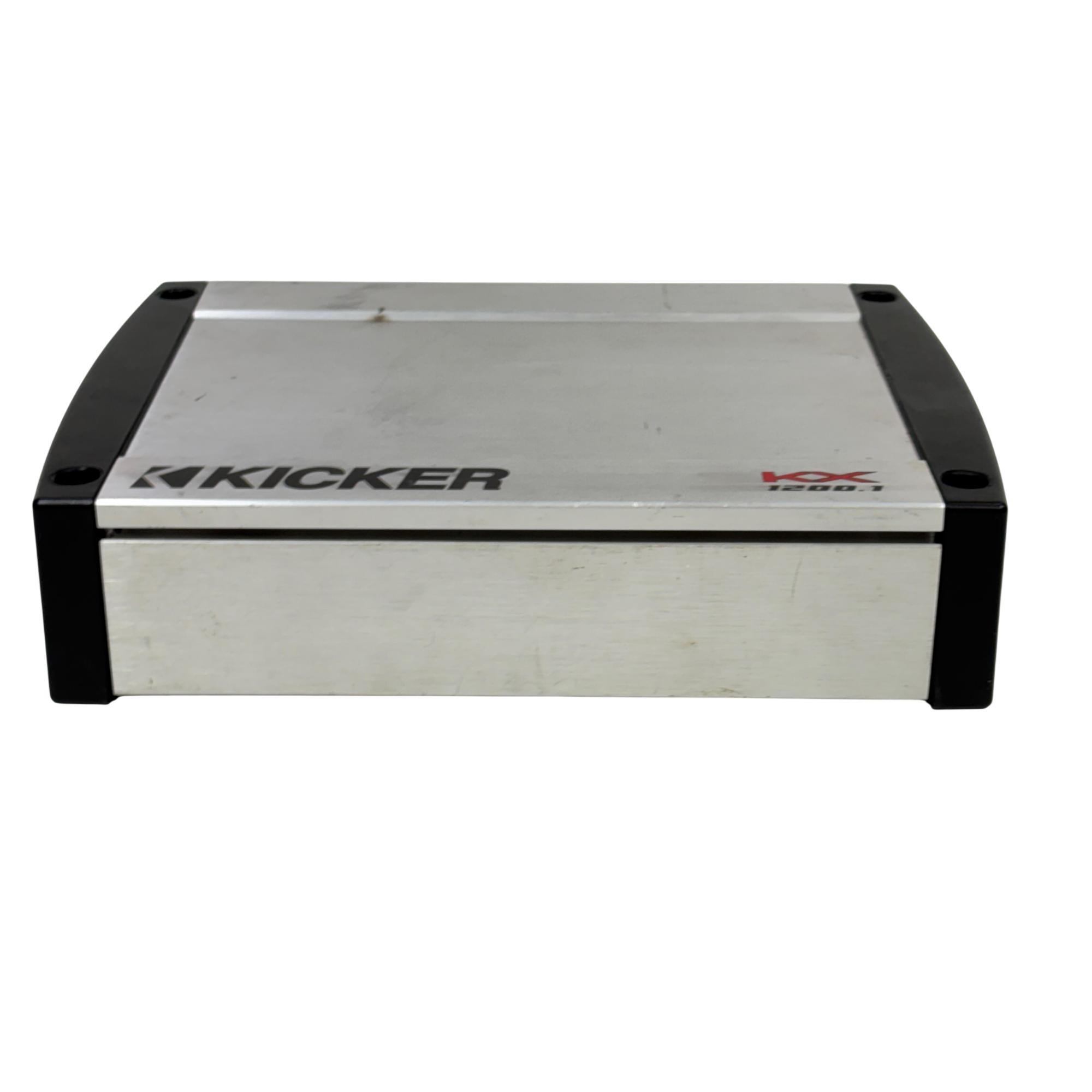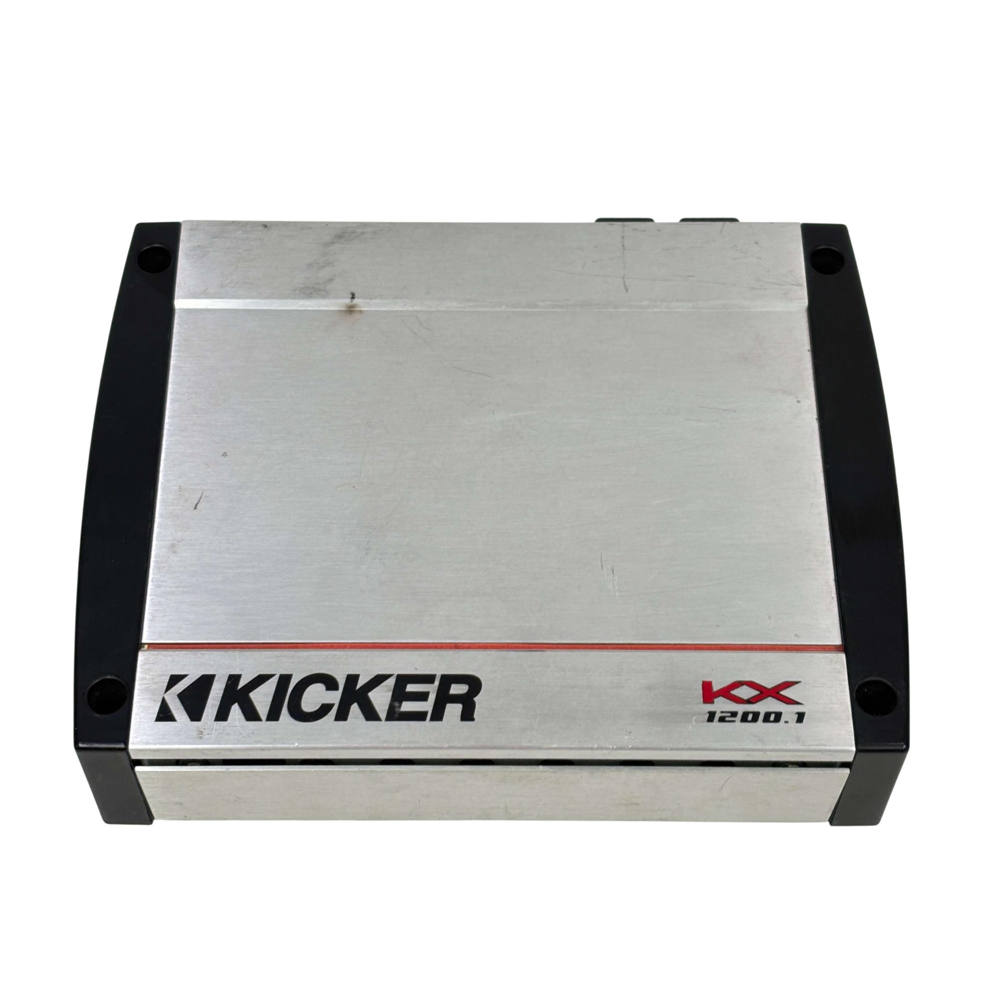 The Kicker KX 1200.1 Mono Subwoofer Amplifier delivers 1,200 watts RMS of powerful, clean sound tailored for subwoofer systems. Its sleek black and silver design features precise engineering for high-performance car audio amplification, ensuring deep bass and minimal distortion in any vehicle setup.